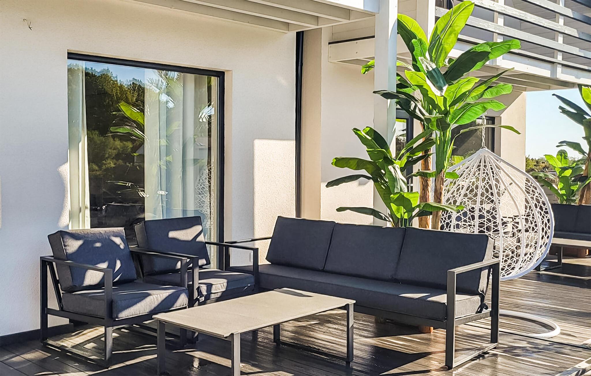 Verbringen Sie sonnige Tage in diesem komfortablen Ferienhaus mit Zugang zum Pool.