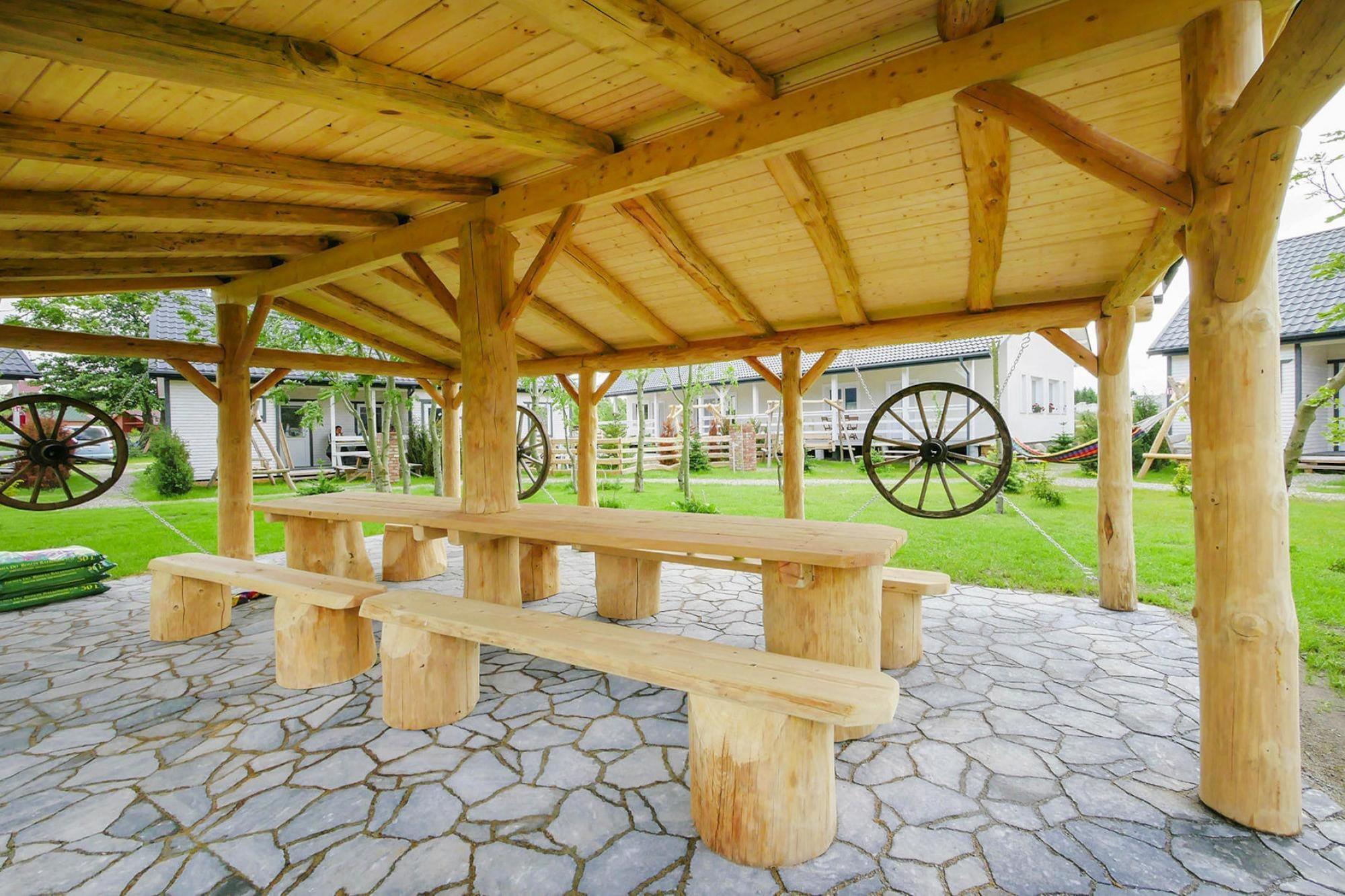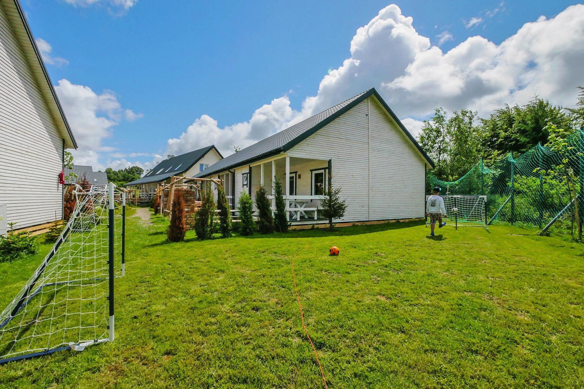 A holiday center in a fenced and safe area in a quiet summer settlement aimed at providing excellent relaxation for families with children. The property is approximately a 20-minute walk from the seaside beach. You can also reach the seaside by bike (rental available on site). The surroundings of the center are an oasis of peace and quiet. Cozy, single-story holiday cottages can accommodate 6 people. Each house consists of a living room with a well-equipped kitchen, 2 separate bedrooms and a bathroom with a shower. The living room has a 2-seater fold-out sofa, table and TV. The house has a covered terrace, and in front of the entrance there is a small private garden with a set of garden furniture and barbecue equipment. Electric heating is possible. Wireless internet is available. The washing machine is available to all guests of the resort (for a fee). The fenced and well-kept area has a recreational shelter with a table tennis table and table football. There is also a volleyball court and bicycle rental. The youngest will probably enjoy the safe and attractive playground. The price of the stay includes: bed linen, electricity and water consumption, internet, parking, final cleaning. Rusinowo is a quiet, small summer resort located on the central coast, close to Darlowo, Jaroslawiec and Ustka. Wonderful climate and landscapes, pine forests, clean sea water - these are the advantages of Rusinowo. The settlement has retained its intimate atmosphere, even in the peak season there are no crowds on the beach. Jaroslawiec, neighboring Rusinów, offers many interesting attractions that will diversify your seaside relaxation. Jaroslawiec also offers a rich gastronomic base. There is a high seaside cliff from where there is a unique, panoramic view of the sea. There is a fishing boat marina and the Panorama Morska swimming pool complex (open all year round).
