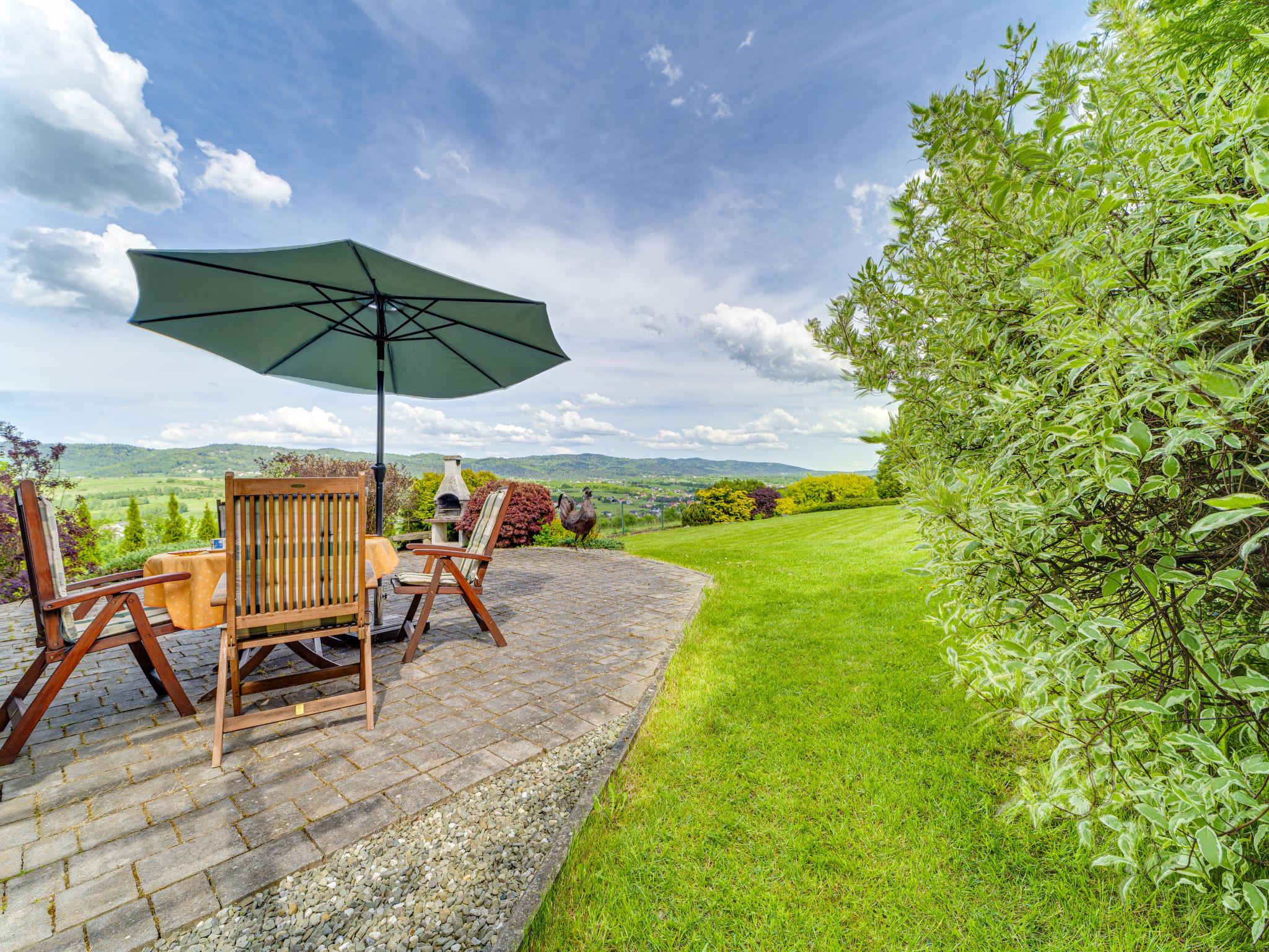 Single-family house "Kogucik". On the outskirts, in a quiet, sunny, elevated position, 4 km from the lake, 1 km from the river, located by a road, in the countryside. Private: property 1'100 m2 (fenced). In the house: WiFi. Motor access to the house. Parking at the house. Grocery 1 km, supermarket 5 km, restaurant 2 km, bus stop 1 km, indoor swimming pool 4 km. Tennis 2 km. Well-known lakes can easily be reached: Zywieckie 4 km. Please note: suitable for families.