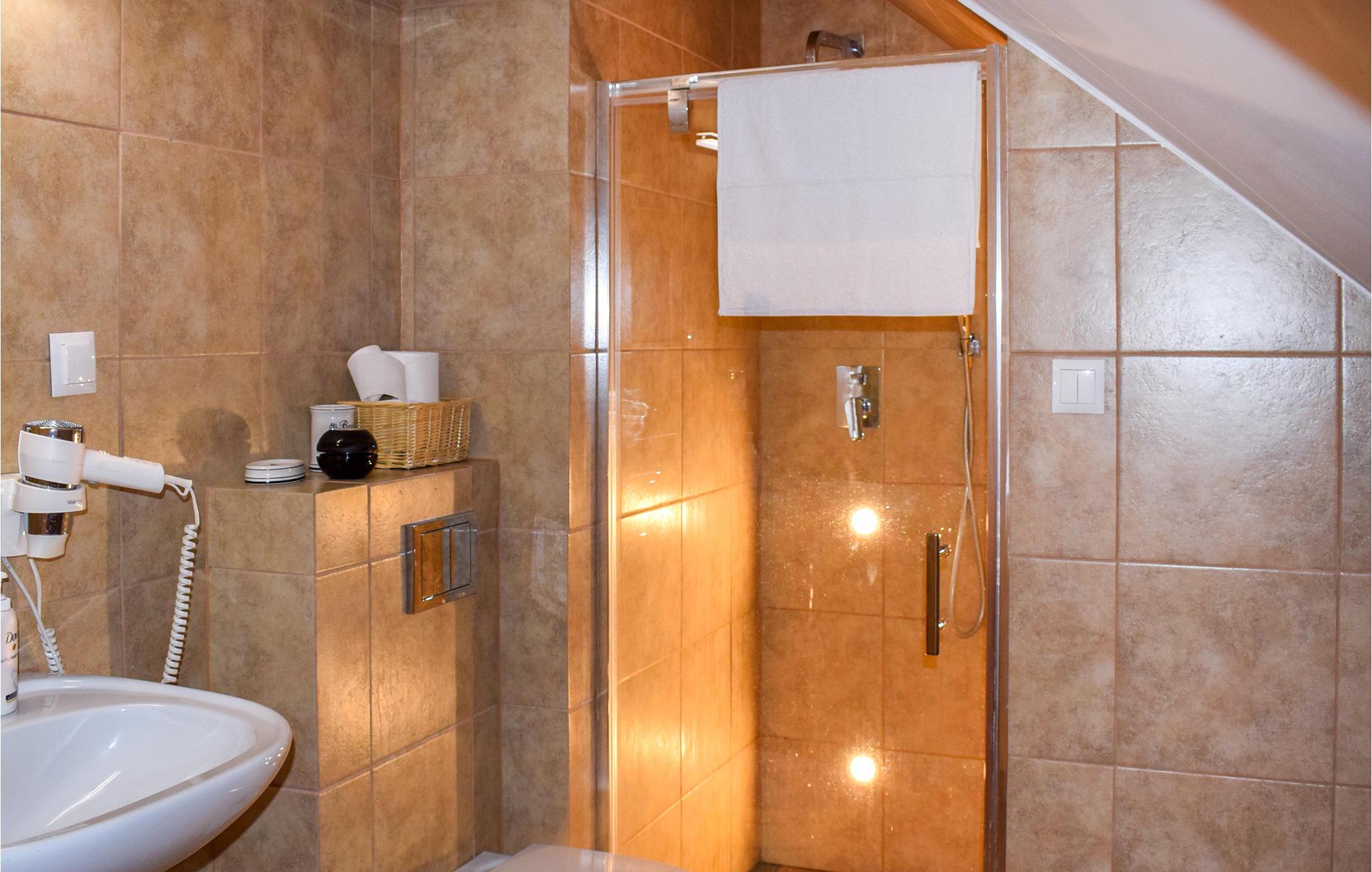 - WC mit warmem und kaltem Wasser, Dusche