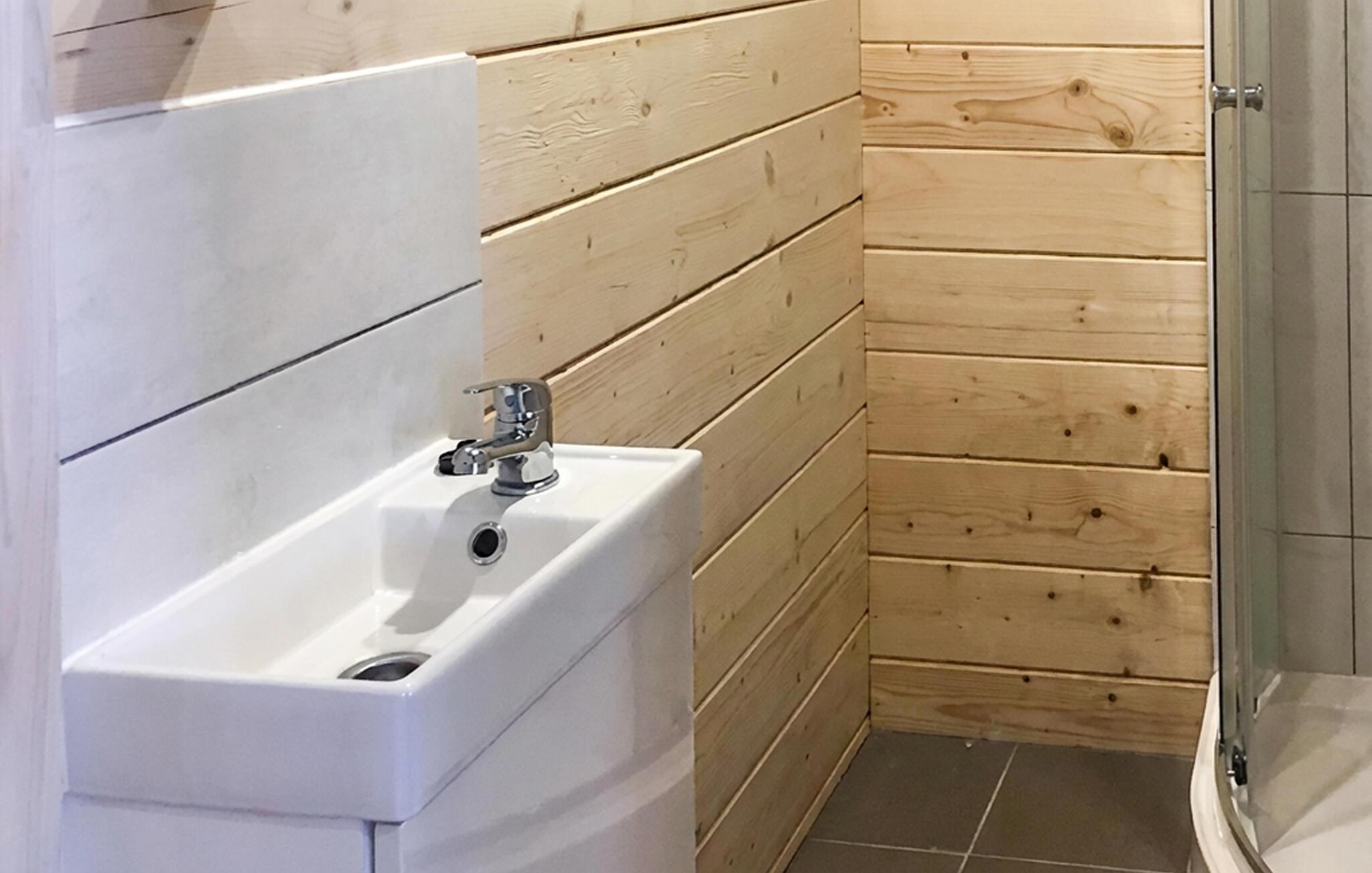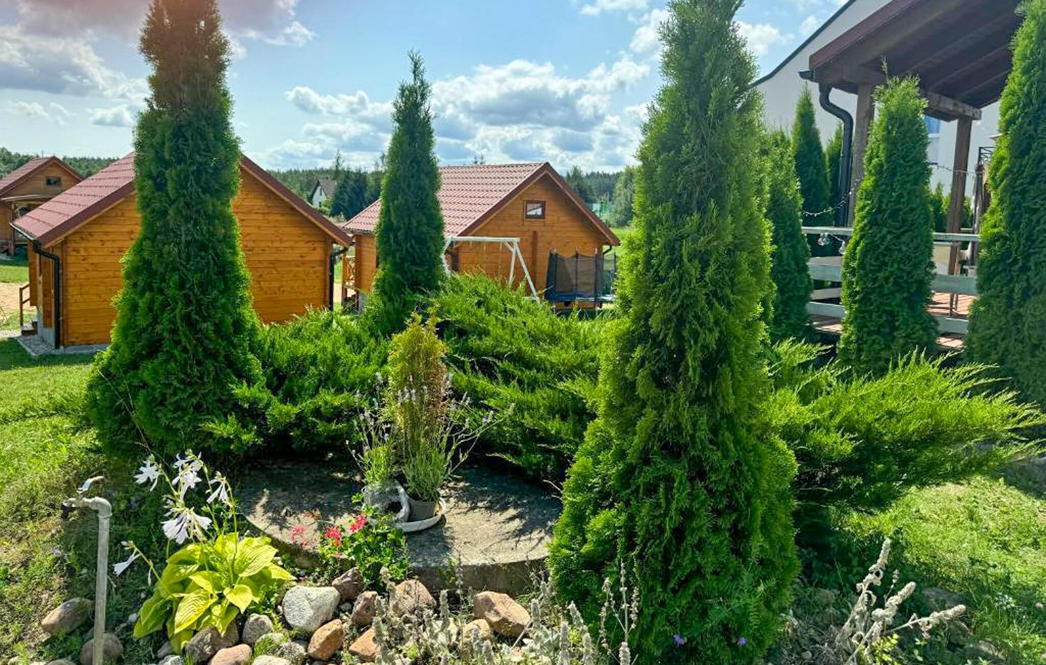 Freuen Sie sich auf Natur, Wasser und Erholung und dieses schöne Grundstück, auf dem sich das Häuschen mit anderen gemütlichen Unterkünften und einem großen Ferienhaus befindet. Im Inneren des Holhauses finden Sie eine funktionale Einrichtung, die Ihnen einen unbeschwerten Urlaub mit einfachem Komfort verspricht. Genießen Sie die sonnigen Stunden im Schatten der Veranda und schauen Ihren Kindern beim Volleyball spielen mit den Nachbarkindern zu.