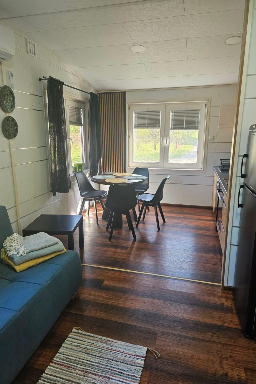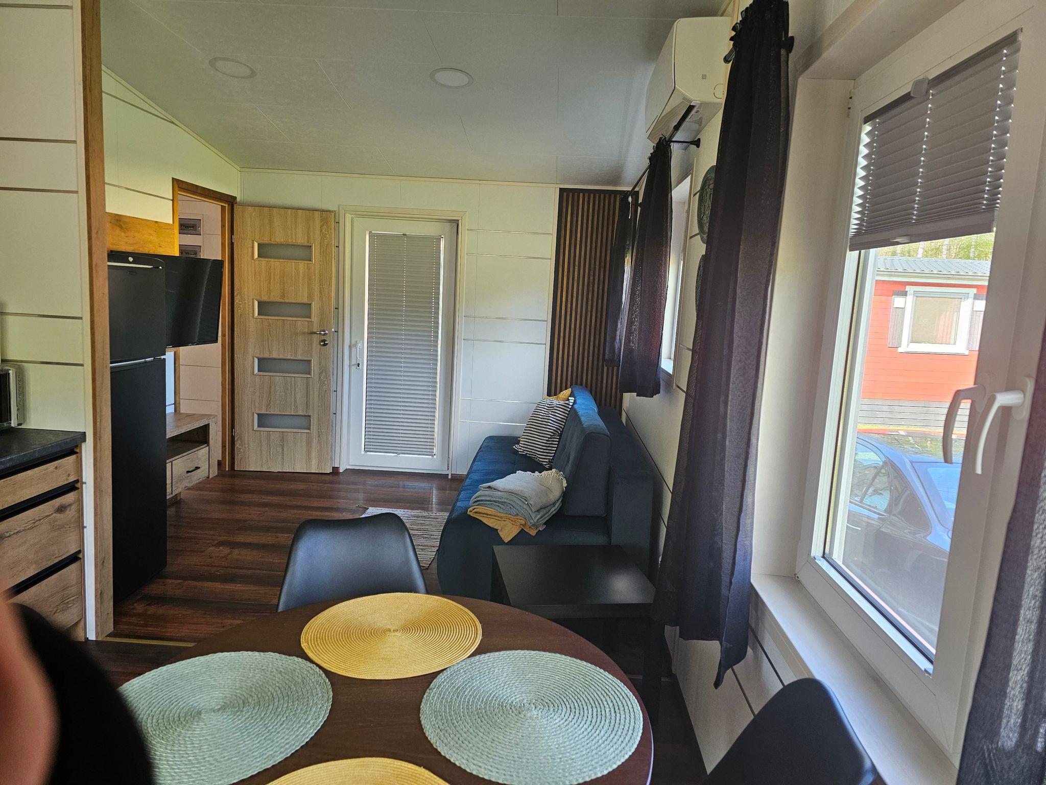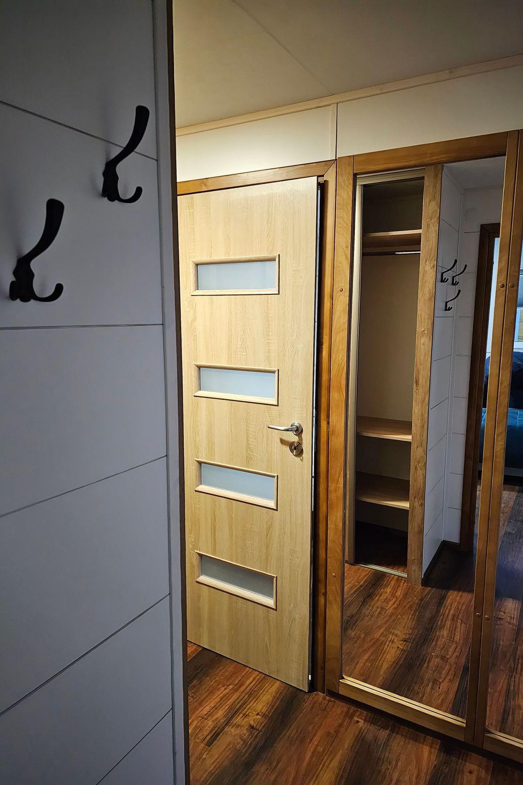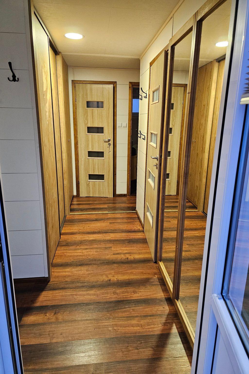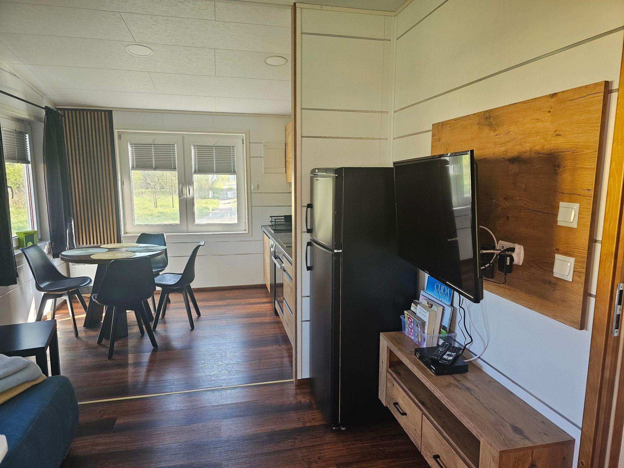The interior of the cottage has been designed with comfort and functionality in mind. There is a fully equipped kitchenette with modern appliances such as hob, oven, dishwasher and microwave. We also provide two cosy rooms with single beds, wardrobes and bedside tables, a spacious living room with sofa and flat-screen TV, and two bathrooms with shower or toilet. All this is complemented by a terrace equipped with table, chairs and barbecue equipment, where you can spend pleasant evenings.