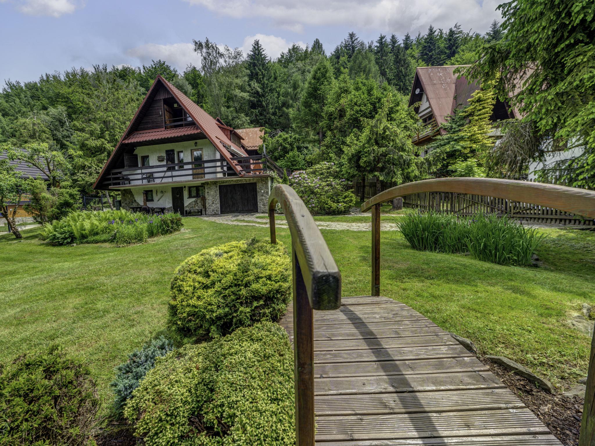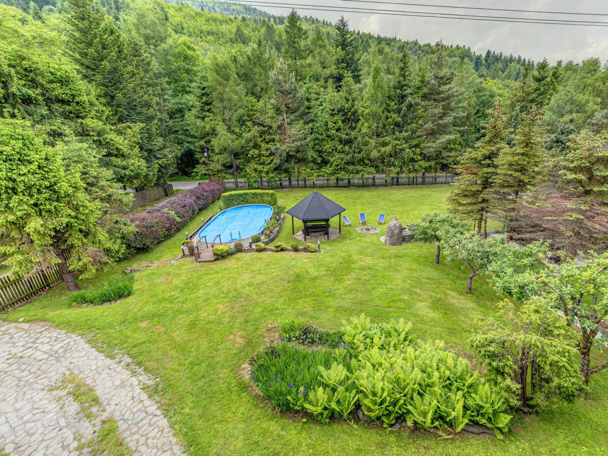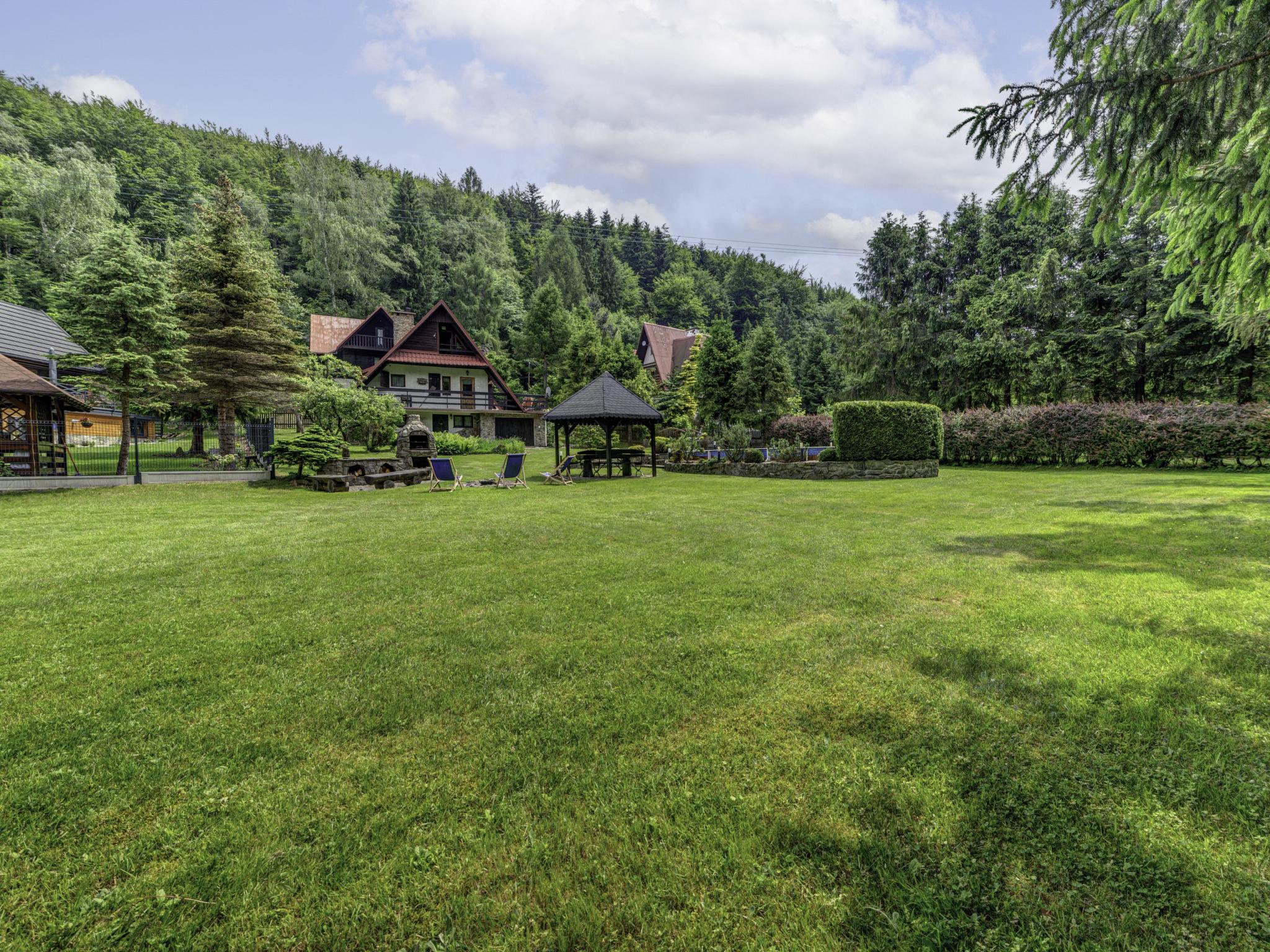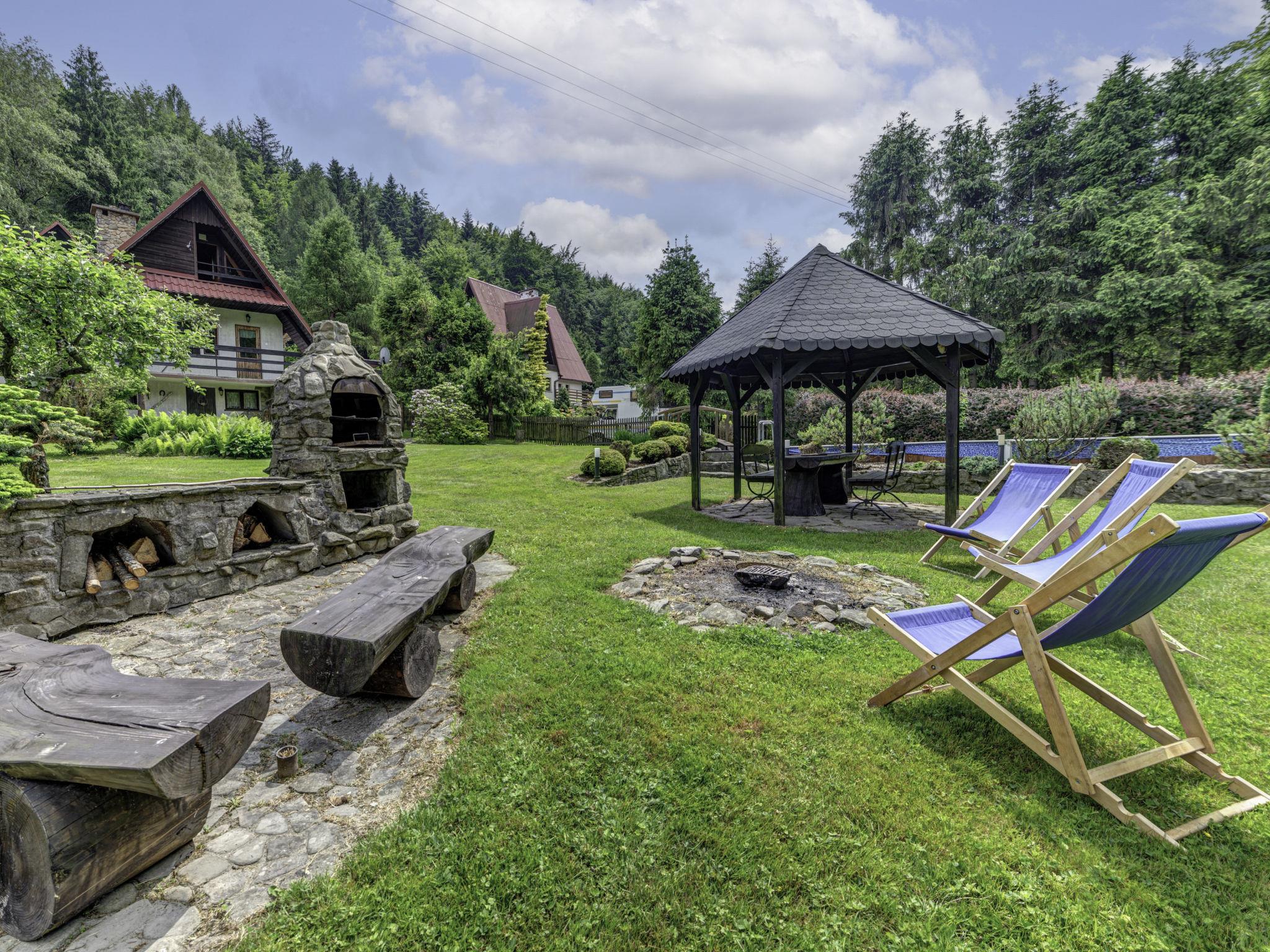 Single-family house "Hatale", surrounded by trees. On the outskirts, in a quiet, sunny position, 20 m from the edge of the forest, 1.5 km from the skiing area. Private: property 1'500 m2 (fenced), garden, swimming pool (44 m2, seasonal availability: 01.Jun. - 15.Sep.). Terrace, garden furniture, barbecue. In the house: sauna, central heating system. Motor access to the house. Parking at the house on the premises. Shop 3 km, shopping centre 8 km, restaurant 300 m, internet café, bicycle rental 300 m, bus stop 250 m, public bathing area 20 km. Tennis, cable car 1.5 km, mountain railway 1.5 km, ski lift 1.5 km, chair lift 1.5 km, ski rental 1.5 km, ski bus stop 300 m, ski school 1.5 km, children's ski school 1.5 km, ice rink 300 m. Nearby attractions: Oswiecim 35 km, Kraków 85 km. Well-known ski regions can easily be reached: Czarny Gron Pracica 2 km, Zar 20 km, Korbielów 35 km. Well-known lakes can easily be reached: Jezioro Zywieckie 20 km. Please note: suitable for families. Possibility of playing cricket and badminton (equipment on the spot). Swimming pool for children, only in summer. Mountain stream with bathing place - 100 m. Garage is not available for guests. IMPORTANT: Deposit 600 PLN.