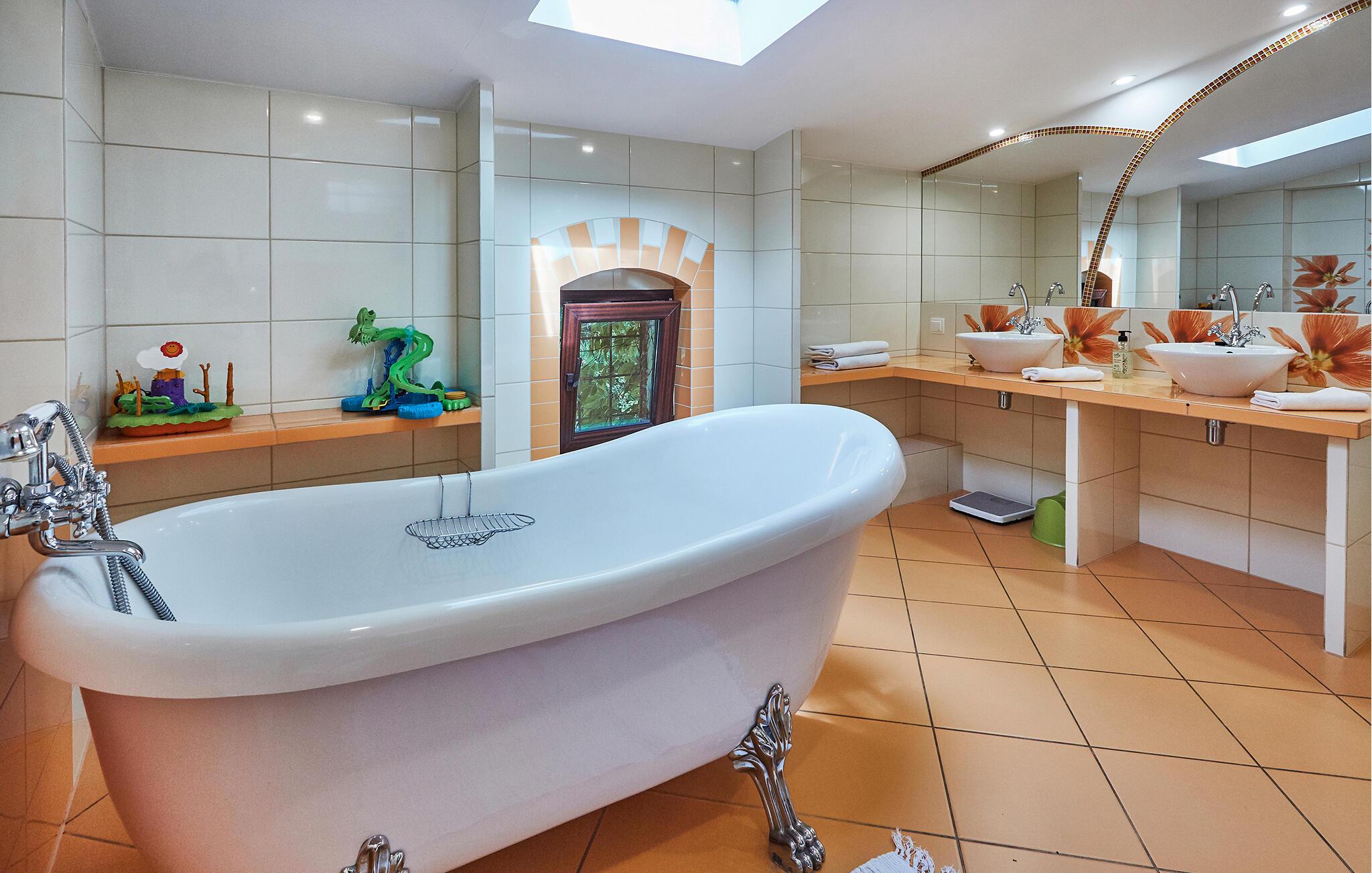 Abends können Sie auf dem großen Grundstück grillen, während Ihre Kinder hier spielen. Es gibt hier Schaukeln und eine Rutsche, sie können im Spielhaus spielen oder einfach auf dem Grundstück spielen. Nach einem gemütlichen Abend auf dem gemeinsamen Grundstück möchten Sie sich vielleicht sich zurückziehen, und Sie können den Abend auf der offenen Terrasse mit Essen und einem Glas Wein ausklingen lassen. Bei schlechtem Wetter können Sie auch fernsehen, und im Haus gibt es Netflix, oder wie wäre es mit einem Tagesausflug zum Wasserpark?
