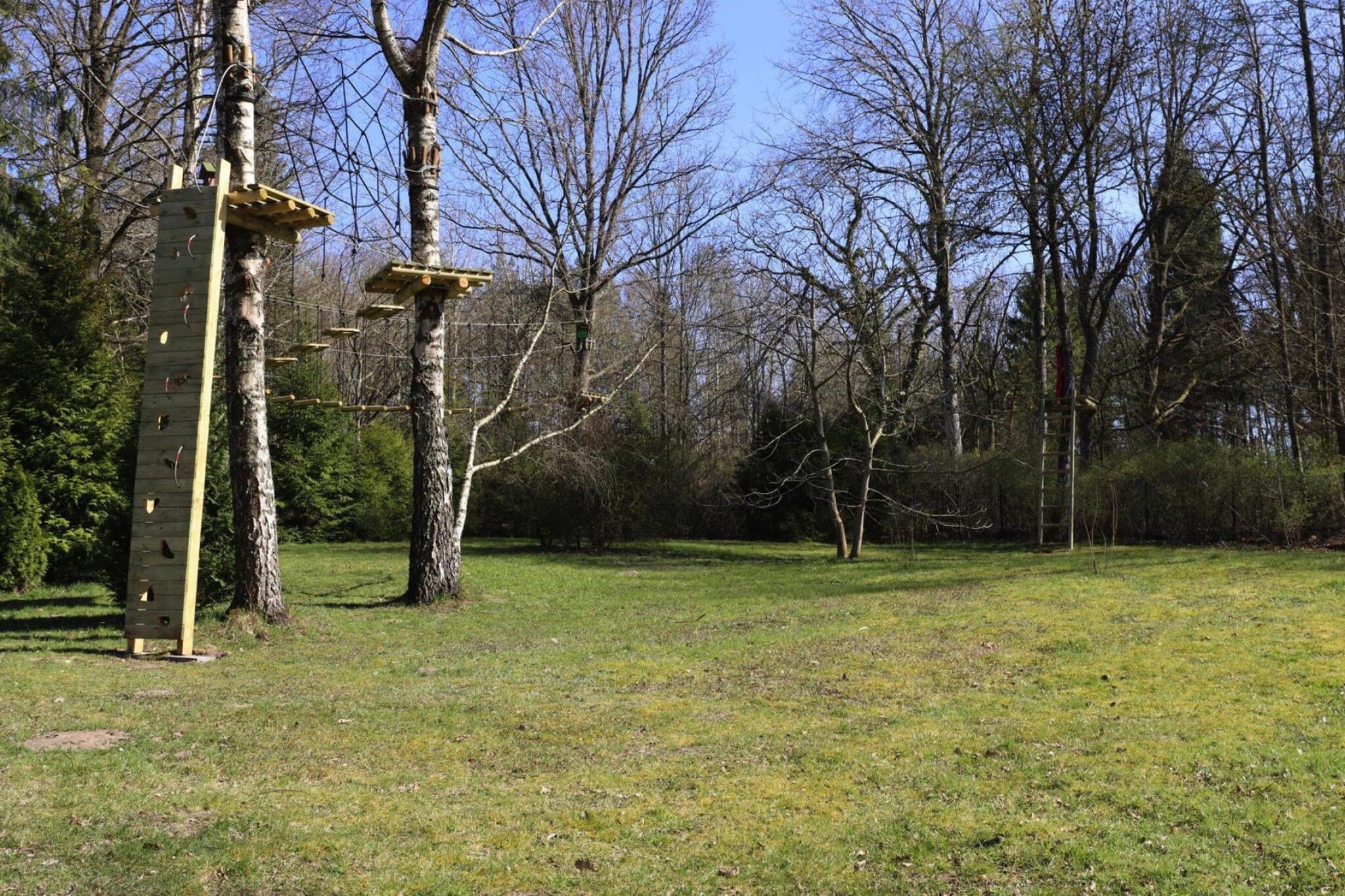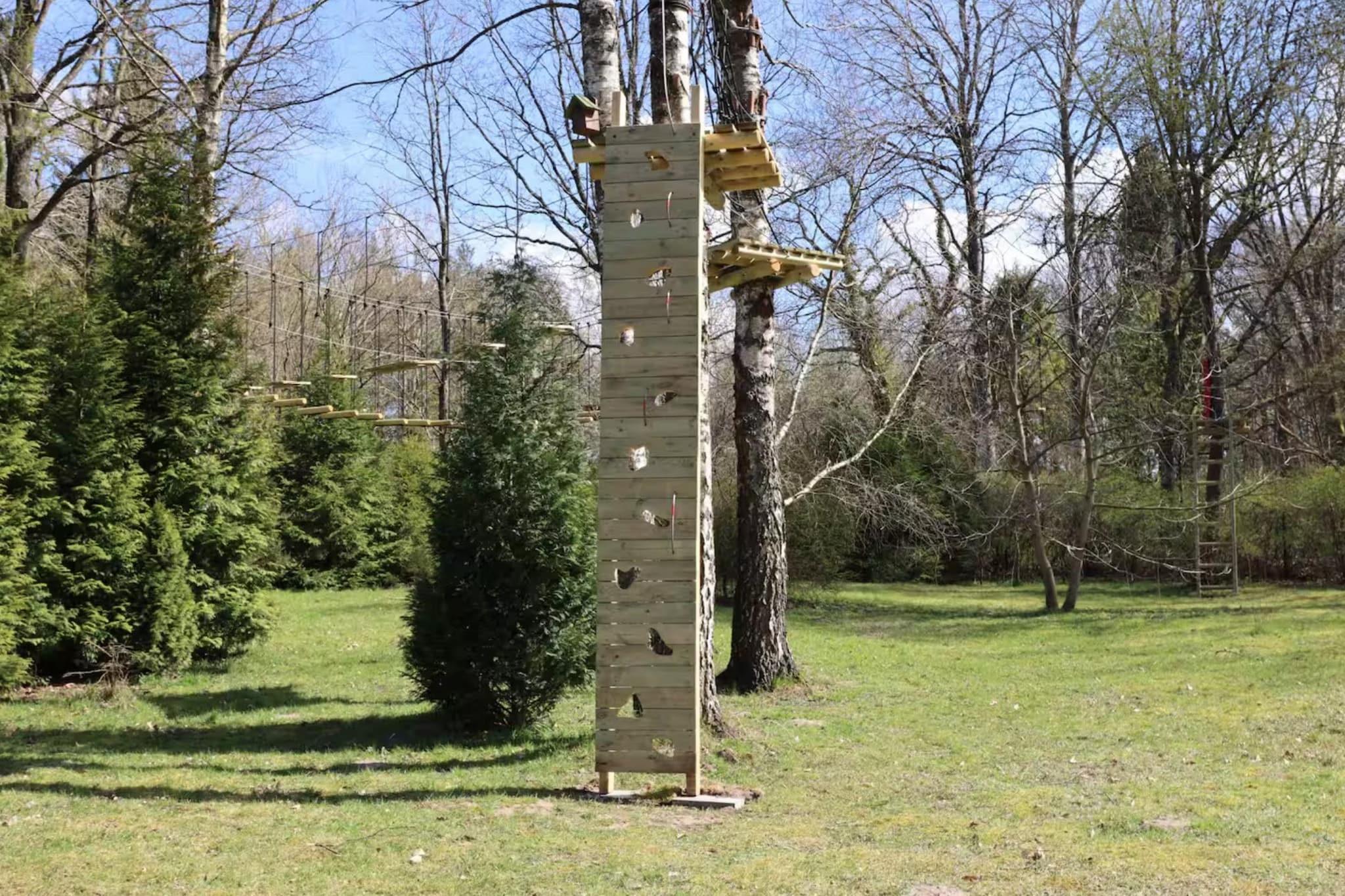 A holiday village in the heart of the forest, near the Slowinski National Park. A unique location in the picturesque Kashubian village of Sasino. The seaside beach is 5 km away. This comfortable, spacious two-story holiday home boasts a private, fenced property and private access to a swimming pool, sauna, and hot tub. On the ground floor, there's a spacious living room (with a TV and a sofa bed), a well-equipped kitchen (including an oven, dishwasher, washing machine, and coffee maker) with a dining area (with a large table), two bedrooms (one with a TV and a fireplace), and a bathroom with a shower. Upstairs, there are two bedrooms: the first is large with a double bed, a sofa bed, and a separate recreation and lounge area with a games console (plus an additional sleeping alcove with two single beds). The second bedroom is smaller with two single beds. There's also a second bathroom upstairs, this time with a bathtub. Central heating (gas) + fireplace in the ground-floor bedroom (with heat distribution to other rooms). Underfloor heating in both bathrooms. Wireless internet is available. The spacious, well-maintained, and fenced grounds (for exclusive use by guests) feature a summer swimming pool (open from May 15th to October 15th, unheated), a sauna (additional fee of PLN 500/week), a hot tub (additional fee of PLN 500/week), and a garden gazebo with a barbecue. A major attraction is the private ropes course (3 harnesses available, included in the price). There is also a small playground and parking. Guests have access to two bicycles and Nordic walking poles. The price includes: water, bed linen, towels, internet, parking, summer swimming pool (open from May 15th to October 15th), two bicycles, a cot, a high chair, a welcome basket, and a ropes course. The seaside beach near Sasino has a wild character and even in summer there are few tourists here, which ensures peace and quiet.