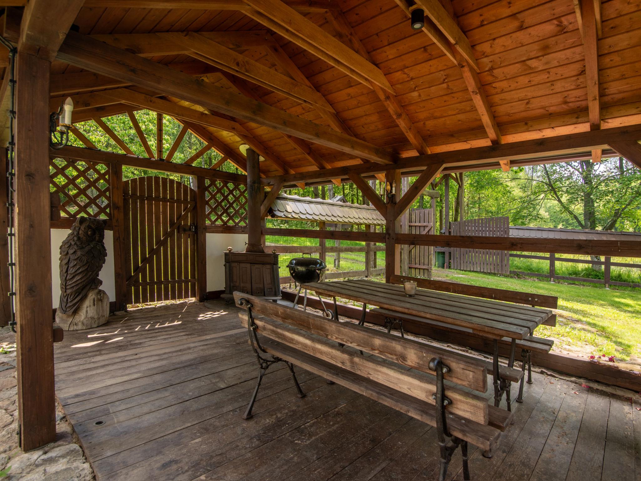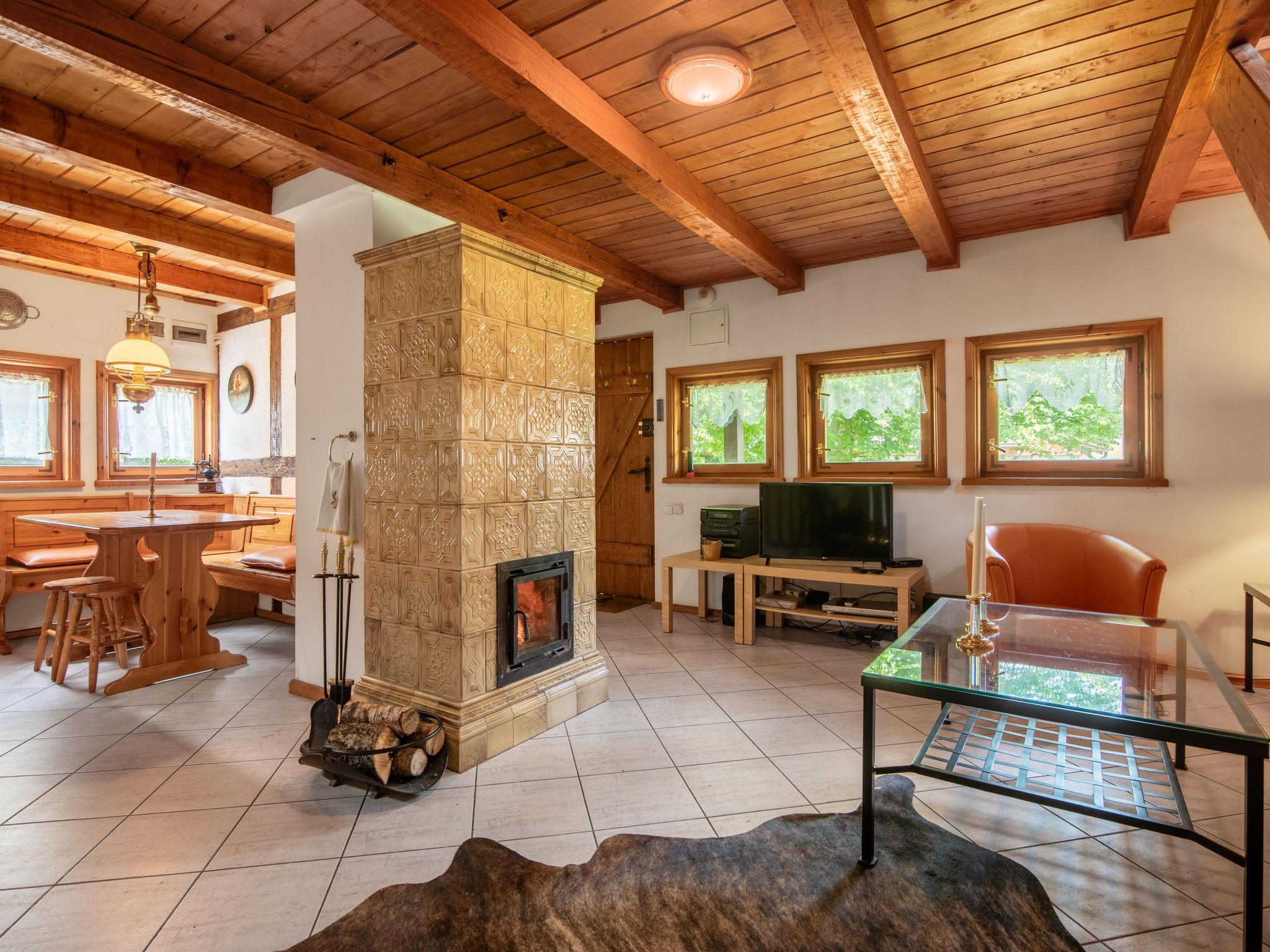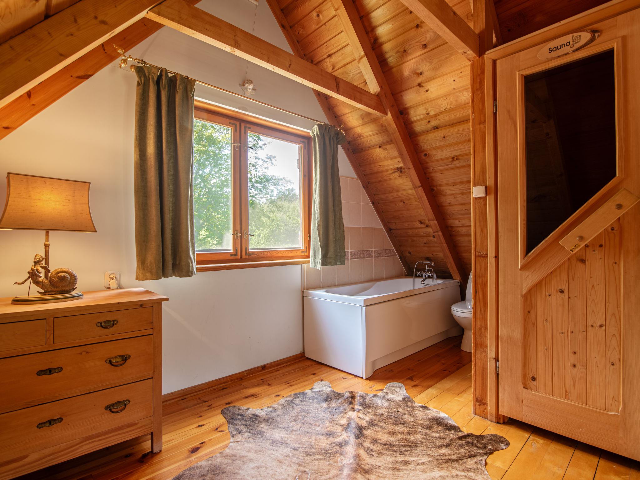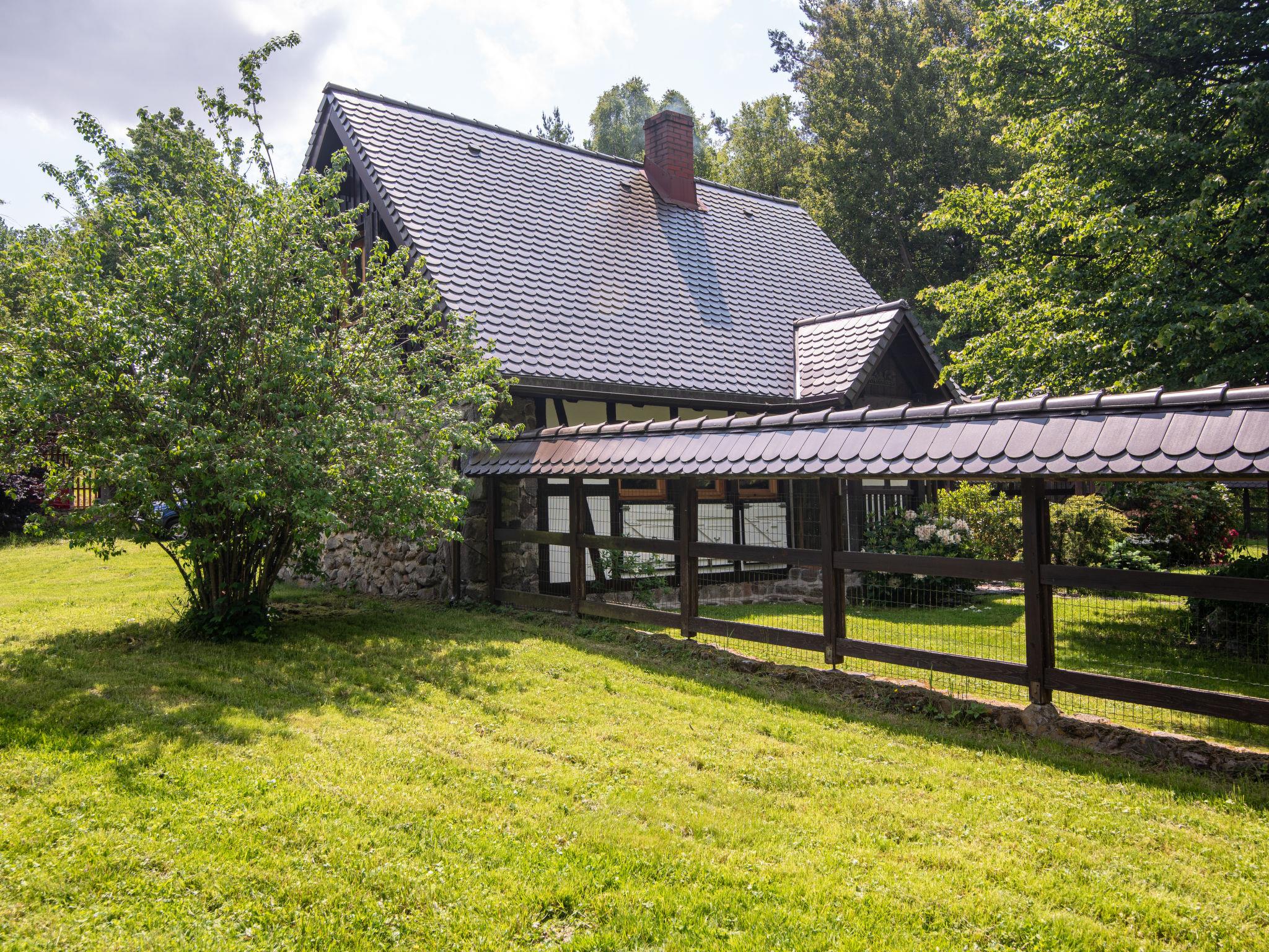Equipment: tiled stove and two verandas. Old Kashubian house, renovated according to the local tradition. Thatched roof, partly covered with shingle rustic farmhouse "Sianowska Huta", surrounded by trees and meadows. Outside the resort, in a secluded, quiet, sunny position, in the woods. For shared use: property 5'000 m2 (fenced), lawn and plants. Barbecue. Private: meadow, lawn for sunbathing, pond. Patio, garden furniture. In the house: WiFi, sauna. Motor access to the house. 4x4 car recommended in winter. Parking at the house on the premises. Shop 10 km, grocery 3 km, restaurant 10 km, bus stop 700 m, natural swimming pond 300 m. Ice rink 10 m. Well-known lakes can easily be reached: jez. Biale. Please note: car recommended. Suitable for families. Animals in the neighbourhood. Property ref. PL8330.101.1 is situated on the same property. If you book both houses you receive a 10% discount on each property. The house has its own deep well.