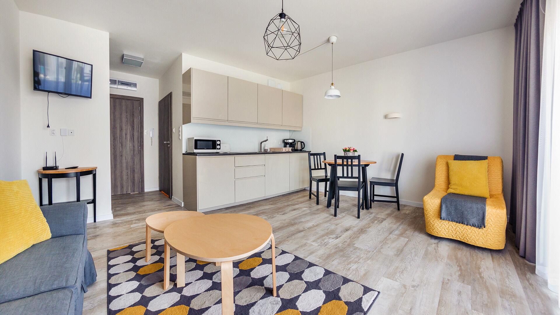 Zu den gewählten Apartments darf man mit dem Hund ankommen. Die zusätzlichen Kosten des Aufenthalts mit einem vierbeinigen Freund betragen 100 PLN (Einzelgebühr). Die Gäste, die den Aufenthalt mit dem Hund planen, bitten wir um eine frühere Kontaktaufnahme mit unserem Service im lokalen Büro.