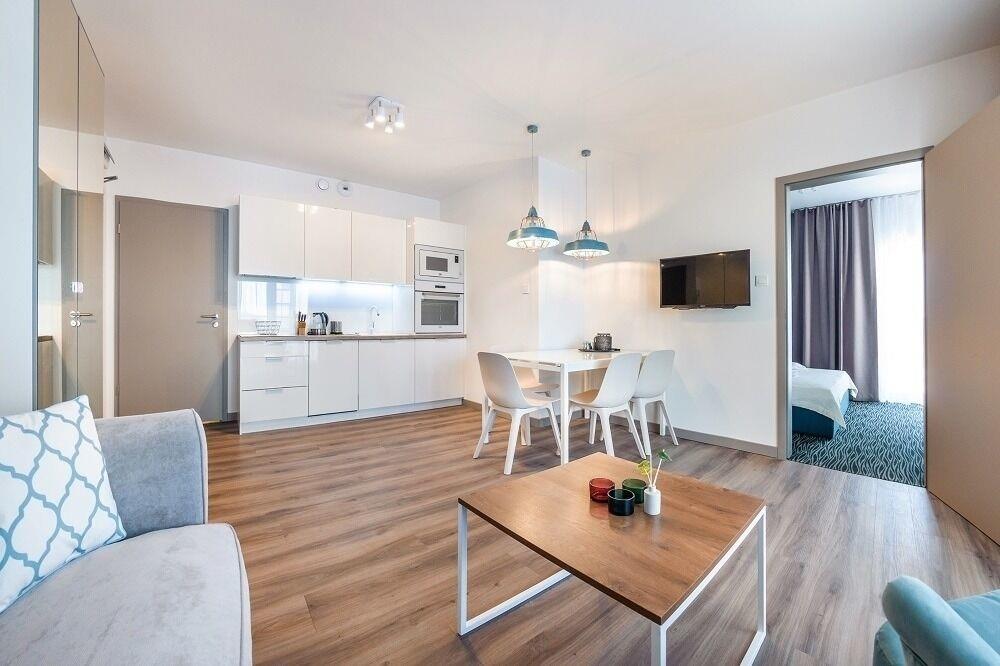 Zu den gewählten Apartments darf man mit dem Hund ankommen. Die zusätzlichen Kosten des Aufenthalts mit einem vierbeinigen Freund betragen 100 PLN (Einzelgebühr). Die Gäste, die den Aufenthalt mit dem Hund planen, bitten wir um eine frühere Kontaktaufnahme mit unserem Service im lokalen Büro.