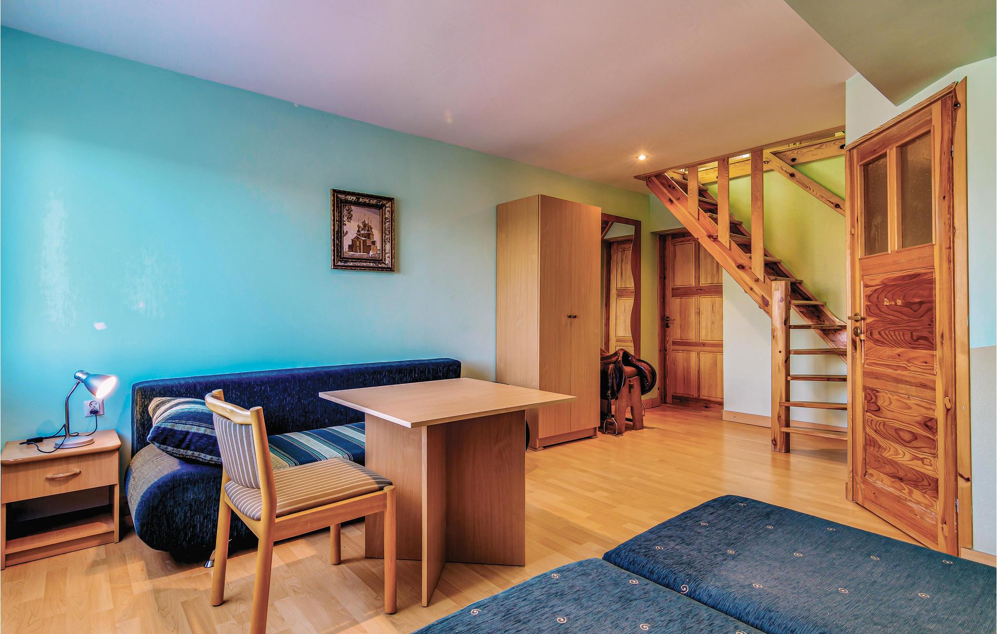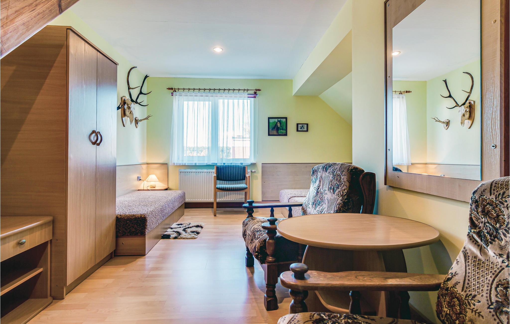 Dieses große, solide und gepflegt eingerichtete Ferienhaus steht auf dem großen und geschlossenen Grund des Eigentümers, nur wenige Meter vom See. Reitmöglichkeiten gibt es in den 10 km entfernten Nachbarorten Miastko oder Wegorzynko. Es gibt dort auch die Möglichkeit Britschkafahrten zu buchen und die Umgebung auf diese Art zu erkunden. Fahrräder gibt es vor Ort zu mieten. Auf dem großen Grundstück haben Sie auch eine Gartenlaube mit Grill- und Feuerplatz. Auf Anfrage und gegen Aufpreis können zusätzliche Personen übernachten.