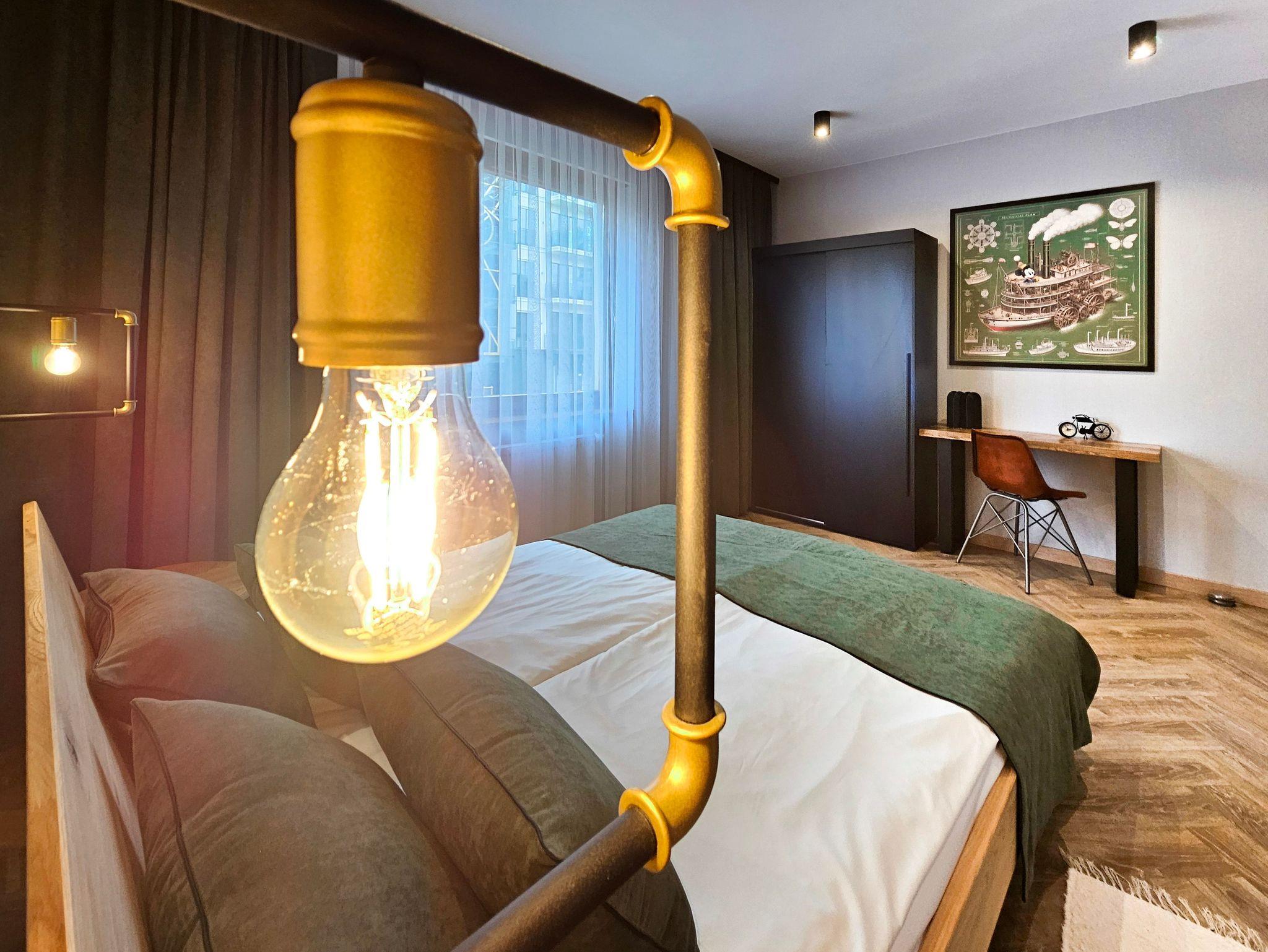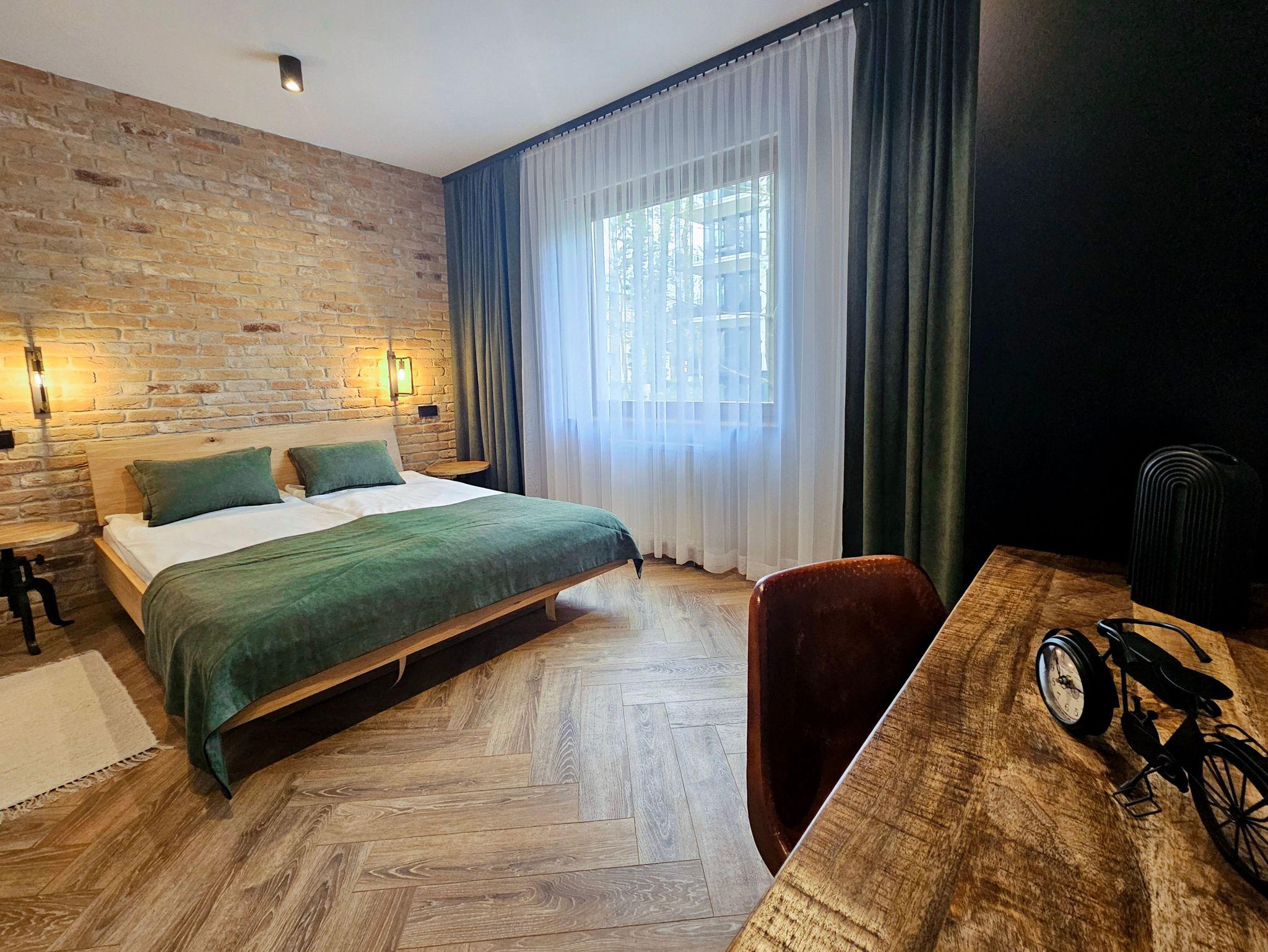 Sie besteht aus zwei Schlafzimmern und einem Wohnzimmer mit Terrasse. Die Fenster der beiden Schlafzimmer sind nach Norden zum gerichtet. Jedes Schlafzimmer ist mit einem Doppelbett, Kleiderschrank und einem Nachttisch mit Lampen ausgestattet.