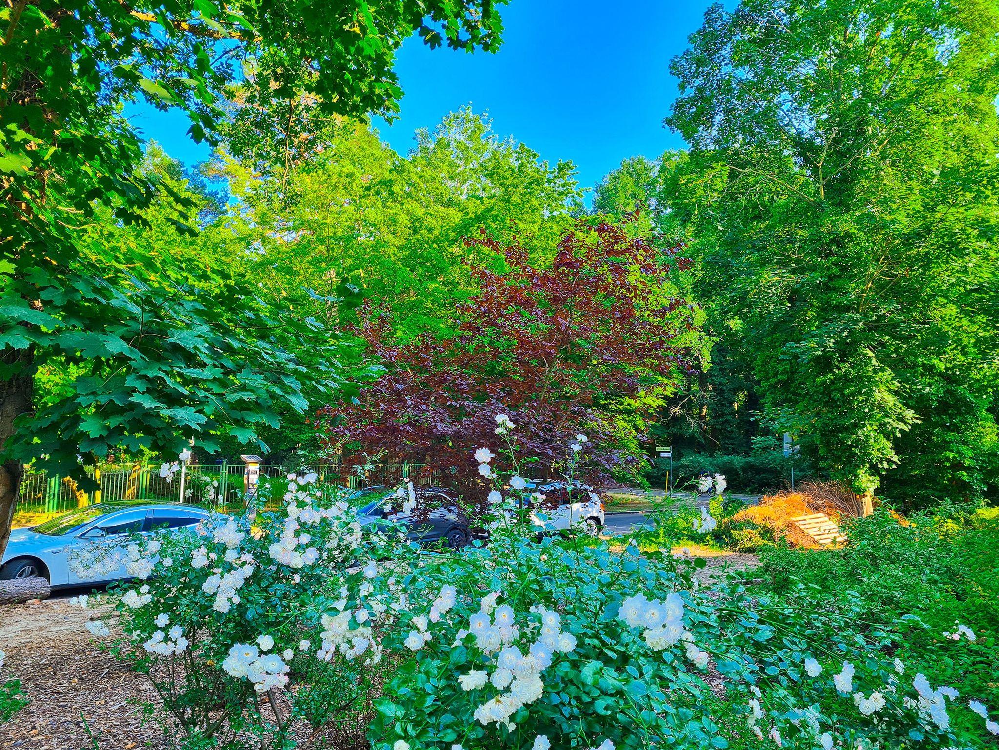 Das Auto kann man auf der Straße parken, gebührenpflichtig (ganzjährig kostenpflichtige Parkzone).