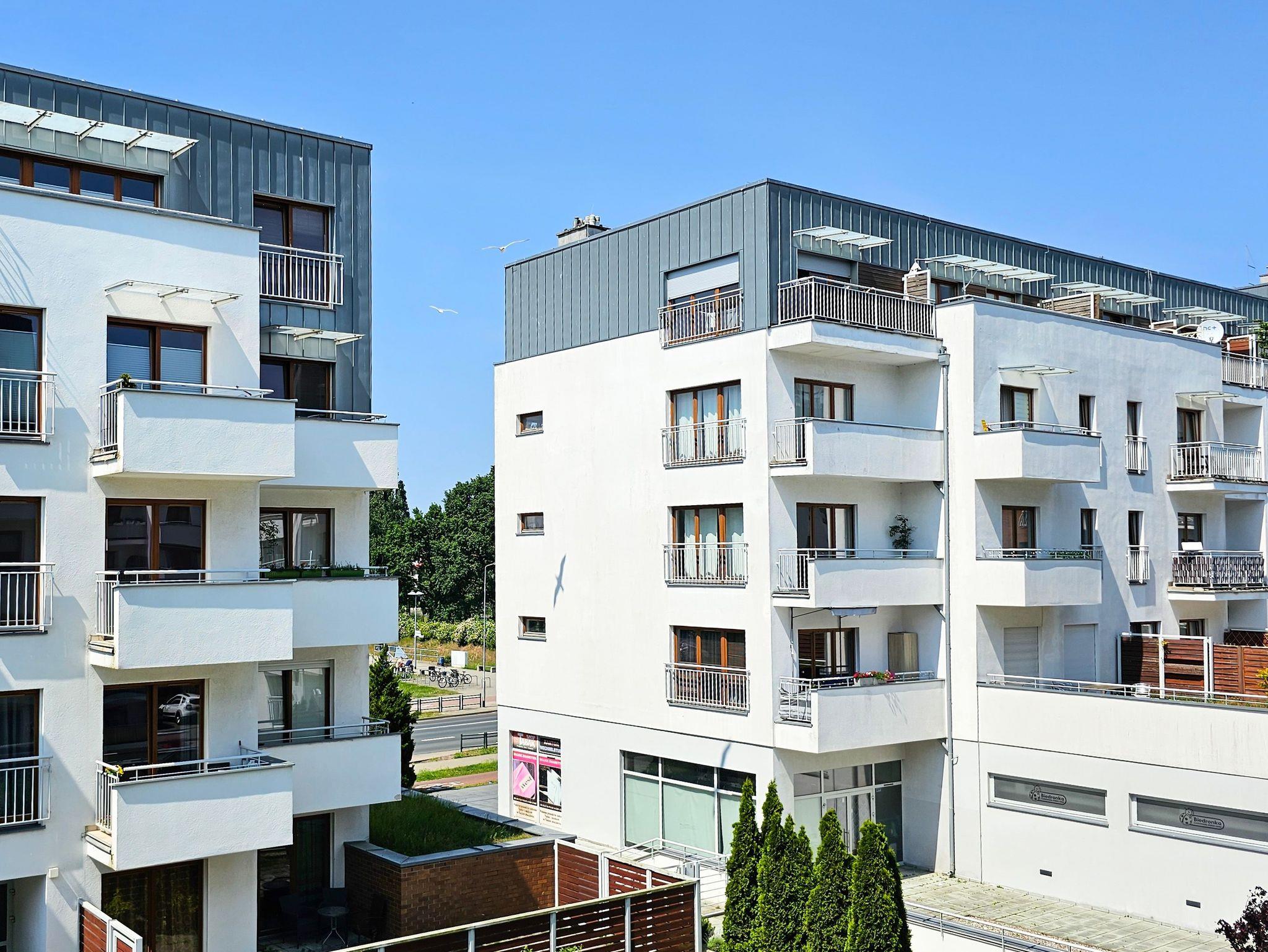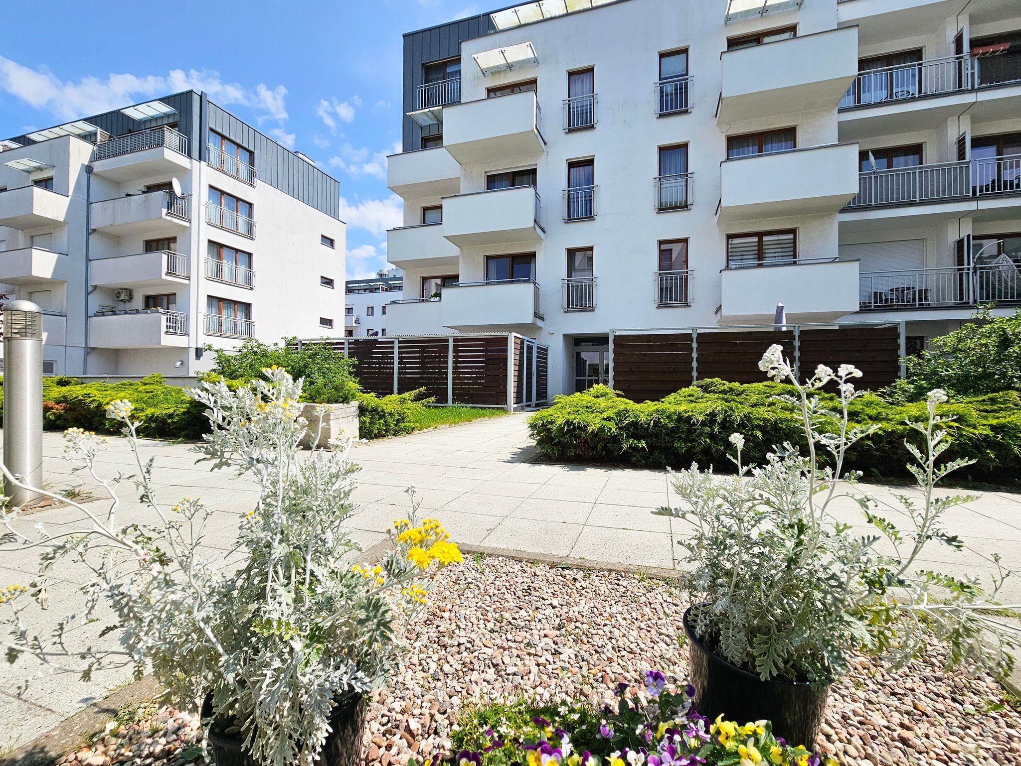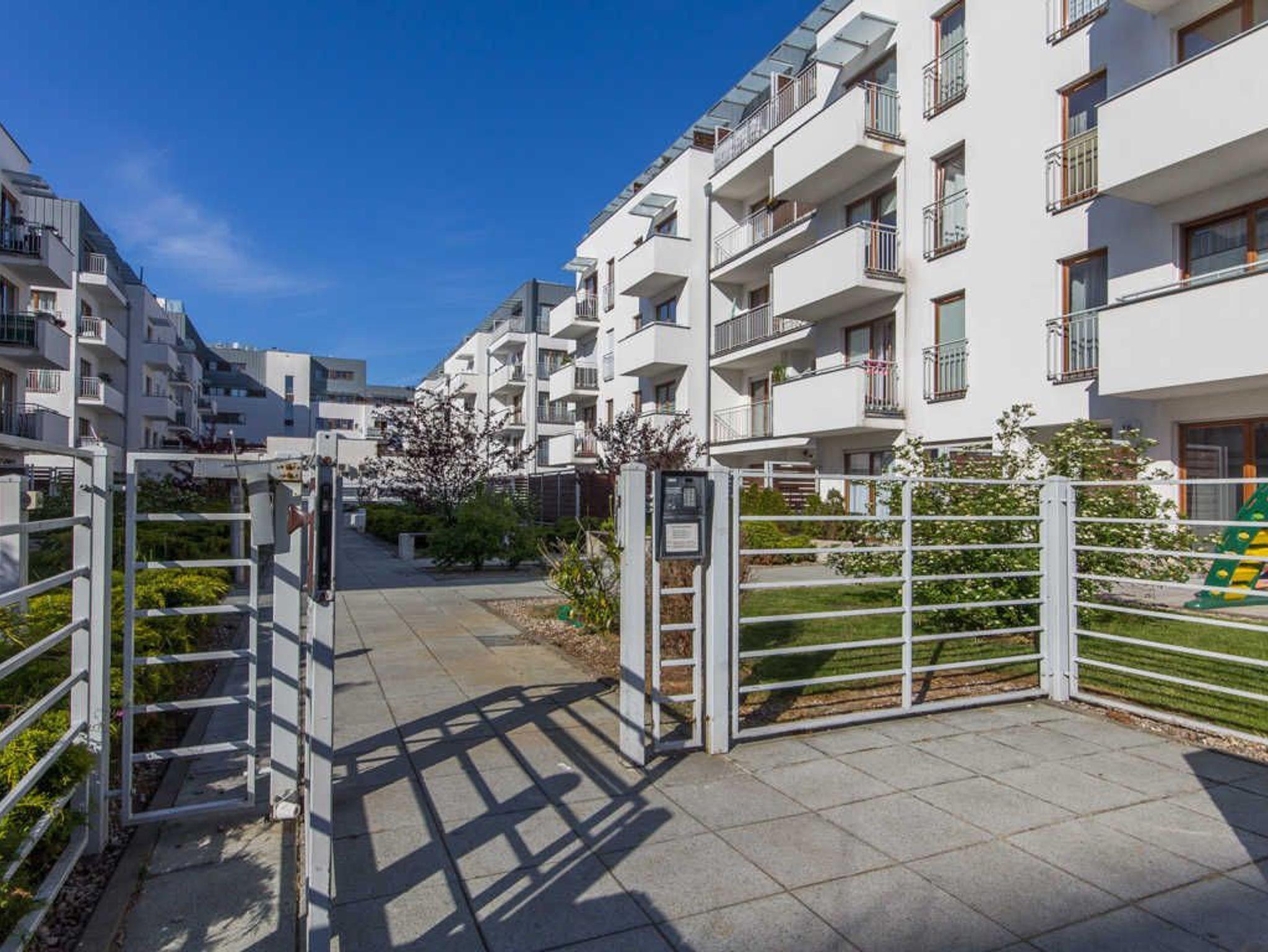 Das Gebäude, in dem sich die Ferienwohnung befindet, liegt in der Wohnsiedlung PLATAN, welche ein modernes und ästhetisches Wohnkomplex ist. Das Gebäude verfügt über einen Aufzug. Auf dem Grundstücksgelände sind viele Grünflächen und Kinderspielplätze, die von Gästen genutzt werden können.
