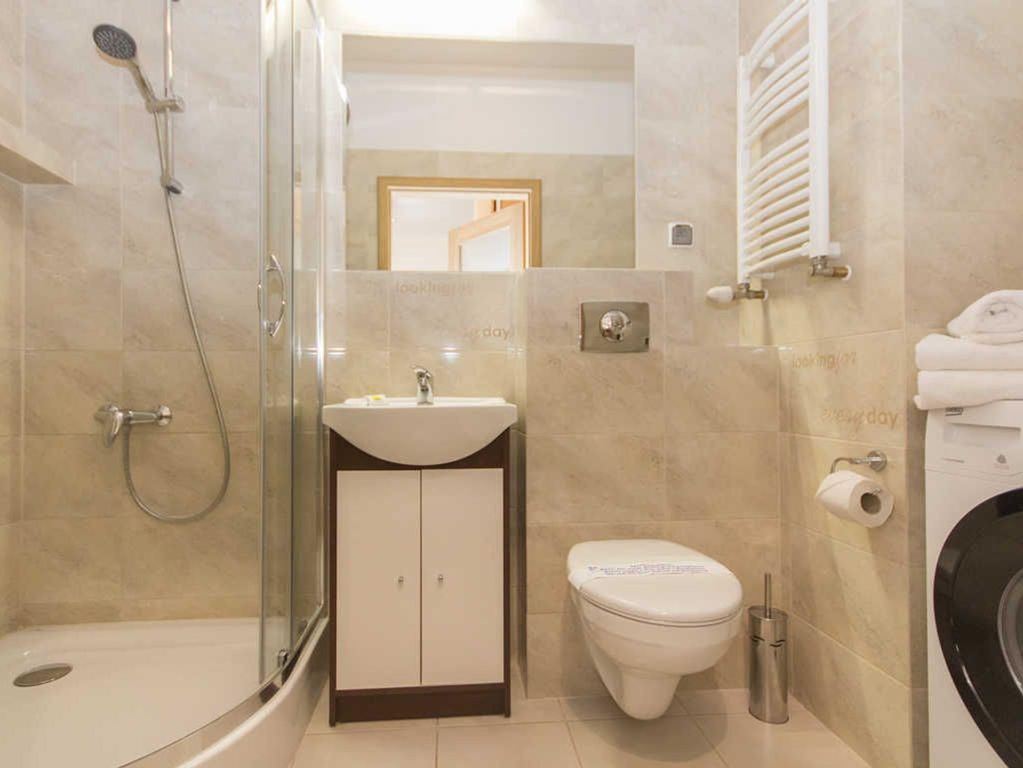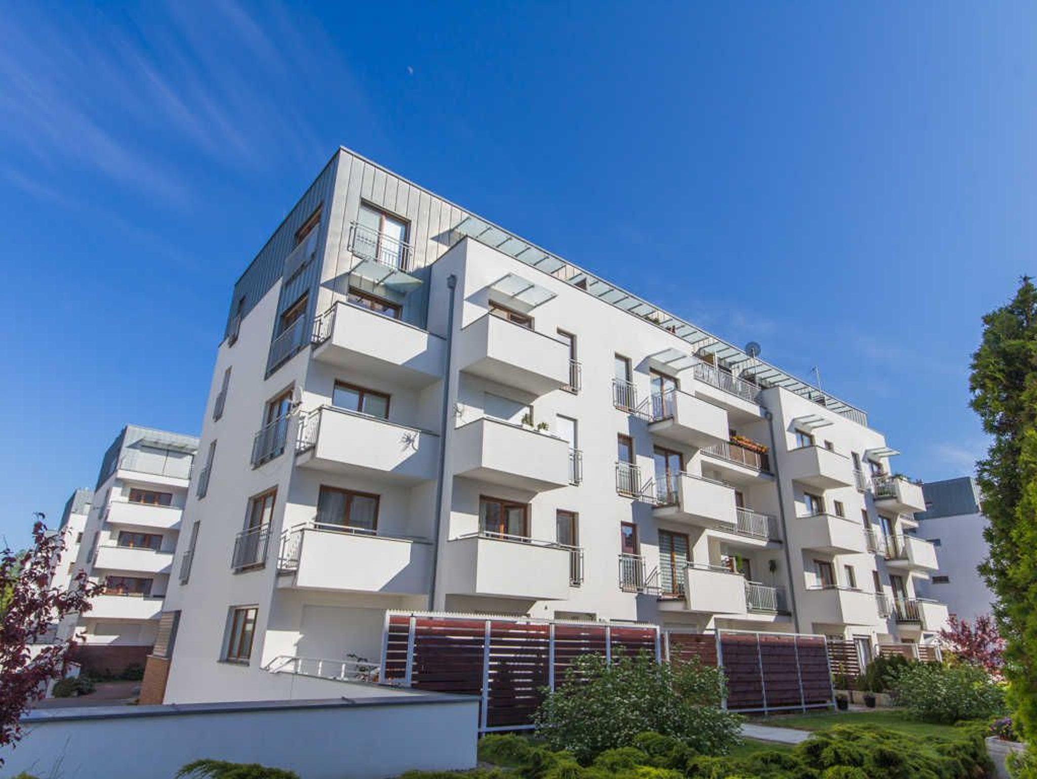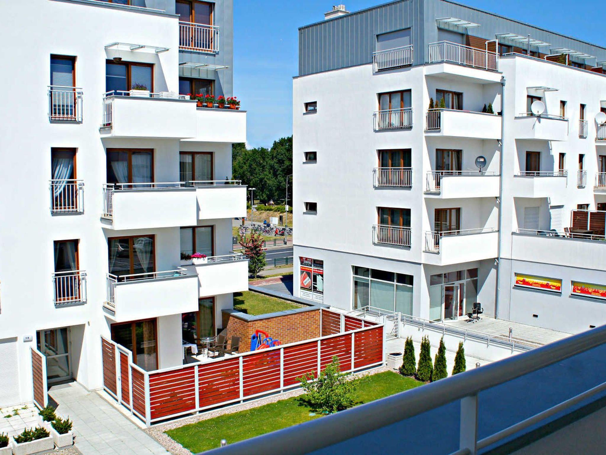 Das Gebäude, in dem sich die Ferienwohnung befindet, liegt in der Wohnsiedlung PLATAN, welche ein modernes und ästhetisches Wohnkomplex ist. Das Gebäude verfügt über einen Aufzug. Auf dem Grundstücksgelände sind viele Grünflächen und Kinderspielplätze, die von Gästen genutzt werden können.