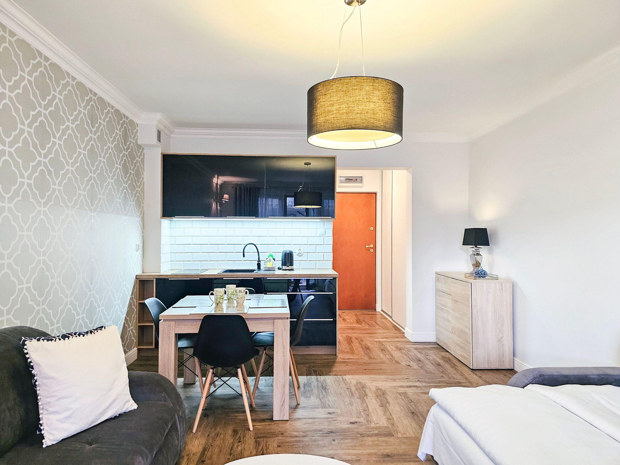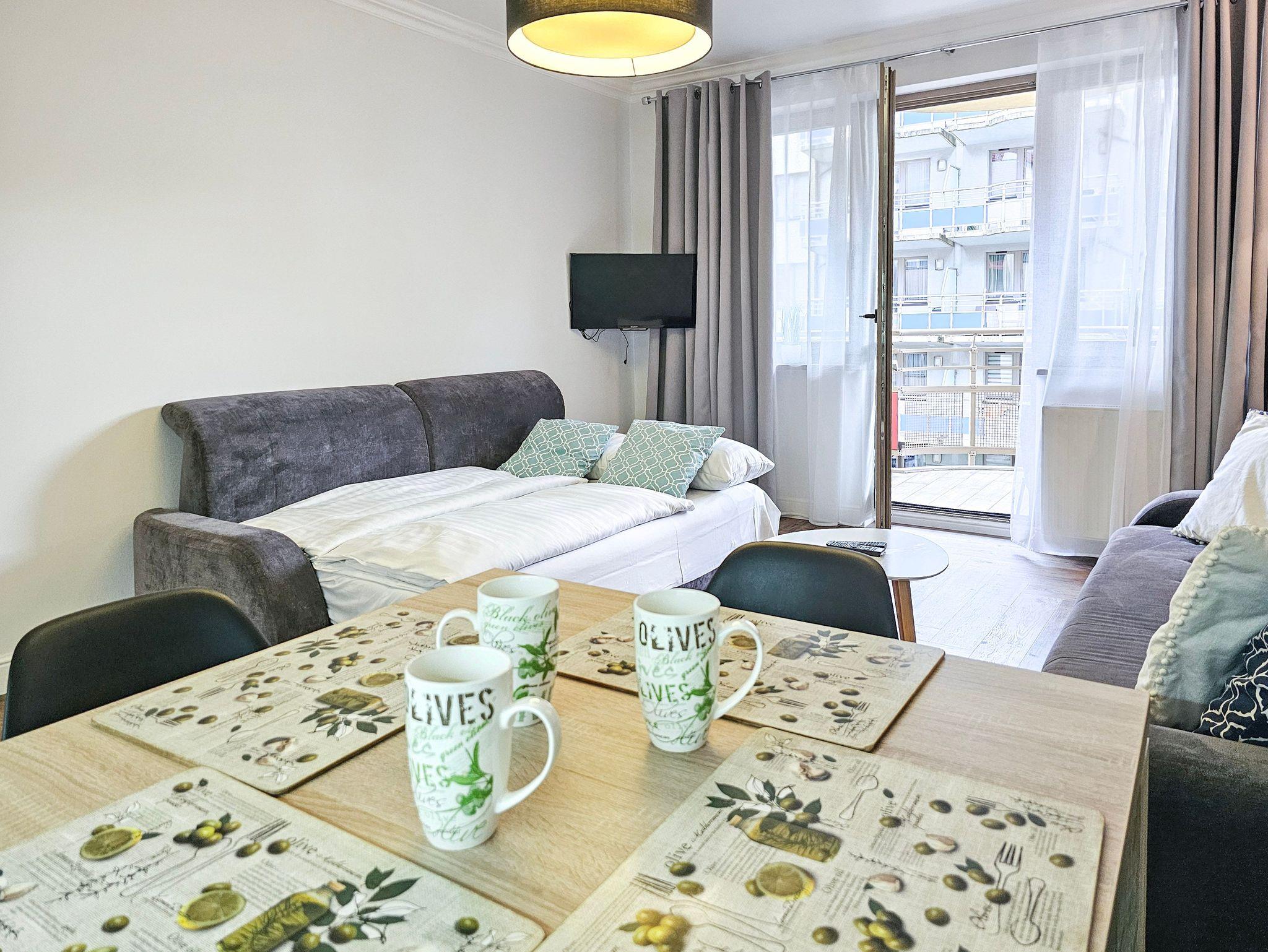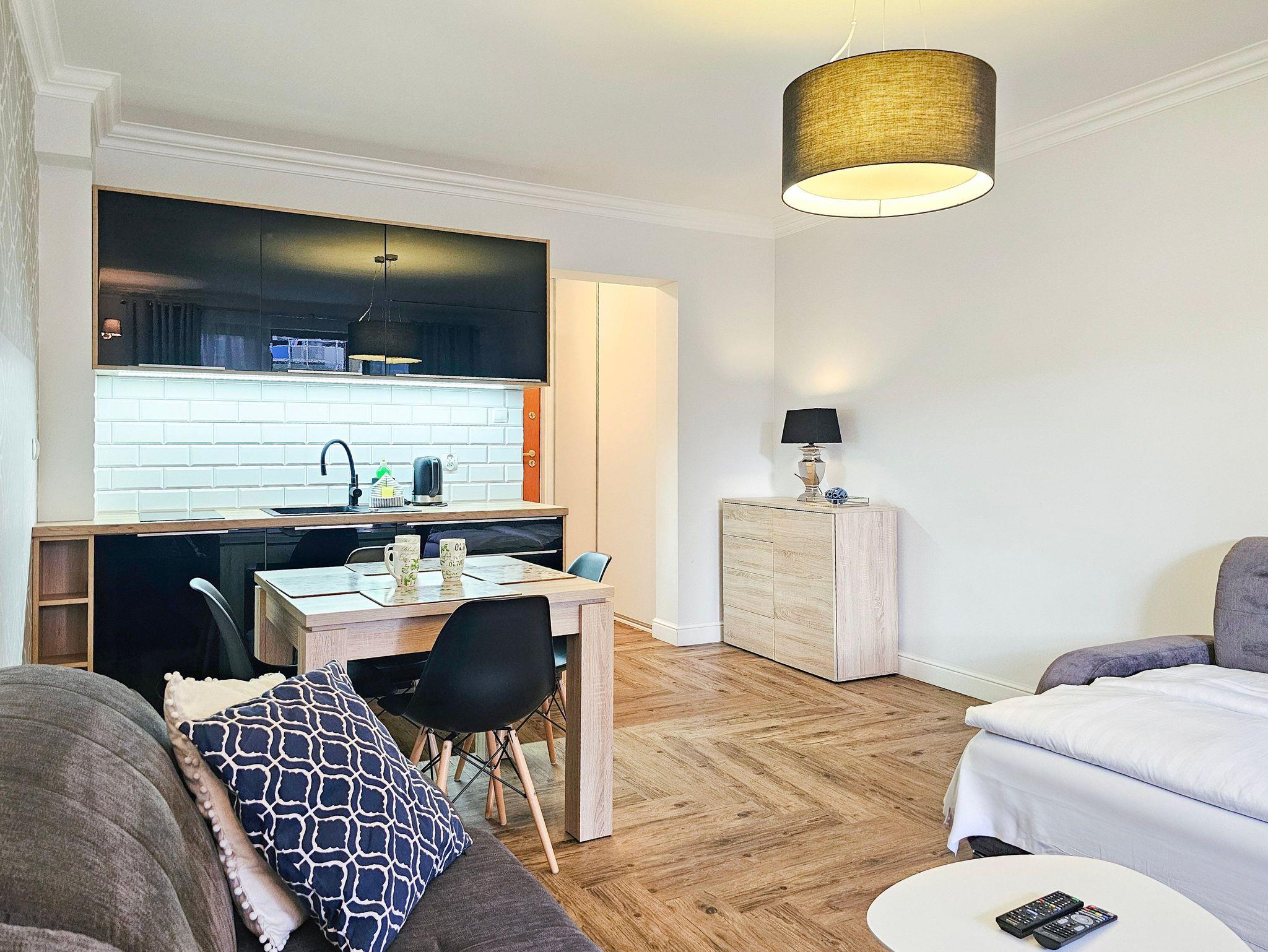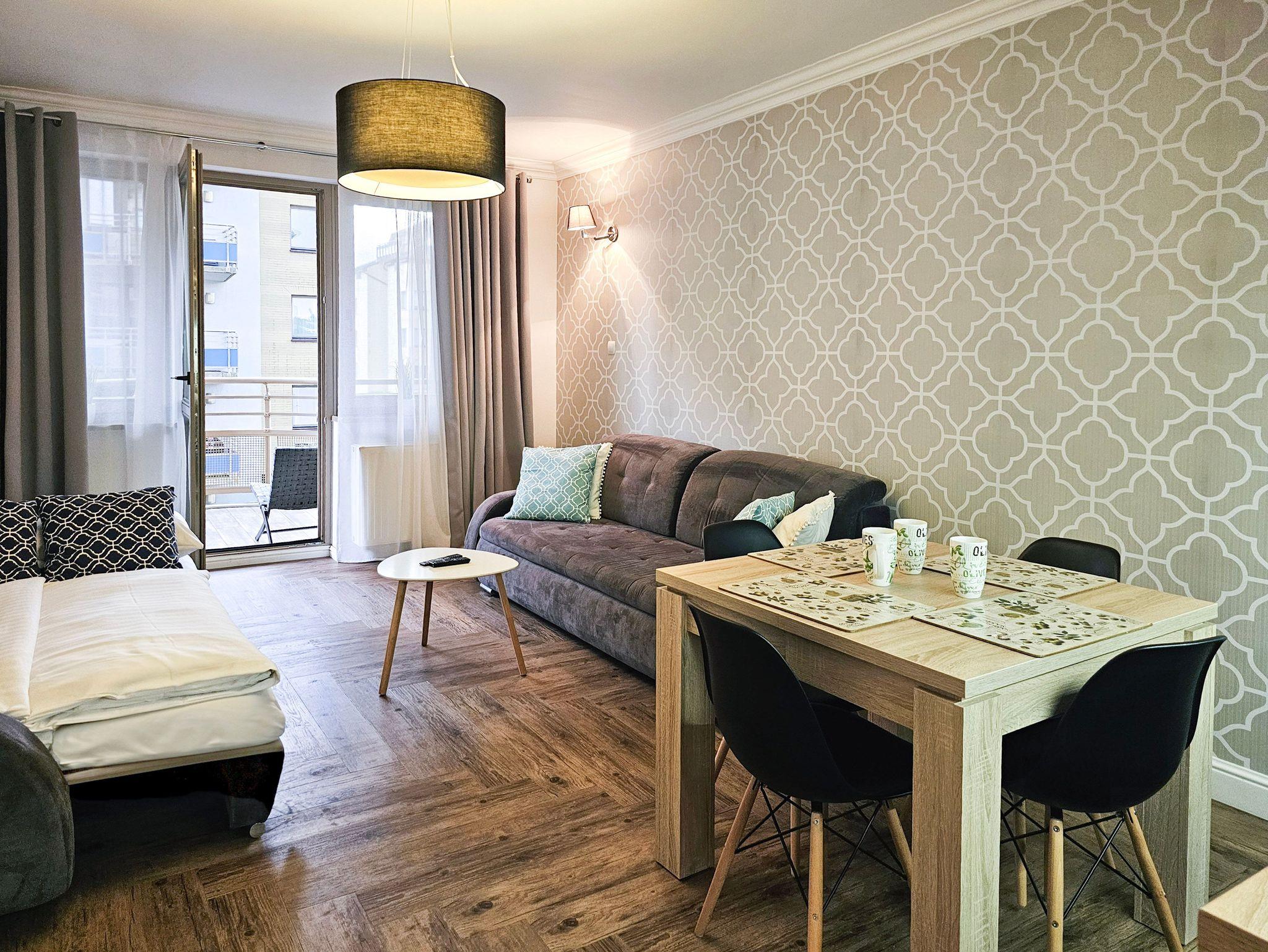 Komfortables Studio-Apartment mit Balkon, gelegen im Zdrojowa-Komplex, in der Nähe des Kurparks, der Promenade und des Strandes. Die ruhige, abgeschlossene Wohnanlage befindet sich im nordöstlichen Teil von winoujcie.