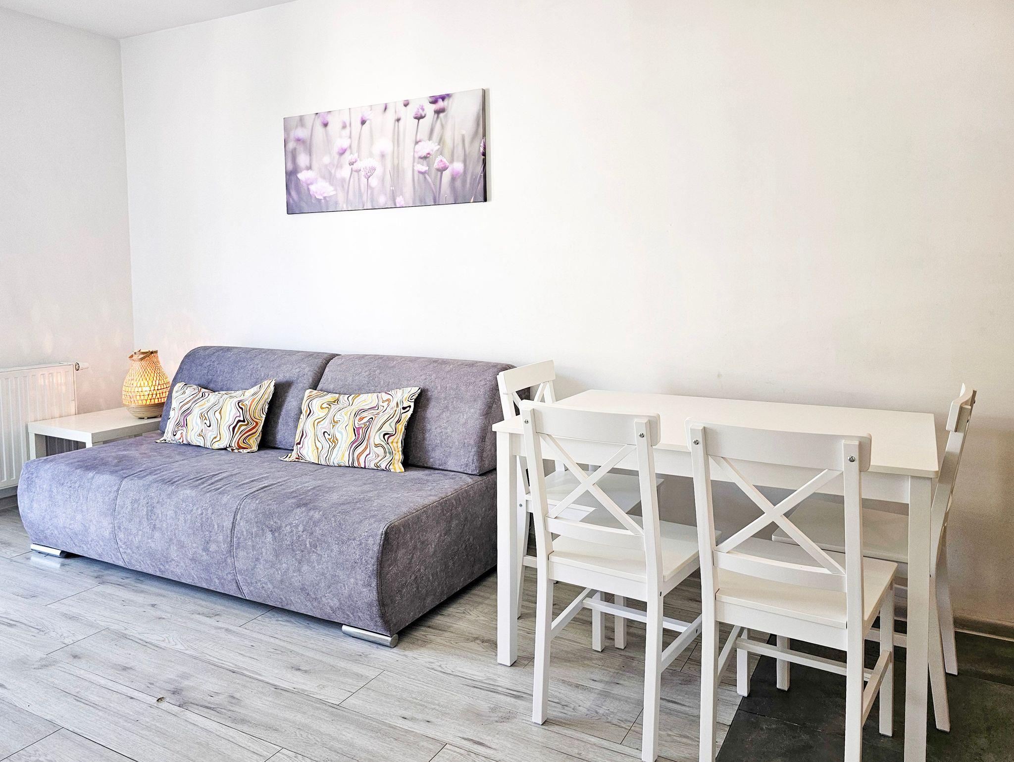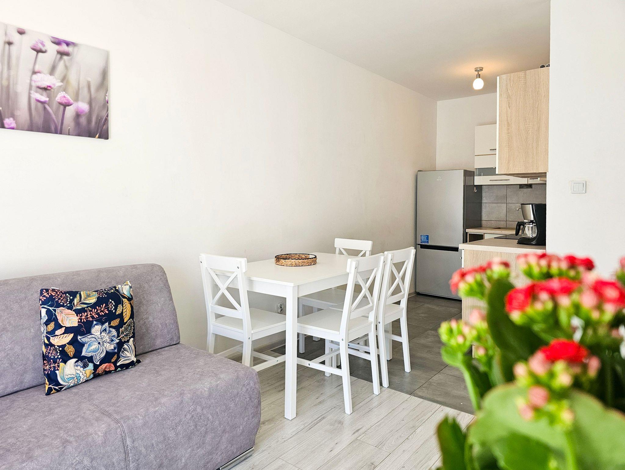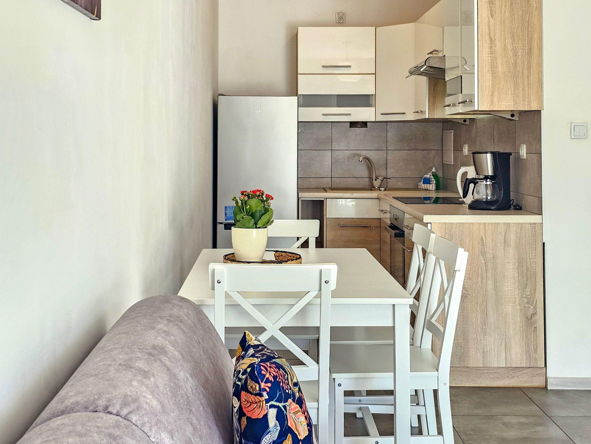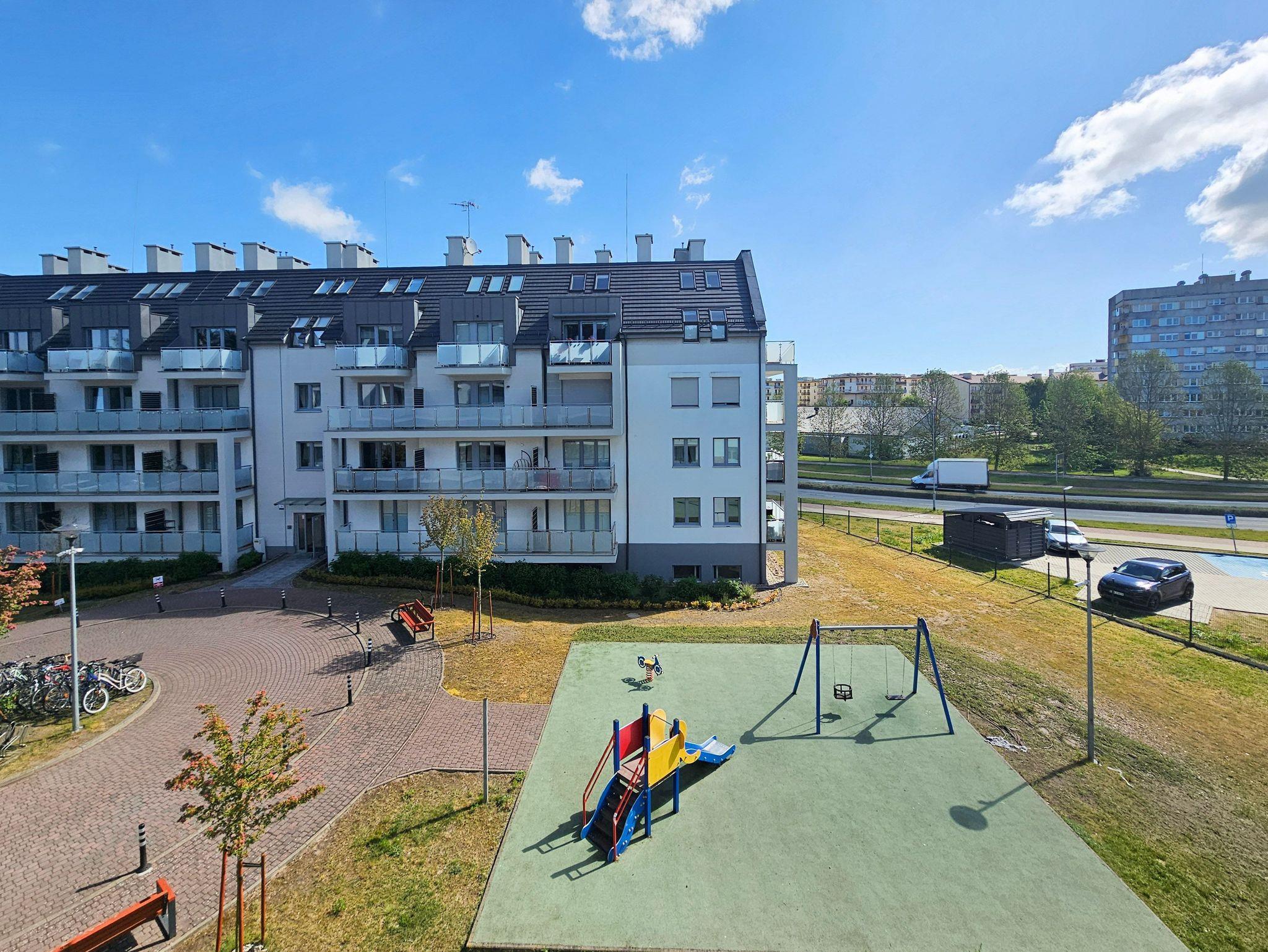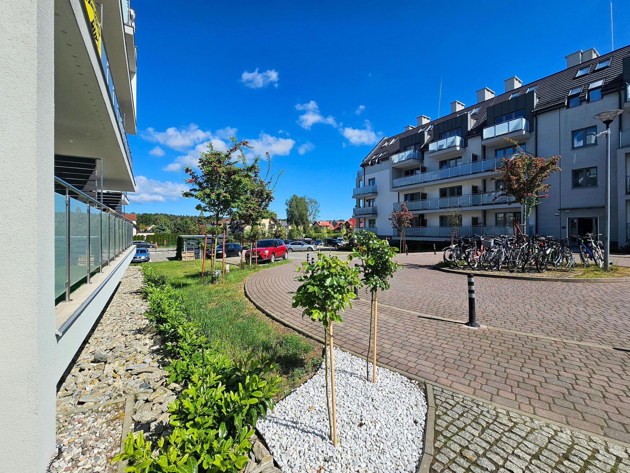 Zweizimmerwohnung in einer ruhigen, abgeschlossenen Wohnsiedlung mit zwei Mehrfamilienhäusern. Im Innenhof befindet sich ein kleiner Spielplatz. Die Siedlung liegt in der Nähe des widny-Waldes, unweit der UBB-Bahnstation. Ein idealer Ausgangspunkt für Spaziergänge, Radtouren und Strandbesuche.