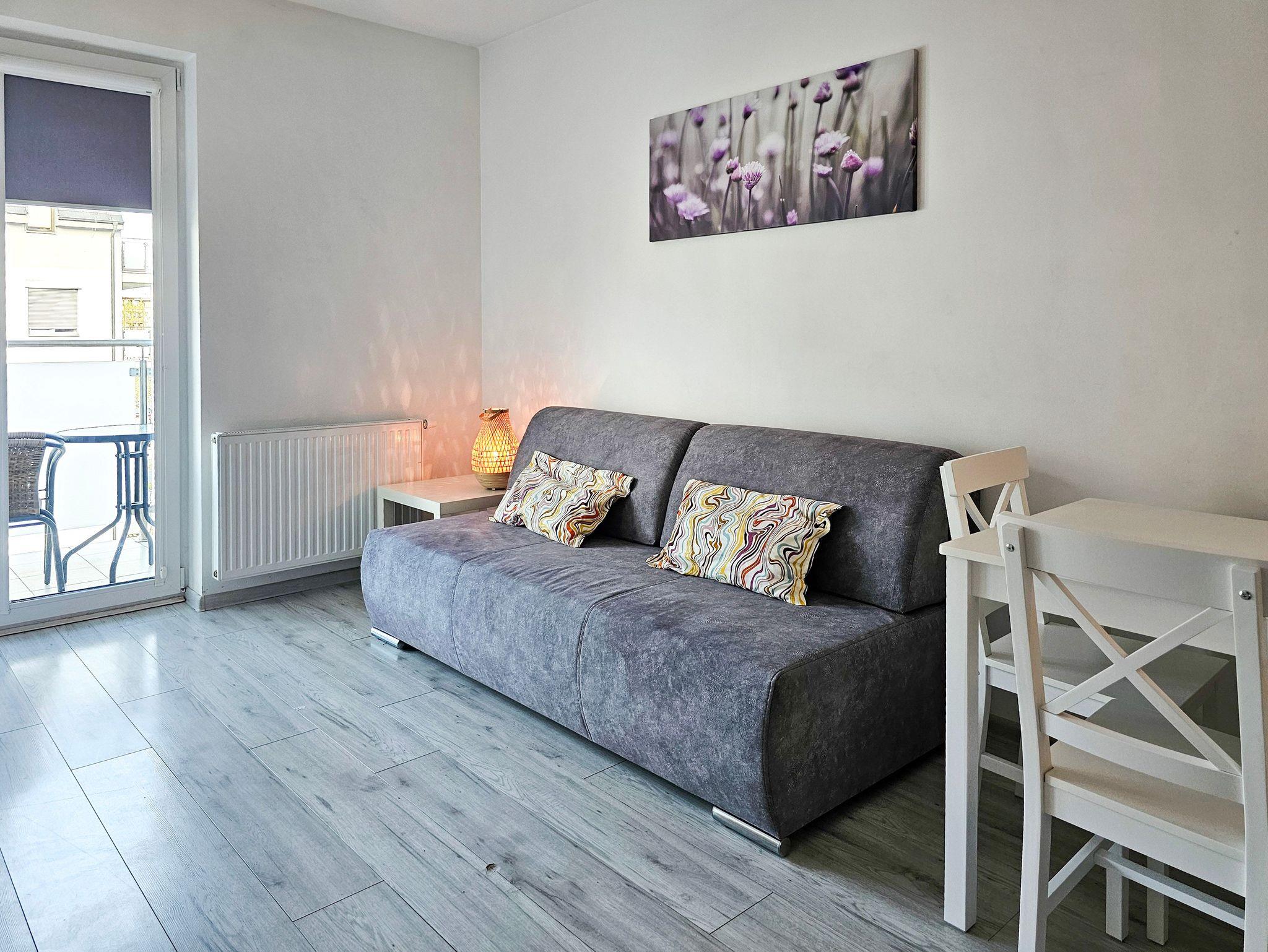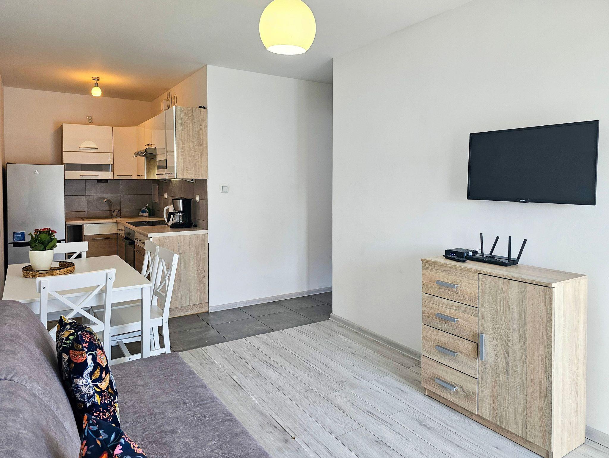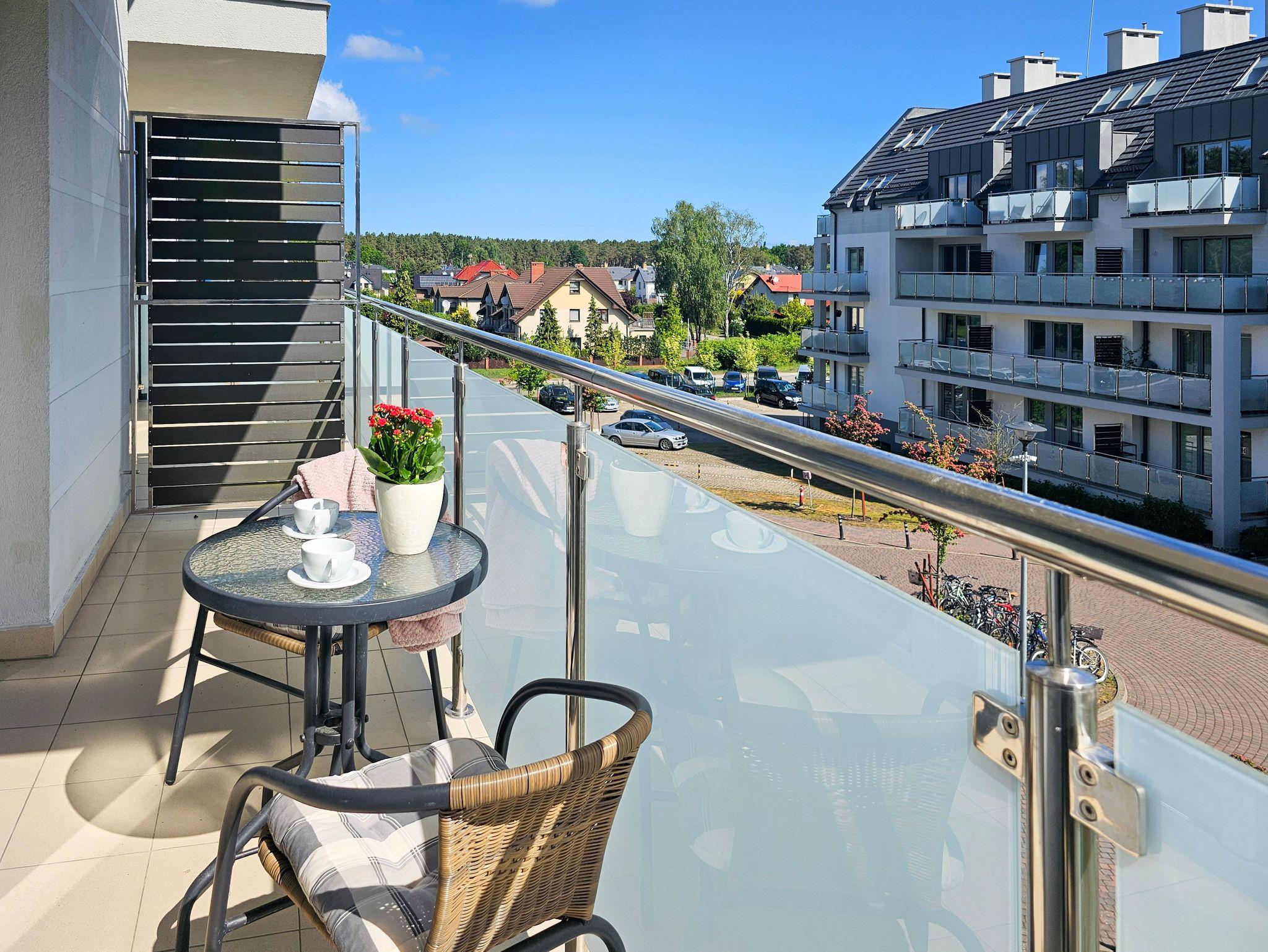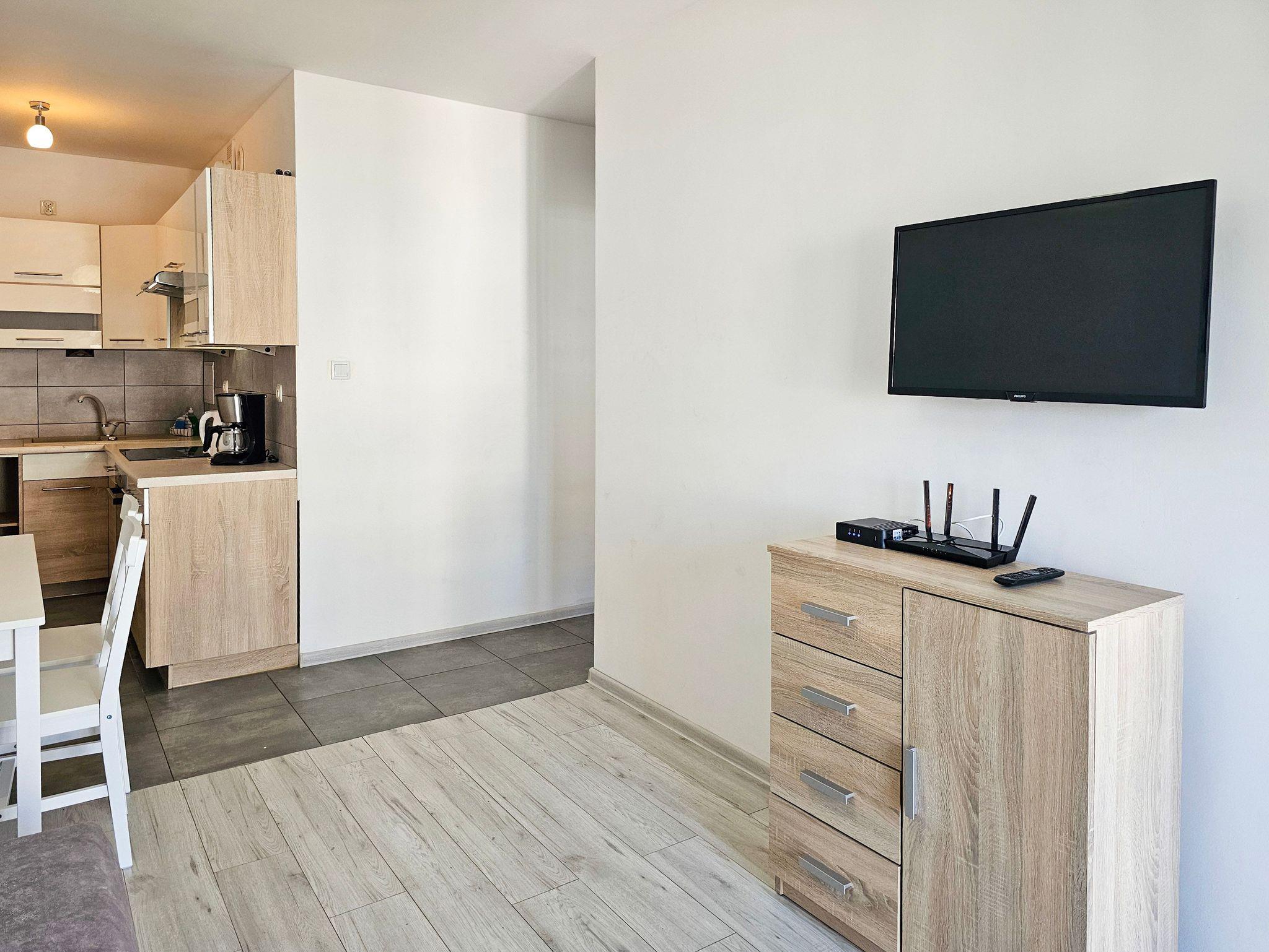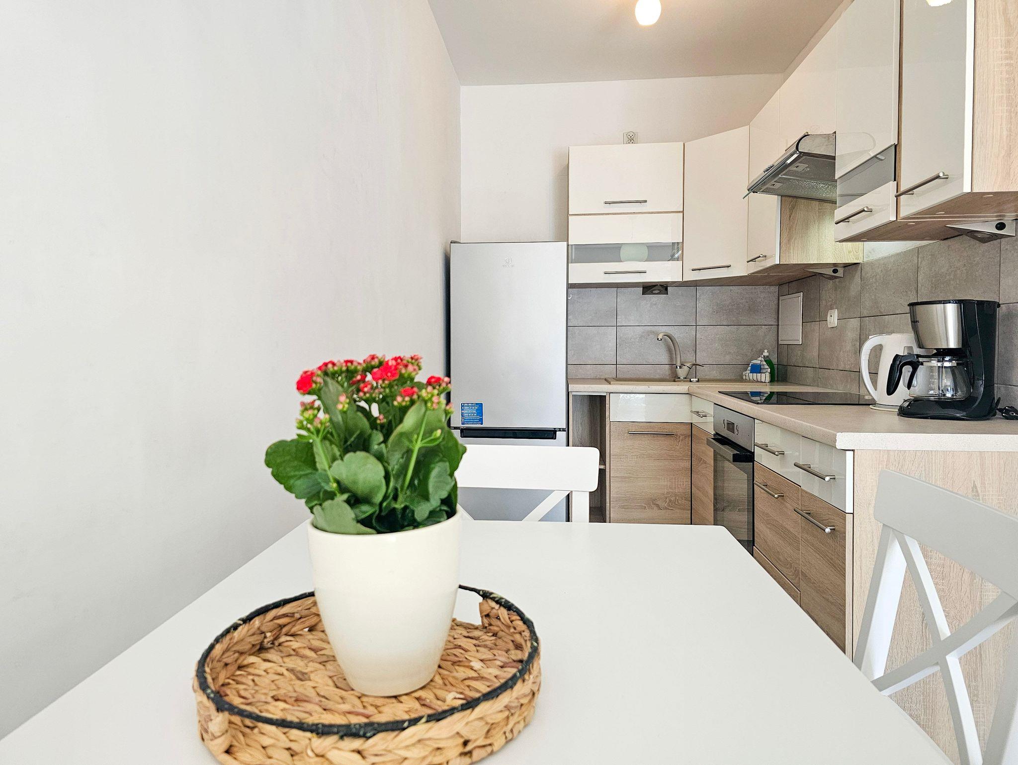 Zweizimmerwohnung in einer ruhigen, abgeschlossenen Wohnsiedlung mit zwei Mehrfamilienhäusern. Im Innenhof befindet sich ein kleiner Spielplatz. Die Siedlung liegt in der Nähe des widny-Waldes, unweit der UBB-Bahnstation. Ein idealer Ausgangspunkt für Spaziergänge, Radtouren und Strandbesuche.