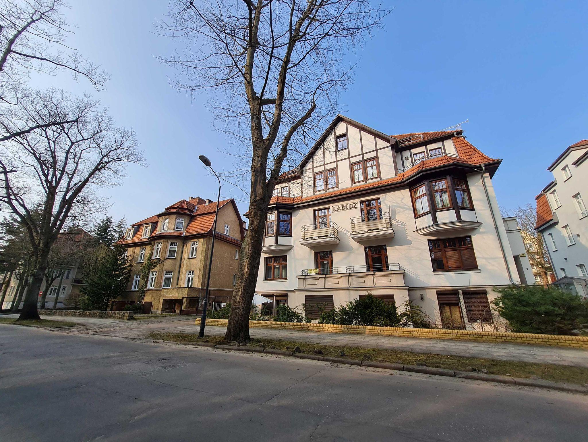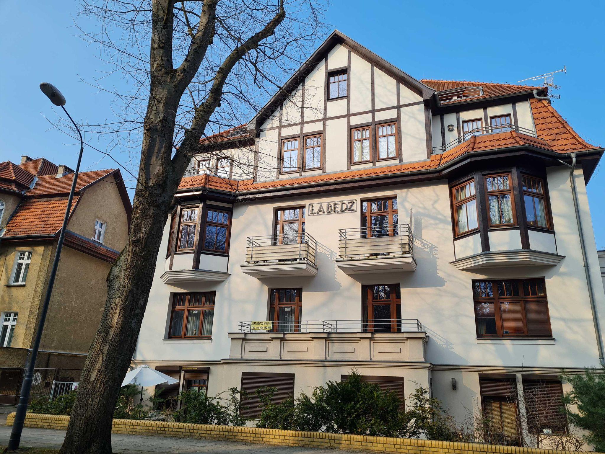 Das Appartementhaus „Labedz befindet sich in dem „Kurviertel der Stadt Swinemünde in der Sienkiewicza Strasse 17 und ist nur 100m von der Promenade und 200m vom Strand entfernt. Im Rahmen eines komplexen Ausbaus und Modernisierung des Gebäudes ist es gelungen, die schönen Züge der Architektur der 20er Jahre sowohl außen als auch im Innern des Gebäudes beizubehalten. Das Haus hat vier Stockwerke mit ausgebautem Dachgeschoss. Zu Ihrer Verfügung stehen sehr individuell eingerichtete 2 Zimmer Appartements mit Bad, Küchenzeile und Fernsehen. Auf dem Gründstück befindet sich ein Grill- und Erholungsplatz. Darüber hinaus haben Sie die Möglichkeit auf dem Hof einen Parkplatz (O) zu mieten.