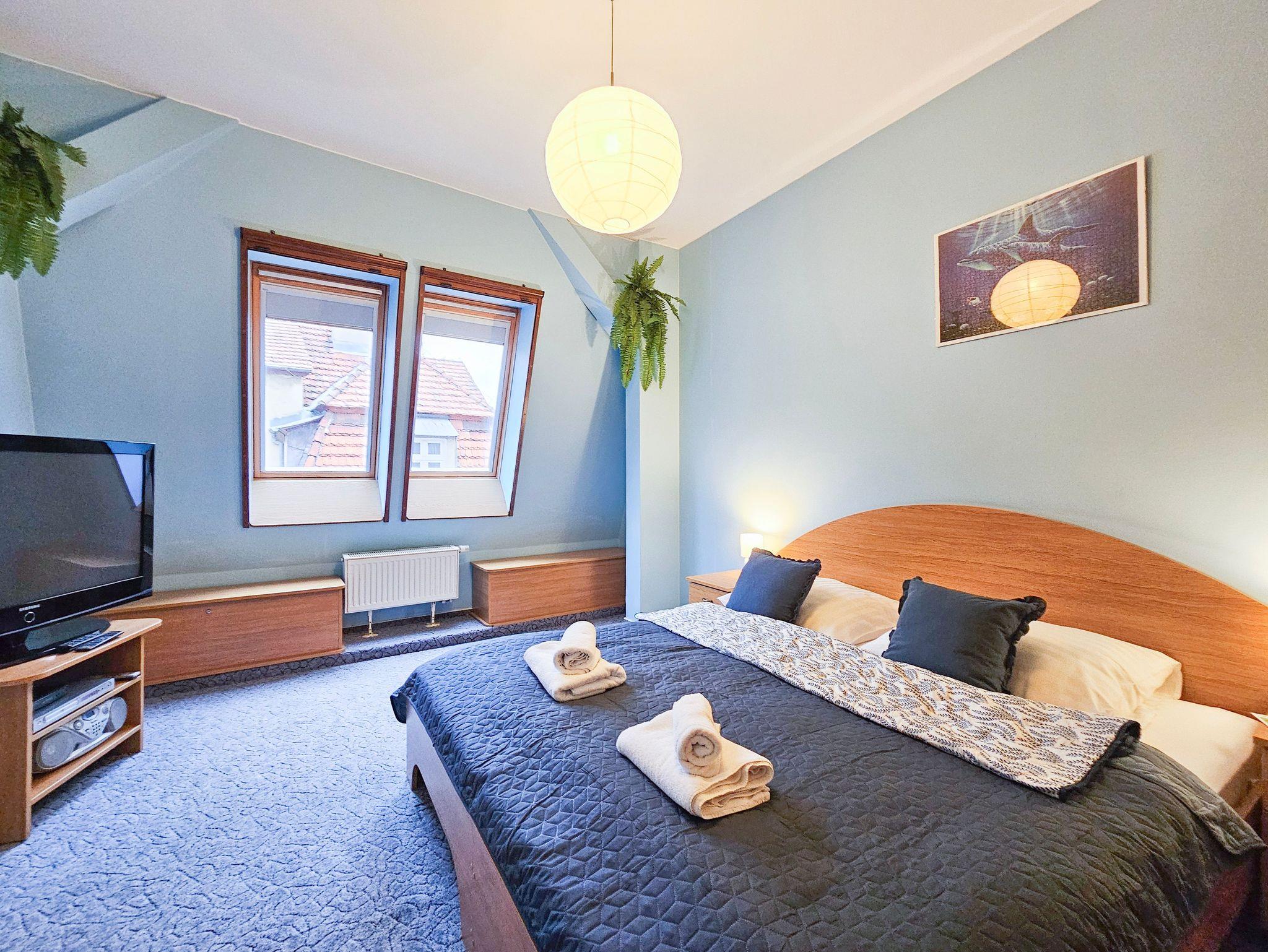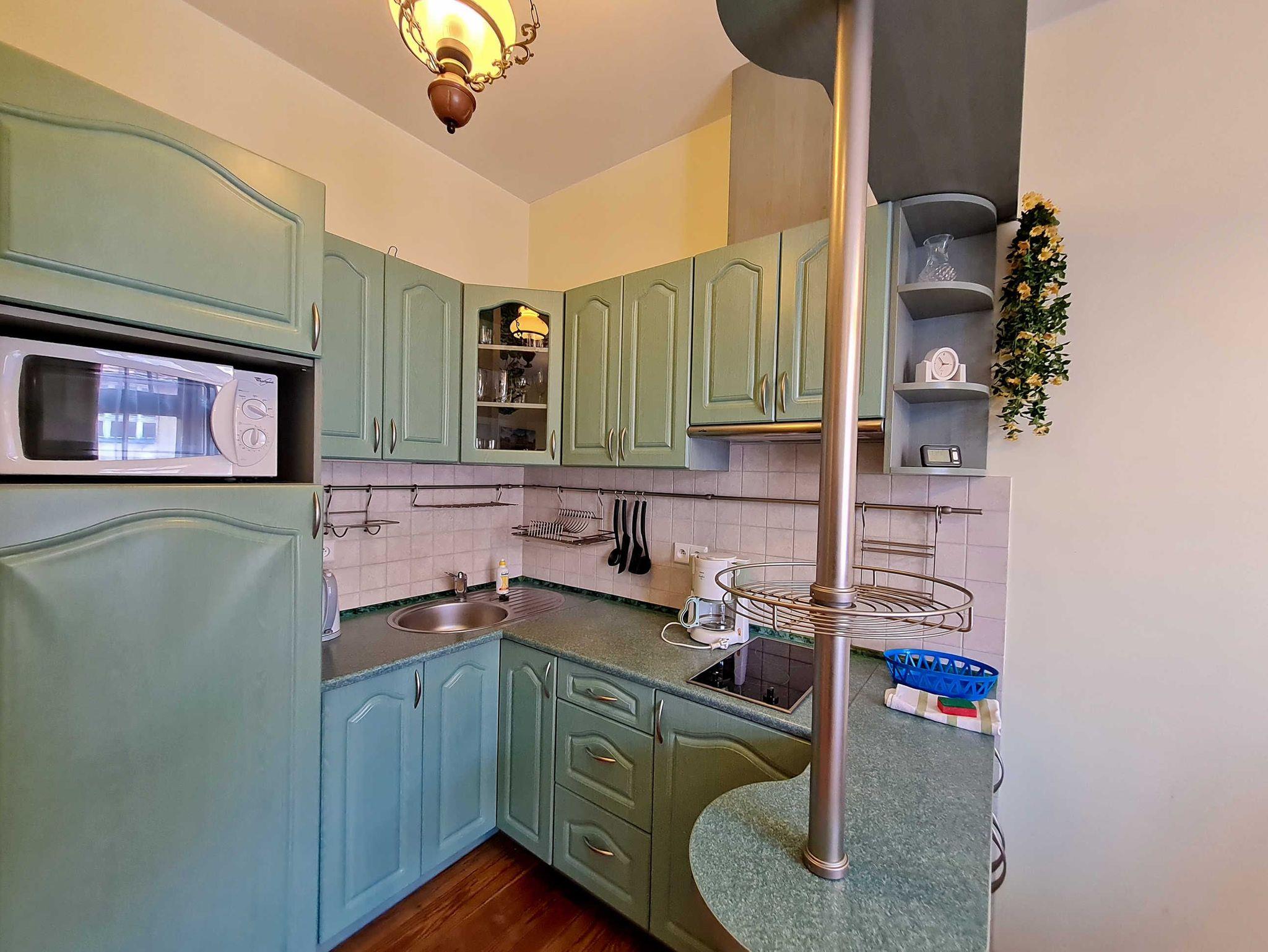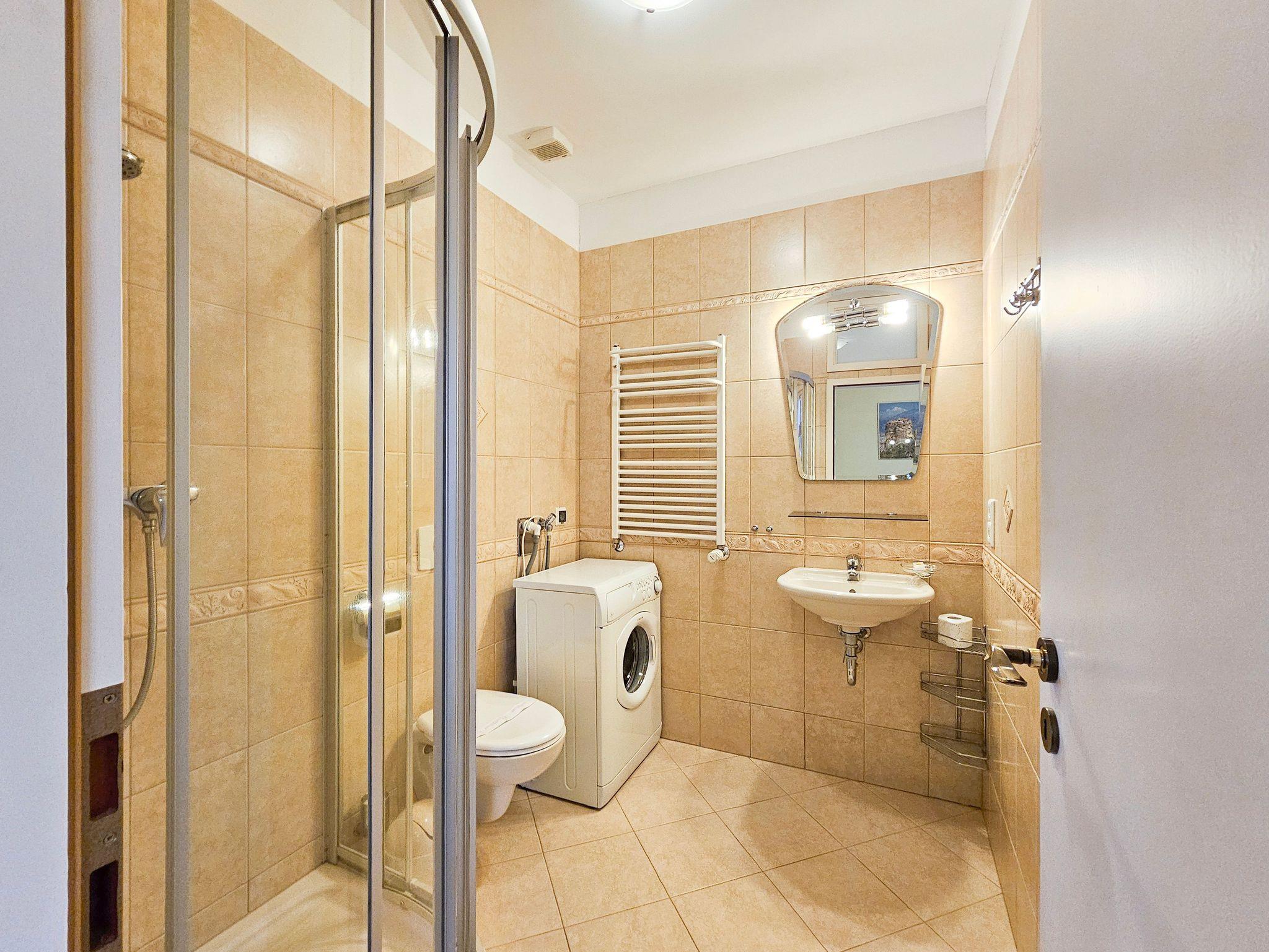 Eine komfortabel eingerichtete 2-Zimmer Wohnung mit Schlafzimmer mit Ehebett (160 x 200 cm) und Wohnzimmer mit Doppelcouch (140 x 200 cm) und Küchenzeile. Wohnung ausgestattet mit Waschmaschine und Mikrowelle.