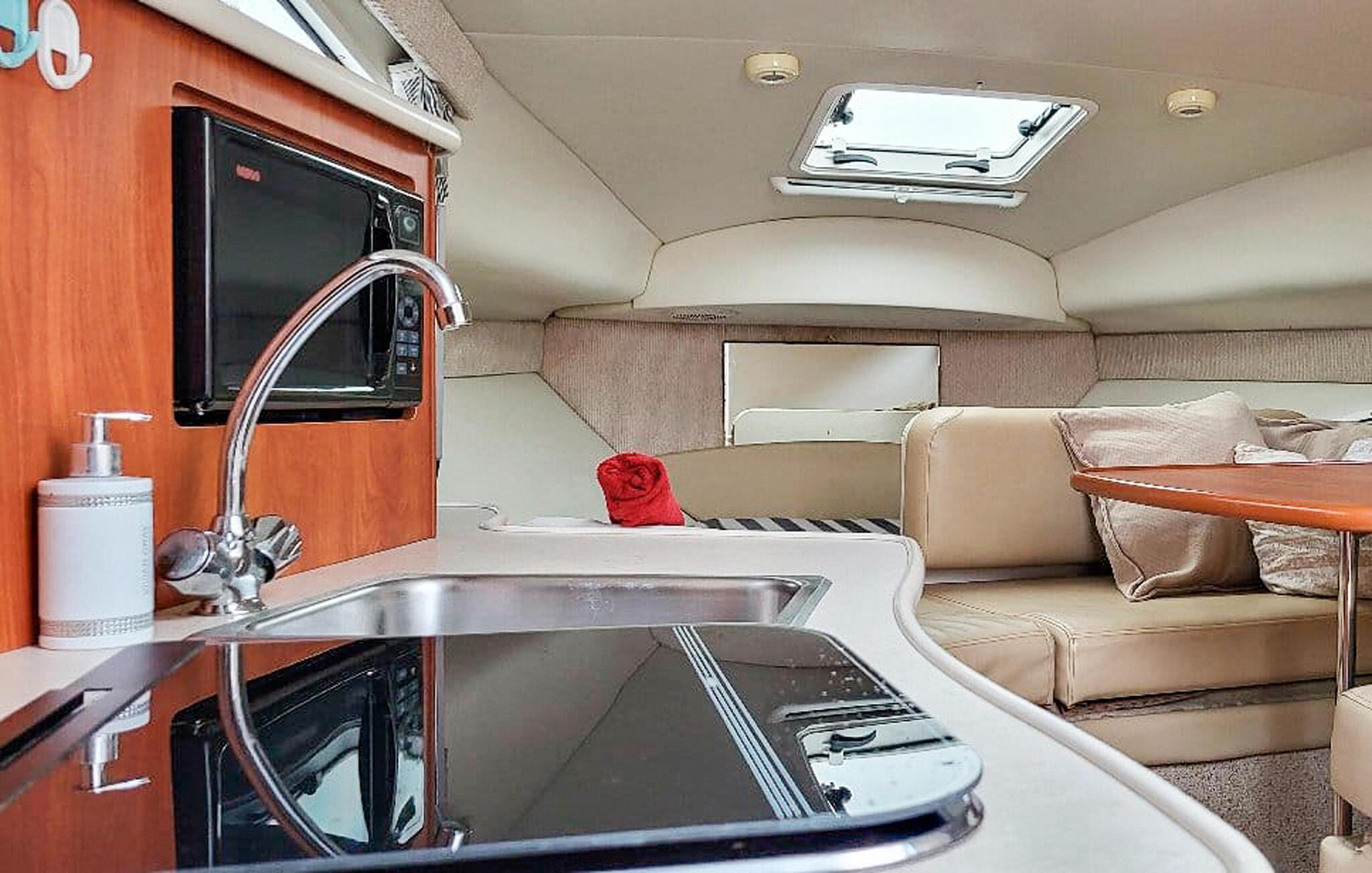 Gönnen Sie sich eine Auszeit auf dem Wasser und entdecken Sie die besondere Ruhe eines Hausbootes. Genießen Sie die Verbindung von Naturerlebnis und gemütlicher Wohnatmosphäre, während Sie neue Energie tanken. Machen Sie es sich auf den weichen Polsterbänken bequem und nutzen Sie den Esstisch für gesellige Mahlzeiten, die Sie in der Bootsküche problemlos zubereiten können.