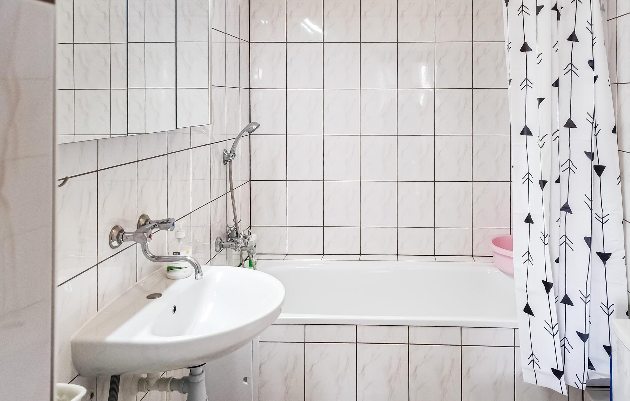 - WC mit warmem und kaltem Wasser, Handbrause und Badewanne