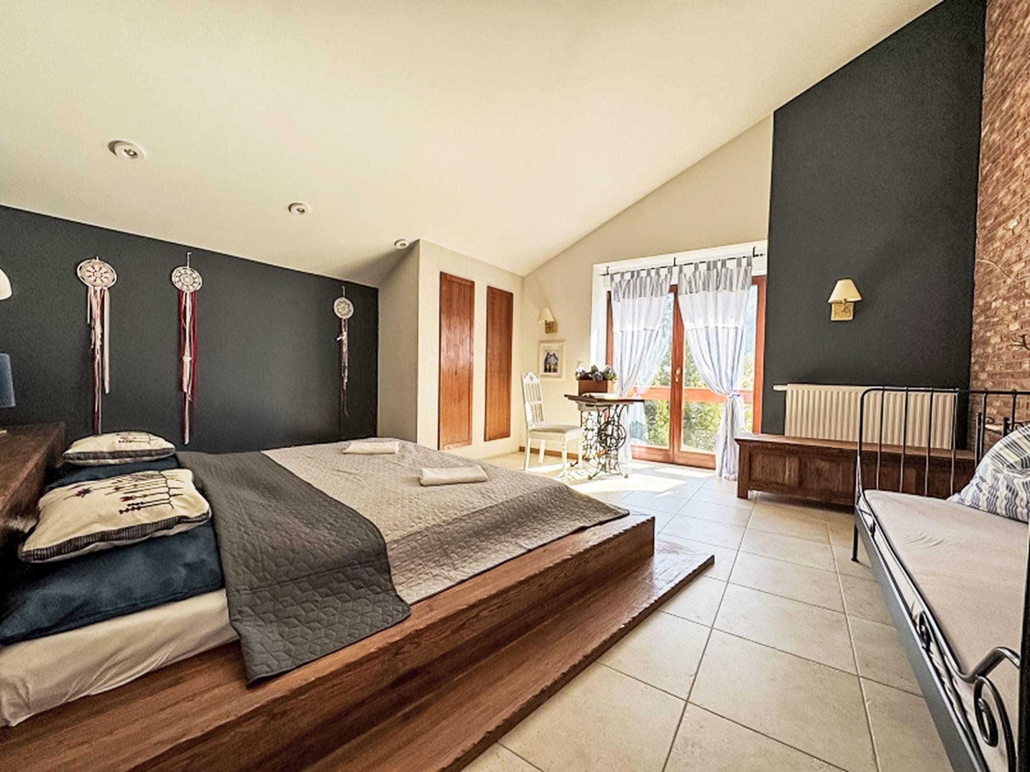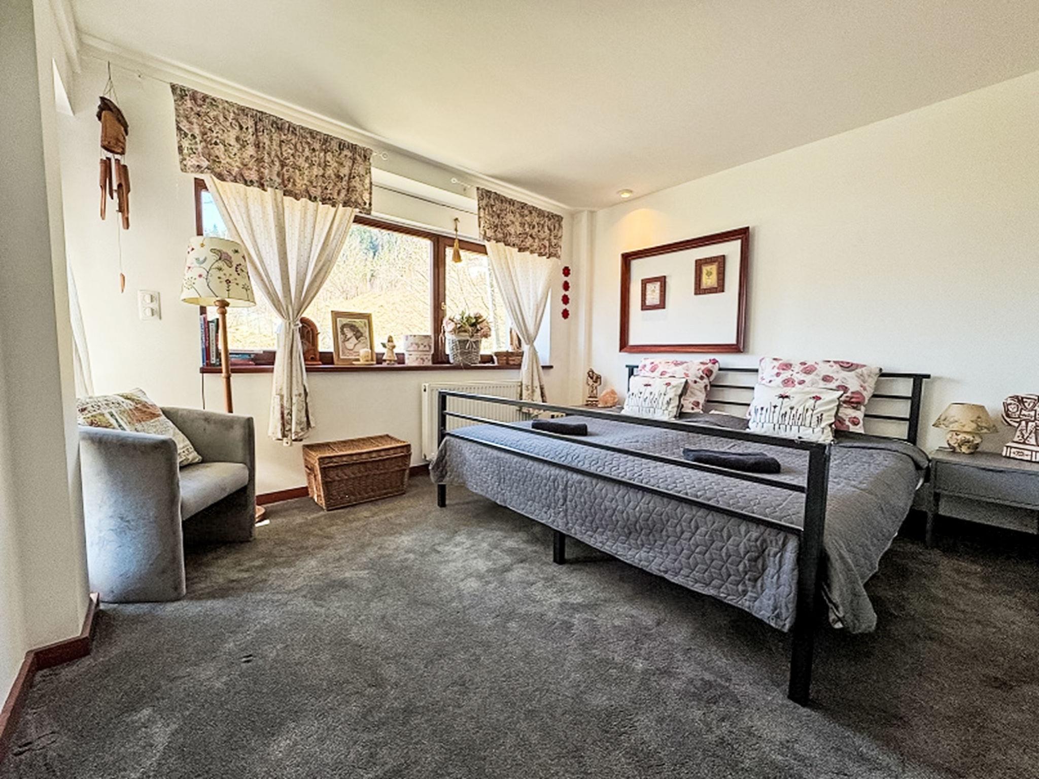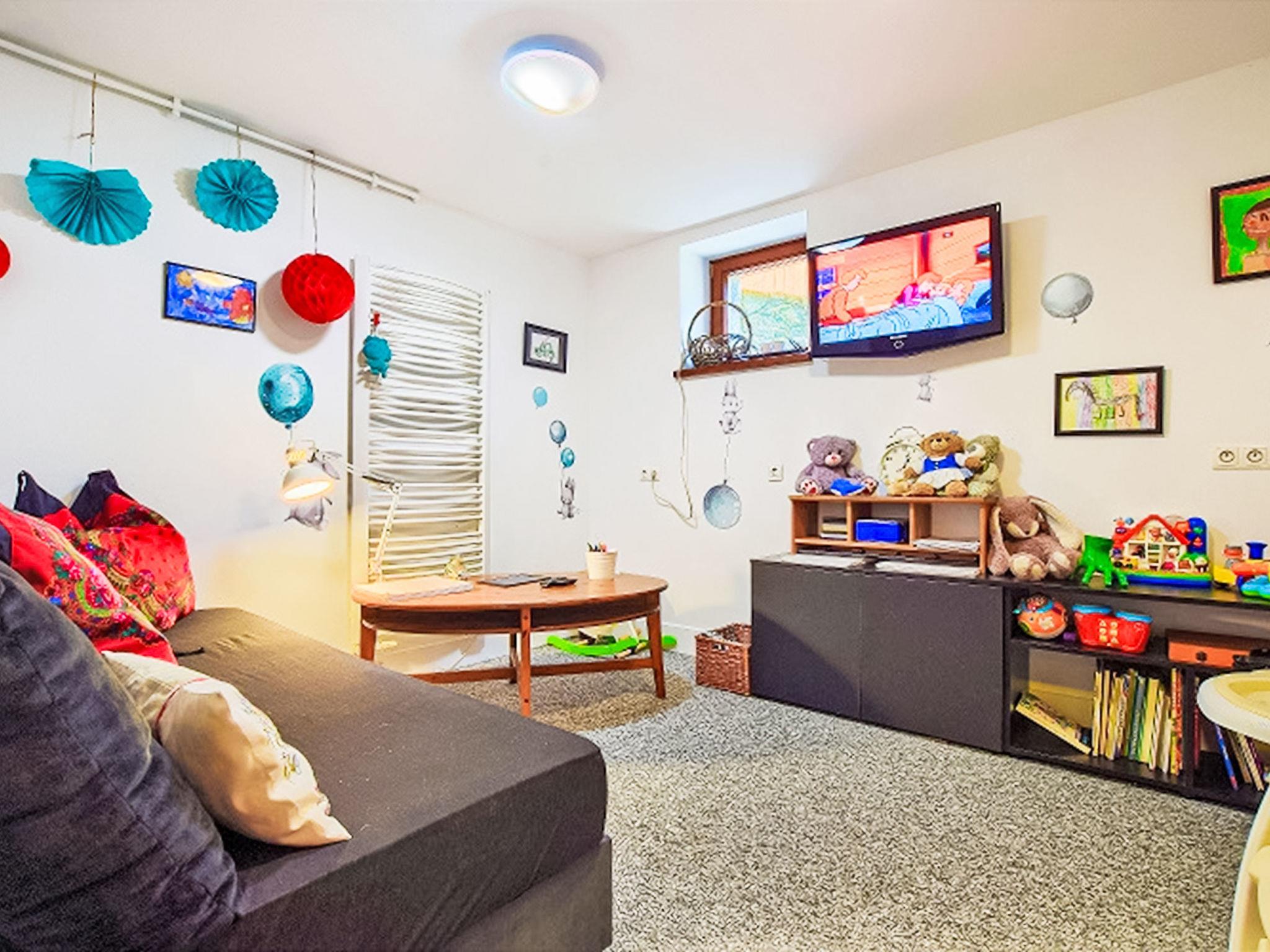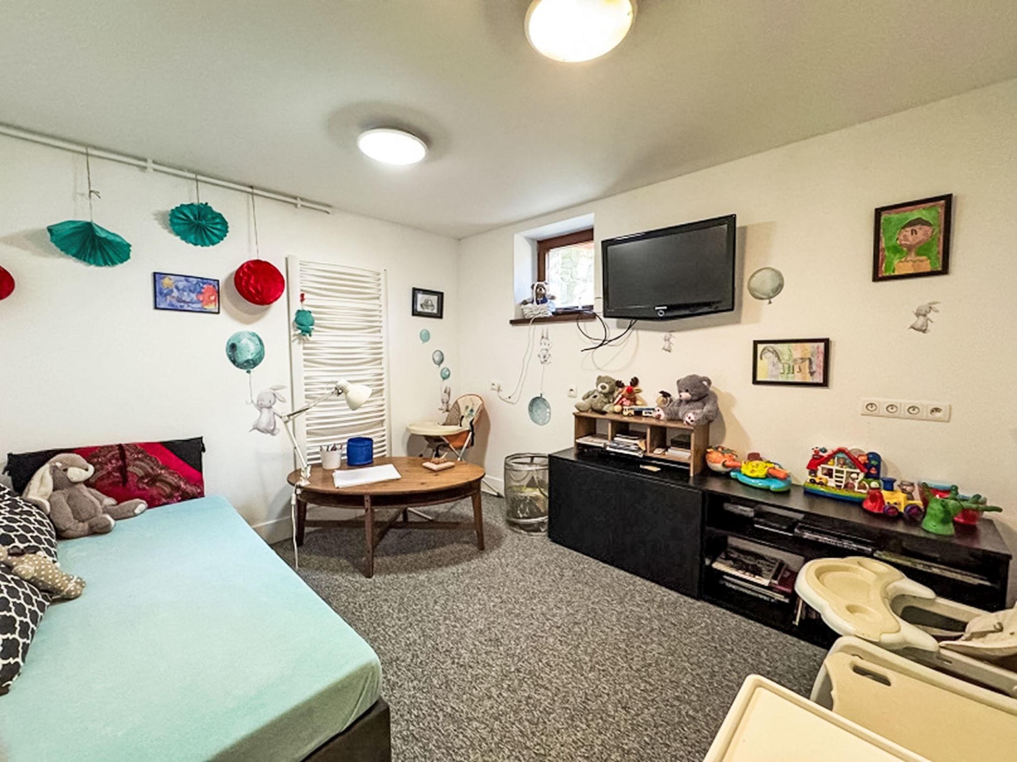 9-room villa 300 m2 on 3 levels. Spacious, luxurious furnishings: open large living/dining room with 2 sofabeds, open-hearth fireplace and satellite TV. Exit to the terrace. Large, open kitchen (oven, dishwasher, 4 ceramic glass hob hotplates, microwave) with dining table. Shower/WC. Heating, gas heating, boiler (250 litres). On the lower ground floor: playroom with hi-fi system and DVD. Upper floor: living/dining room with open-hearth fireplace. Exit to the terrace. 1 room with 1 french bed. Sep. WC. 2nd upper floor: 1 room with 2 beds. 1 room with 1 french bed. 1 room with 2 beds and 1 french bed. 1 room with 1 bed and 1 french bed. 1 room with 1 french bed. Shower/WC. Balcony 8 m2, terrace 18 m2. Terrace furniture, deck chairs (6). Beautiful view of the mountains and the countryside. Facilities: washing machine. Internet (WiFi). Parking (4 cars), garage at the house. Please note: maximum 3 pets/ dogs allowed. Smoke alarm. Lower ground floor: SPA zone (hydromassage bathtub, sauna, shower, WC), children's playroom, ski room, laundry room.