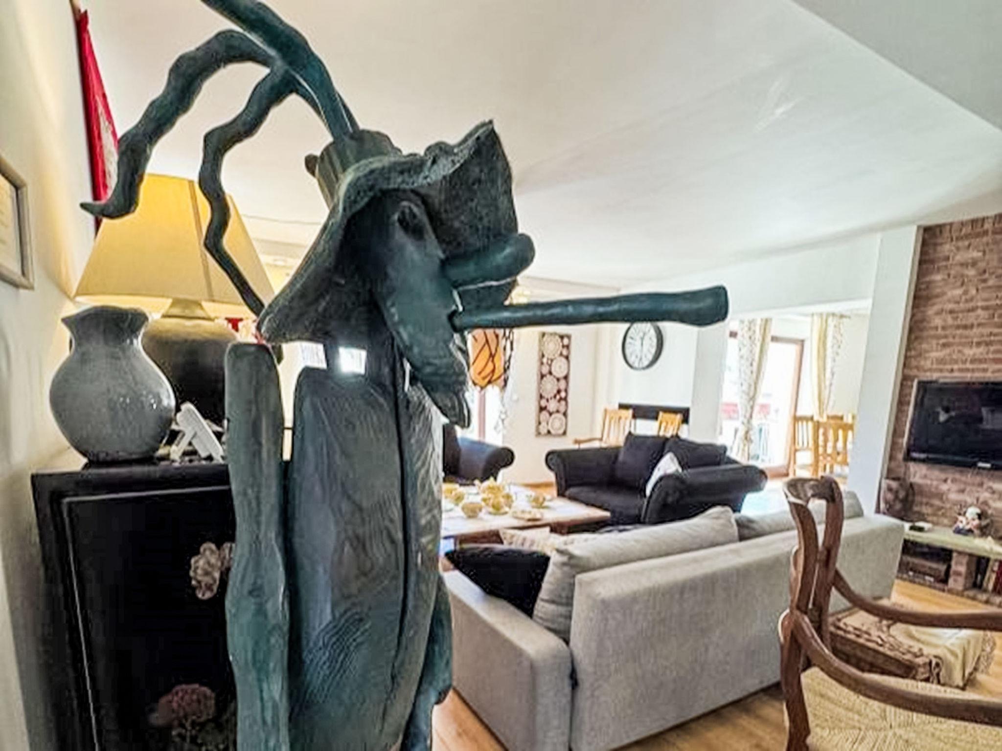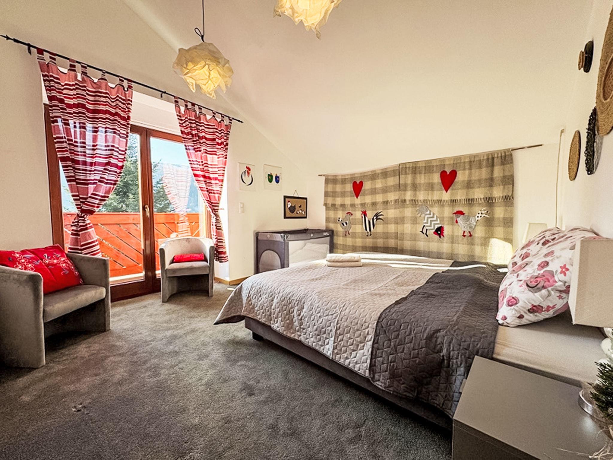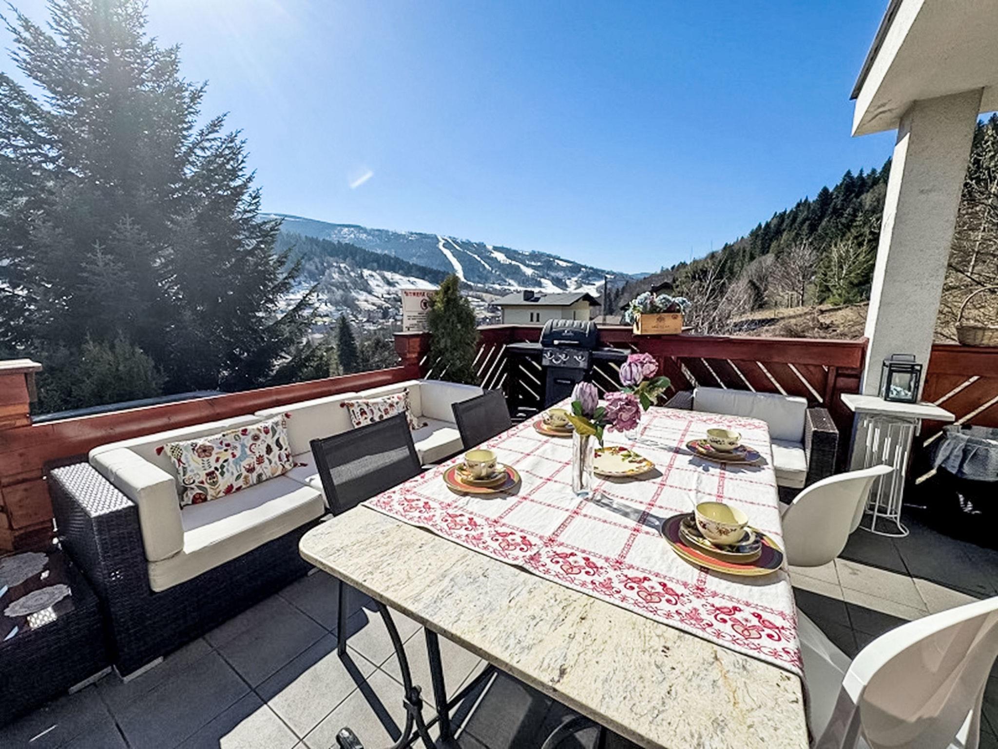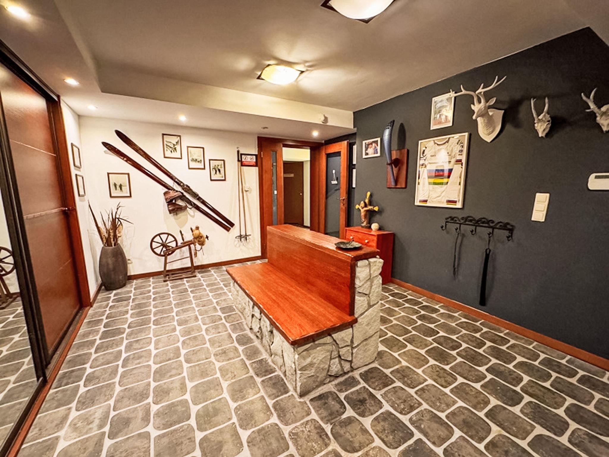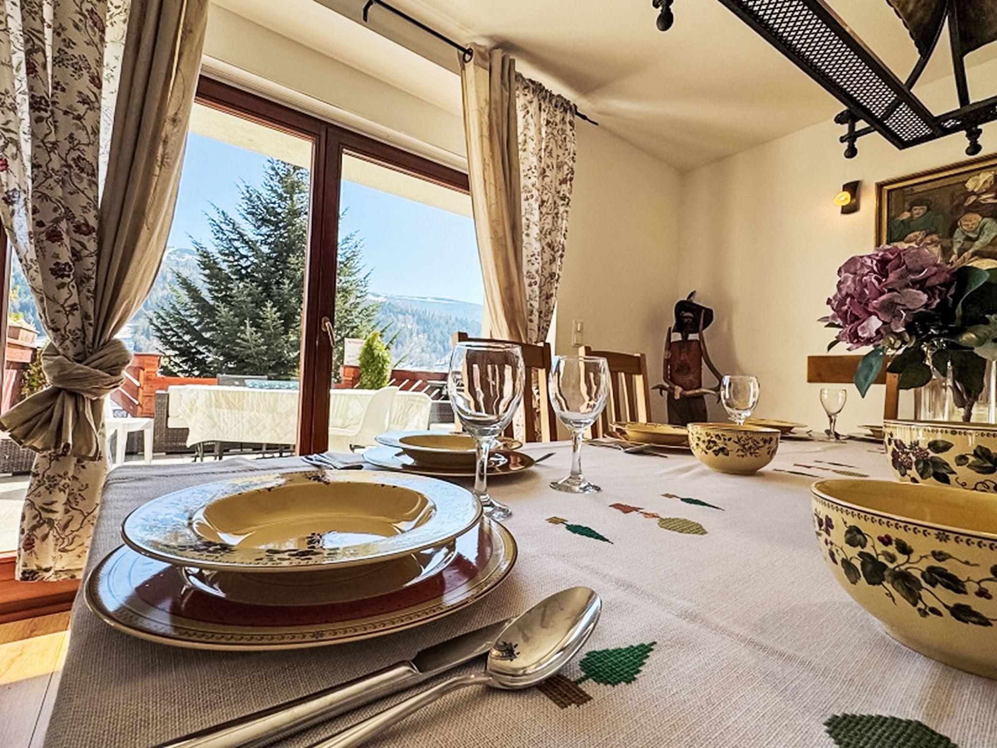 9-room villa 300 m2 on 3 levels. Spacious, luxurious furnishings: open large living/dining room with 2 sofabeds, open-hearth fireplace and satellite TV. Exit to the terrace. Large, open kitchen (oven, dishwasher, 4 ceramic glass hob hotplates, microwave) with dining table. Shower/WC. Heating, gas heating, boiler (250 litres). On the lower ground floor: playroom with hi-fi system and DVD. Upper floor: living/dining room with open-hearth fireplace. Exit to the terrace. 1 room with 1 french bed. Sep. WC. 2nd upper floor: 1 room with 2 beds. 1 room with 1 french bed. 1 room with 2 beds and 1 french bed. 1 room with 1 bed and 1 french bed. 1 room with 1 french bed. Shower/WC. Balcony 8 m2, terrace 18 m2. Terrace furniture, deck chairs (6). Beautiful view of the mountains and the countryside. Facilities: washing machine. Internet (WiFi). Parking (4 cars), garage at the house. Please note: maximum 3 pets/ dogs allowed. Smoke alarm. Lower ground floor: SPA zone (hydromassage bathtub, sauna, shower, WC), children's playroom, ski room, laundry room.