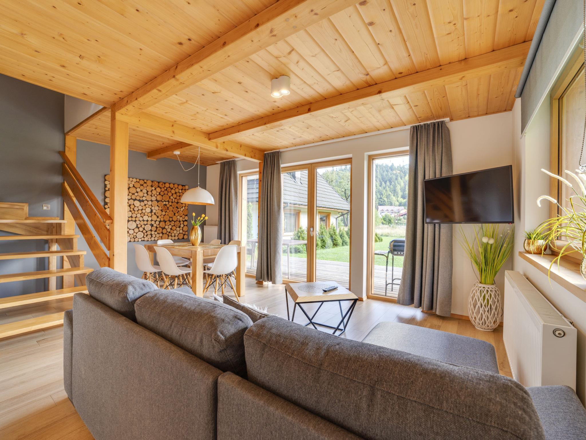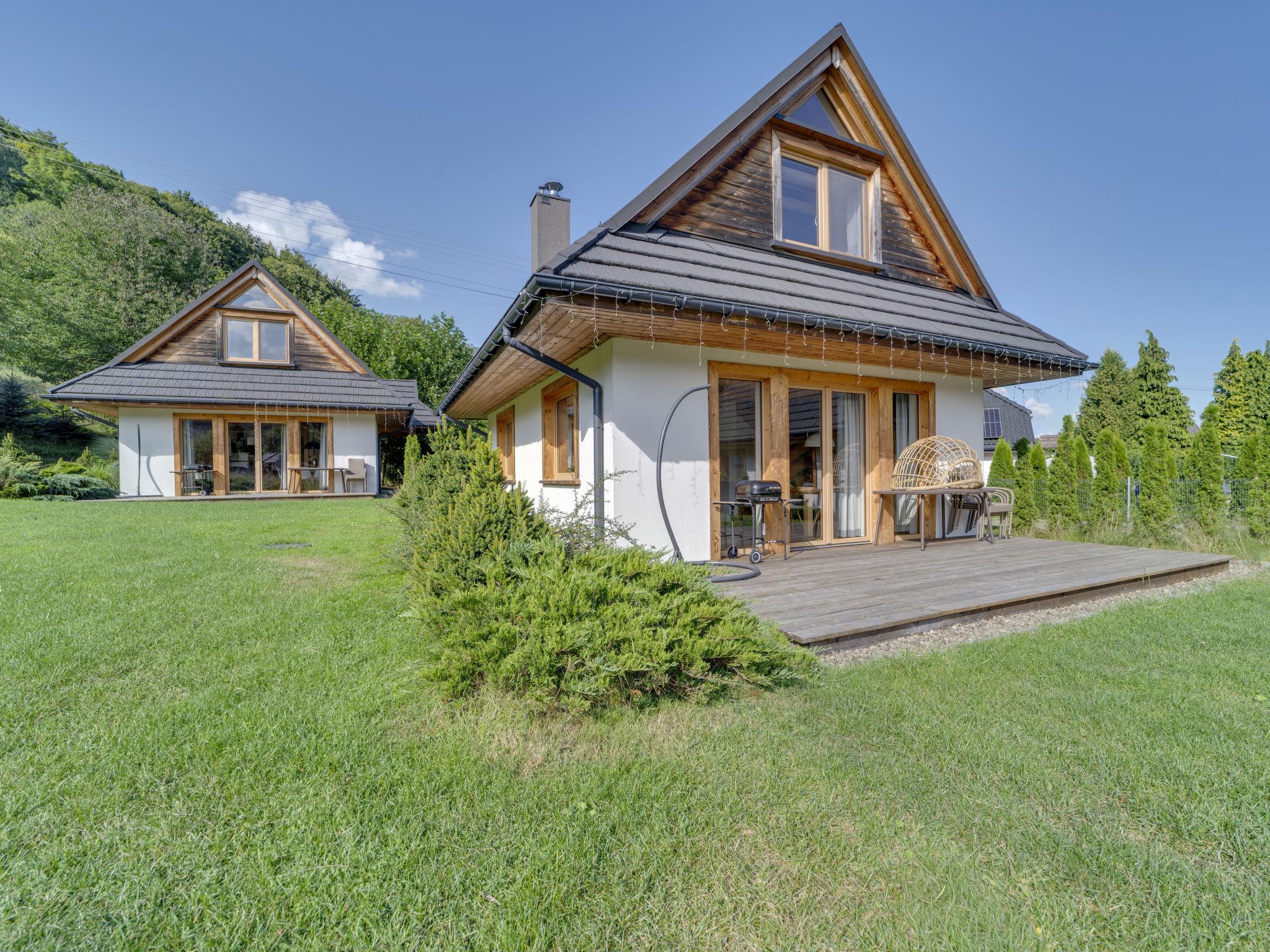 Modern, beautiful, comfortable holiday village "Chaty Pod Beskidkiem", built in 2017. In a quiet, sunny position, 800 m from the skiing area, in the countryside. For shared use: property, garden. Barbecue. In the house: internet access, central heating system. Motor access (via unmade road). Parking at the house. Grocery, supermarket 500 m, restaurant 400 m, bus stop 500 m. Cable car, ski lift, ski school 800 m. Please note: the photograph shows a typical example. Additional accommodations can be booked.