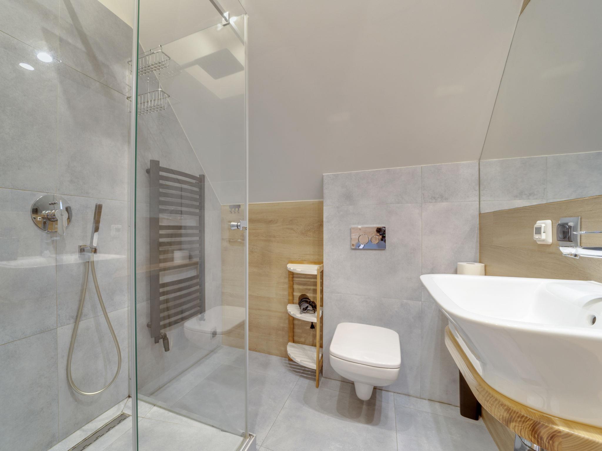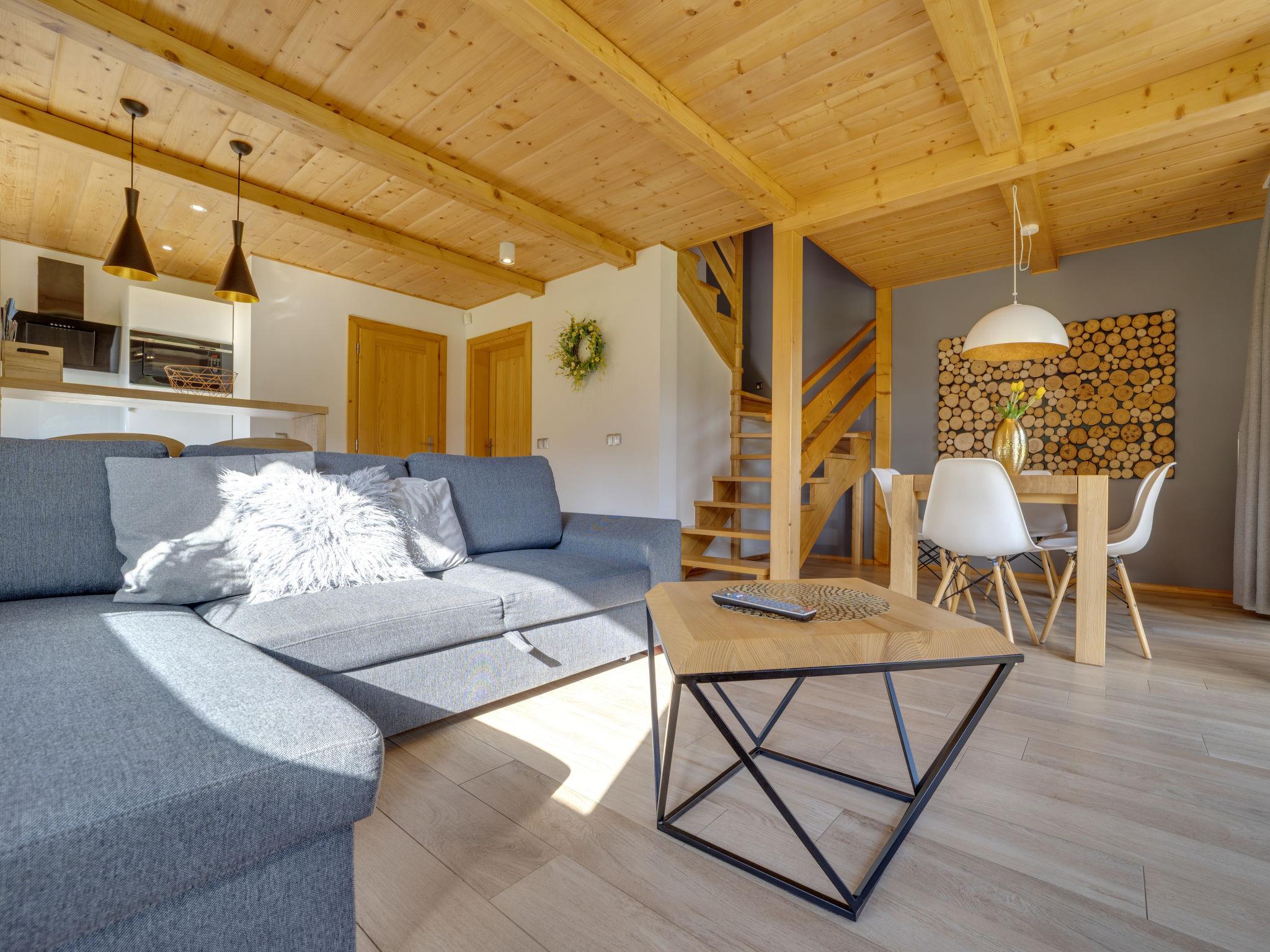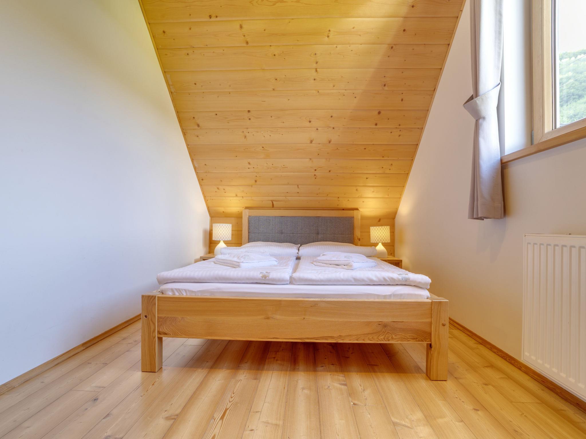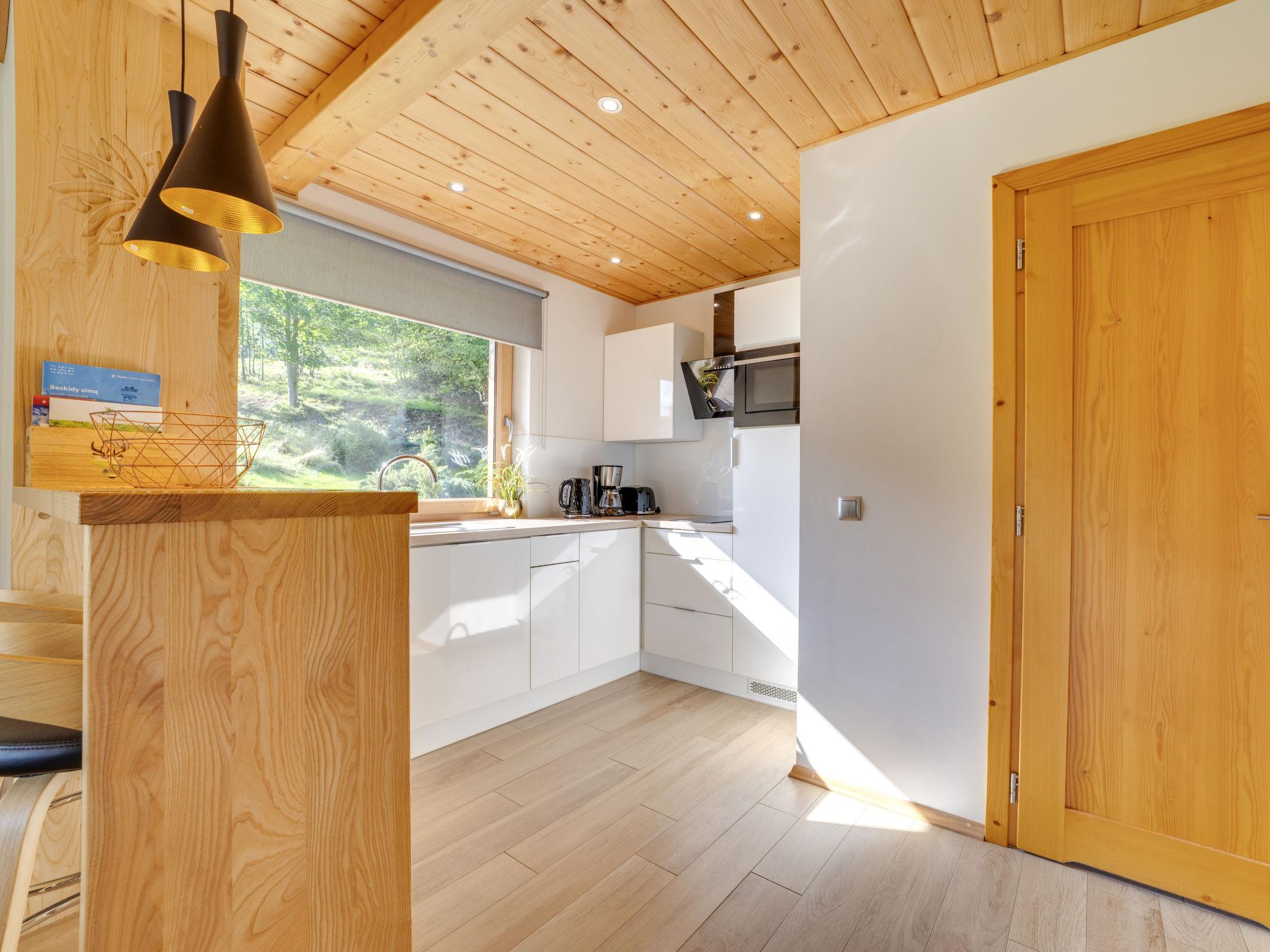 3-room chalet 70 m2 on 2 levels. Partly with sloping ceilings: lounge with 1 double sofabed, dining table and TV. Exit to the terrace. Open kitchen (dishwasher, 2 ceramic glass hob hotplates, microwave, freezer). Sep. WC. Upper floor: 1 room with 1 bed (80 cm, length 200 cm), 1 double bed (140 cm, length 200 cm). 1 room with 1 bed (80 cm, length 200 cm), 1 double bed (140 cm, length 200 cm). Shower/WC. Gas heating. Terrace 18 m2. Terrace furniture, deck chairs (3). Beautiful view of the countryside. Facilities: hair dryer. Internet (WiFi). Please note: smoke alarm. House for maximum 6 adults and 2 children.