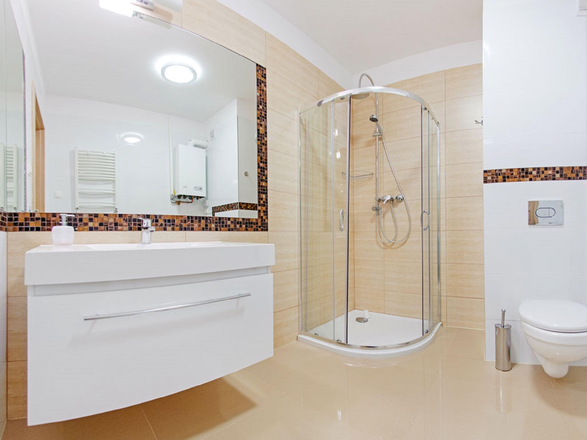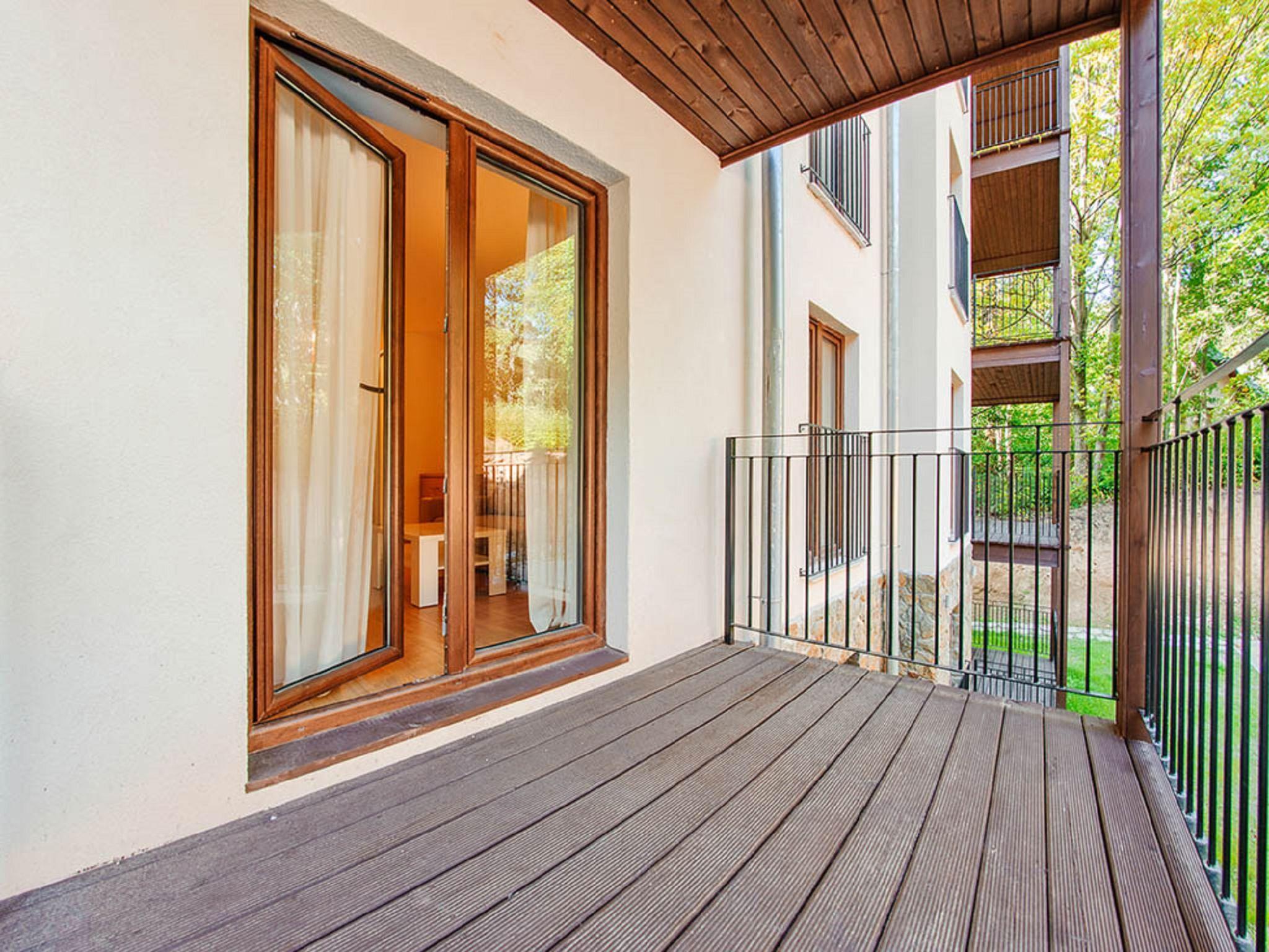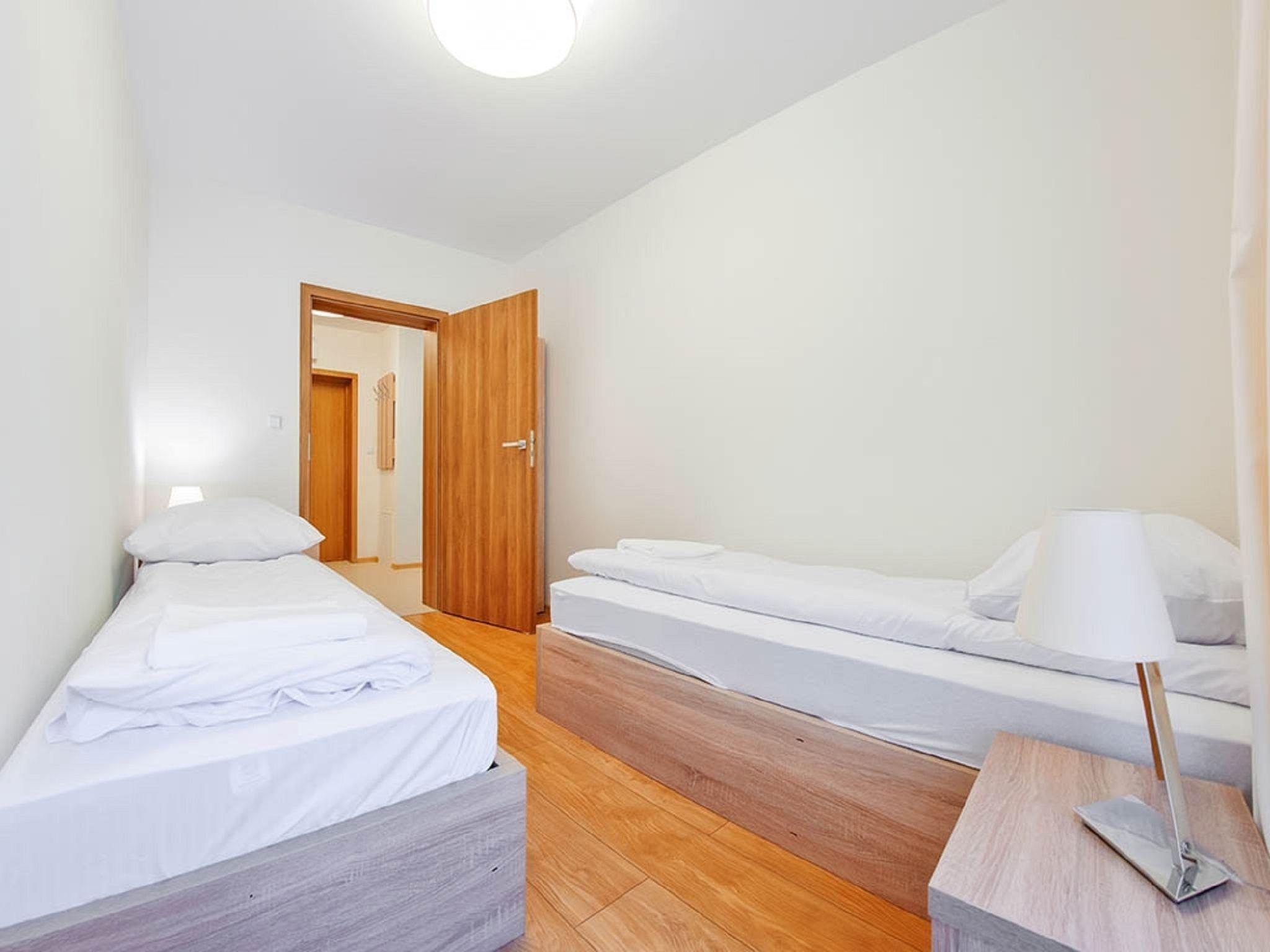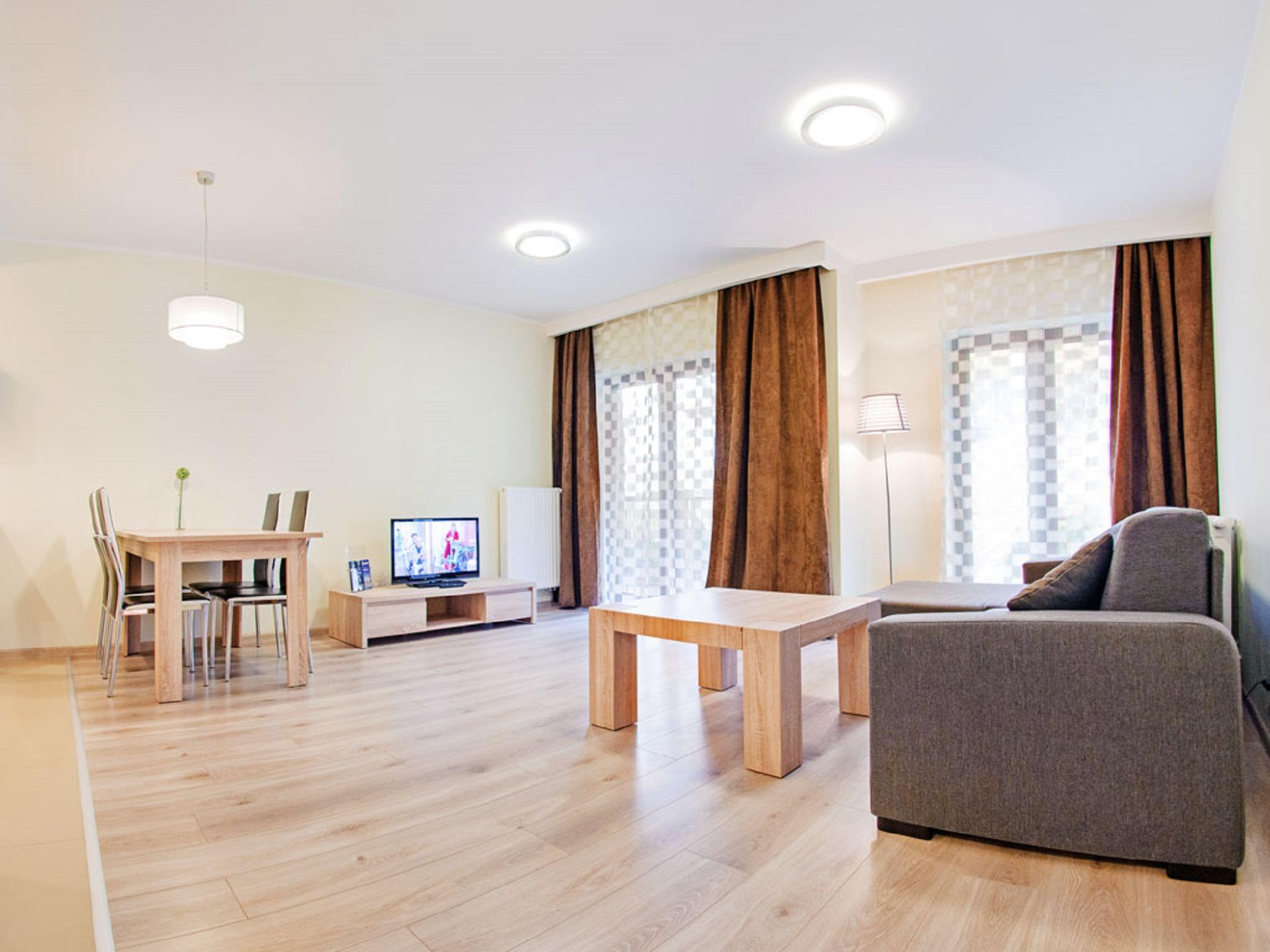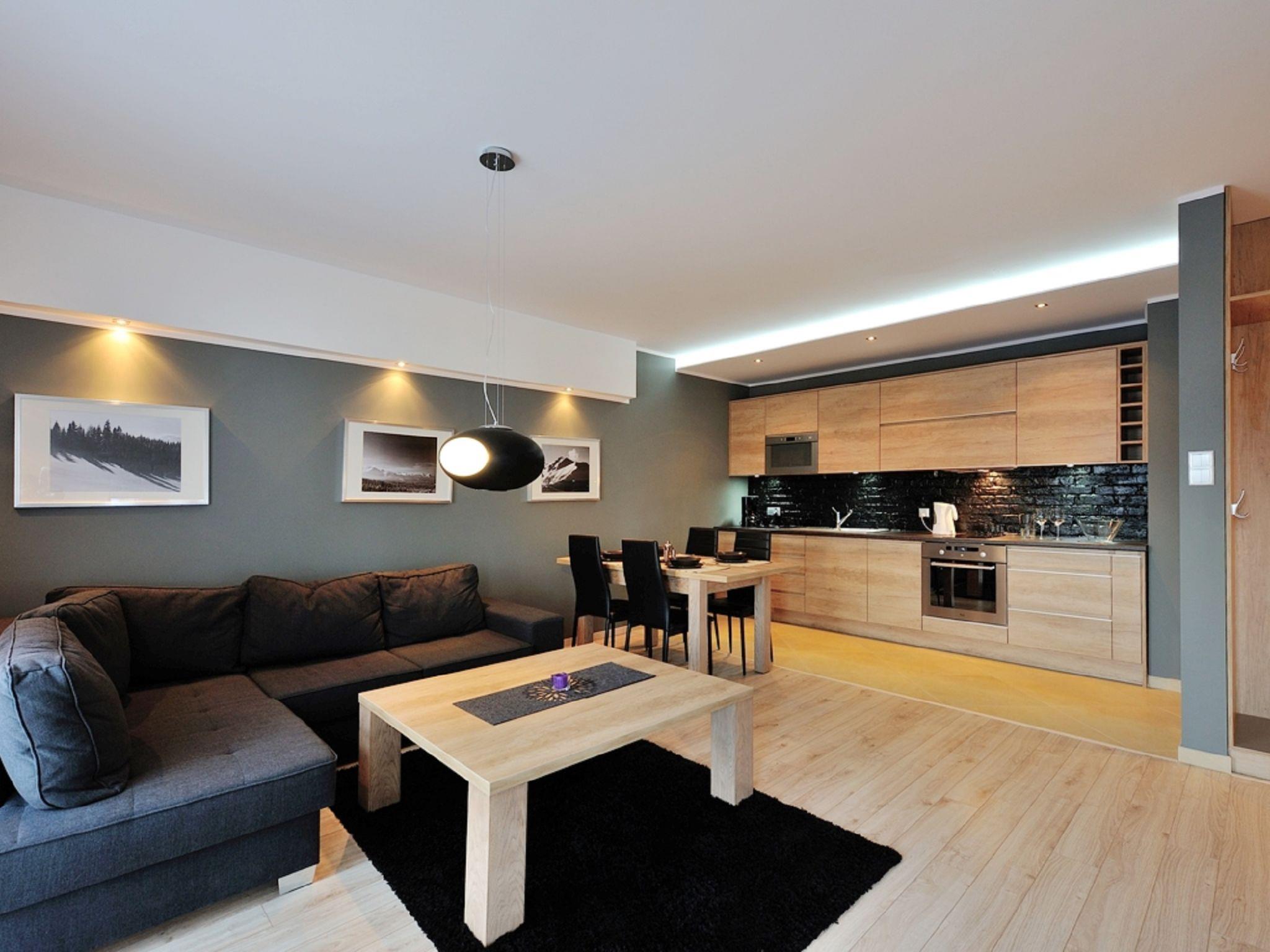 Szklarska Poreba: Modern, cosy apartment block "Szklarska Poreba Resort". In a quiet, sunny, elevated position. In the house: central heating system. Parking at the house on the premises. Bus stop 3 km, railway station 2 km. Nearby attractions: Park Dinozaurów 1.2 km, Muzeum Mineralogiczne 2.8 km. Well-known ski regions can easily be reached: Osrodek sportów zimowych 2 km, Wyciag narciarski Hala Szrenicka 2.8 km. Please note: the photograph shows a typical example. Additional accommodations can be booked. The apartment can be located on the ground floor, first floor, or second floor. Children under 3 years of age are allowed in addition to the maximum occupancy.