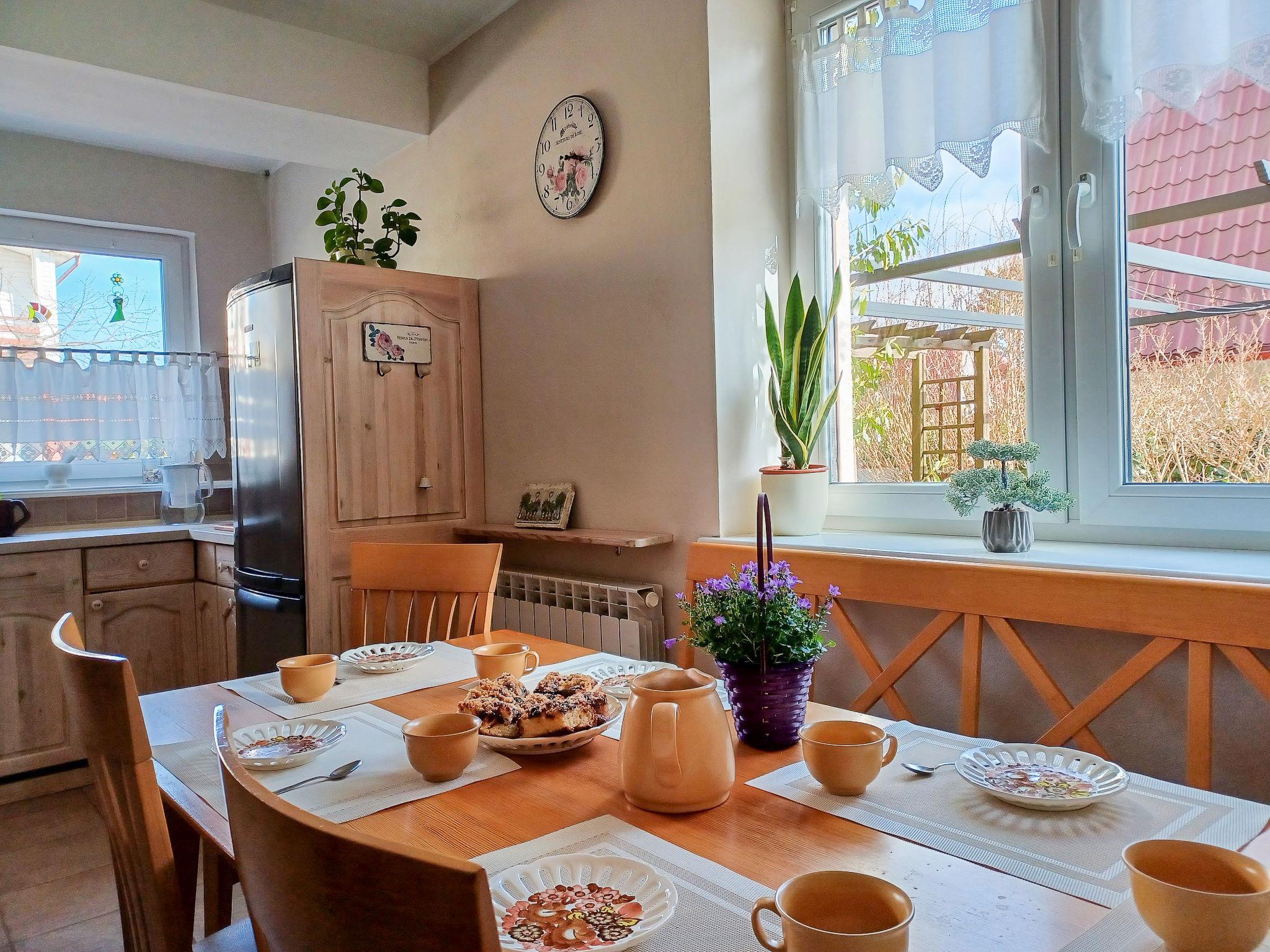 Villa "Bursztynowa", built in 1990. 1 km from the centre, in a quiet position residential area (villas), 400 m from the edge of the forest, 1.1 km from the sea, 1.1 km from the beach. For shared use: property (fenced). Private: garden 250 m2. Terrace, garden furniture, barbecue. In the house: washing machine. Parking (for 2 cars) at the house. Shop 400 m, grocery 150 m, supermarket 400 m, restaurant 200 m, bus stop 150 m, railway station 400 m, sandy beach 1.1 km. Tennis 400 m. Nearby attractions: boiska do pilki 400 m. Please note: the owner lives in the same residence. The villa is away from the noisy part of the city and creates comfortable conditions for relaxation in the health seaside. The object certified by the Local Tourist Organization "Ustka and Ziemia Slupska" has a maximum quality rating - 5 suns. Additional information: the owner lives in a separate part of the house with a separate entrance.