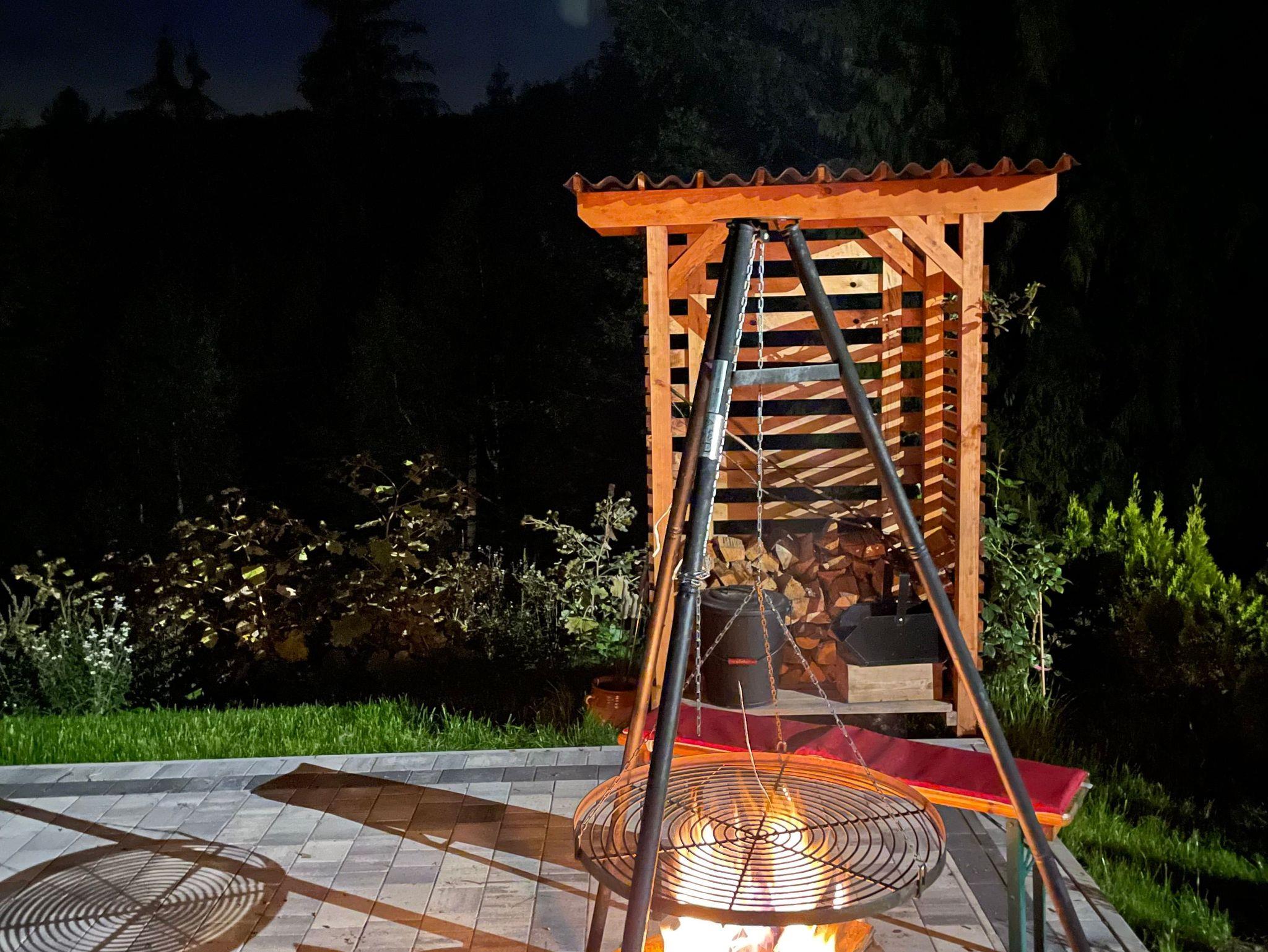 Im Außenbereich befindet sich eine Sauna sowie ein Spielplatz und noch eine Feuerstelle
