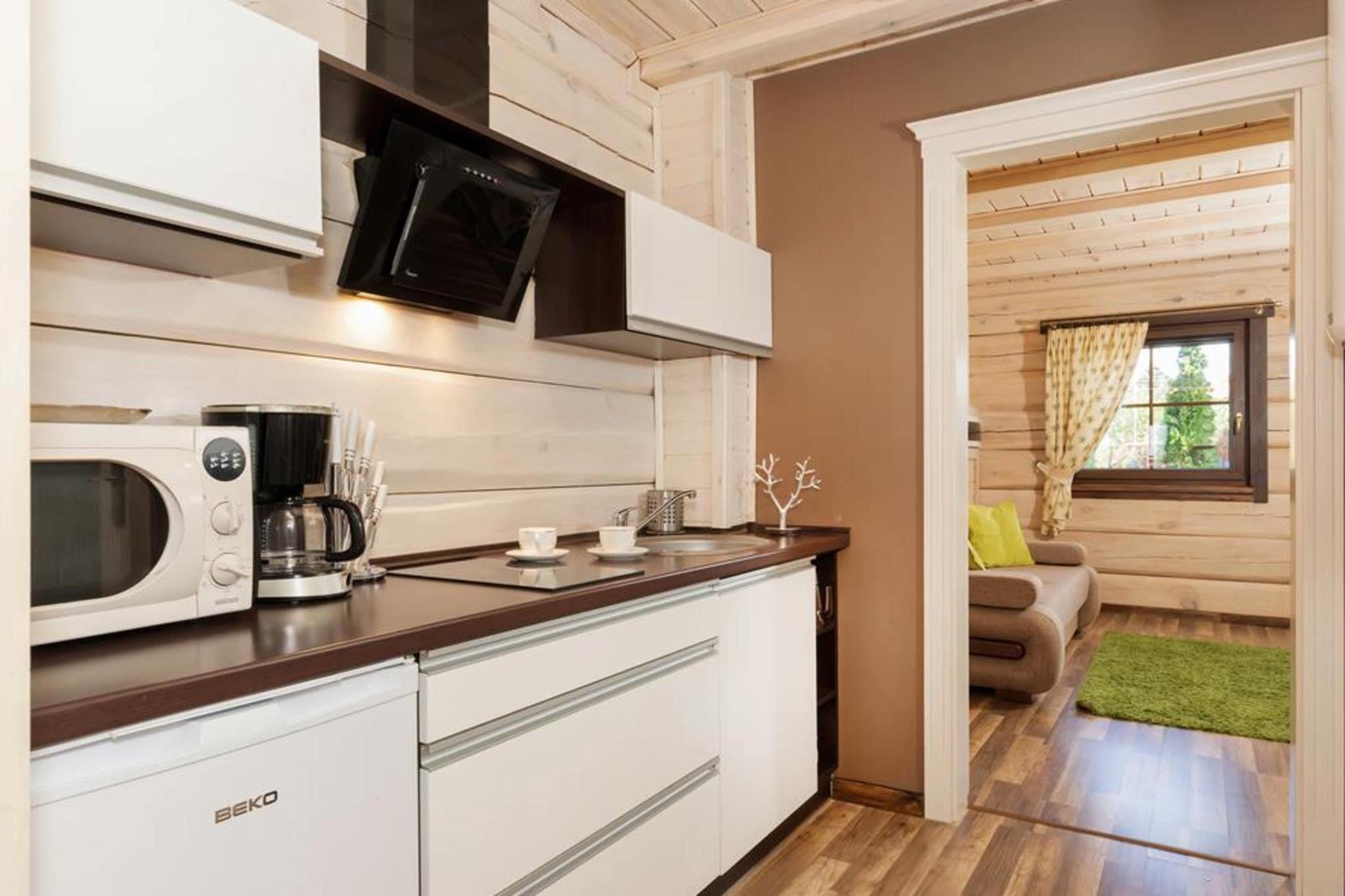 The comfortable recreation complex is located on a fenced property in a quiet part of the resort, 500 m from the beach. The city center is within a few steps. Single-story terraced houses. Guests will find a spacious living room with TV and a large table. A well-equipped kitchen is connected to the living room (including a coffee machine, dishwasher, microwave). Bathroom with shower (there is also a washing machine). There are 2 comfortable, separate bedrooms at guests' disposal. The house has a covered terrace with lounge furniture and barbecue facilities. Deckchairs are provided. The cottages have heating. Wireless internet is available. The well-kept property has a safe parking lot, a garden gazebo, and a playground. The center offers tickets for the nearby Helios swimming pool complex (300 m from the center; indoor and outdoor swimming pools, water slides, saunas - PLN 30/hour for 1 person). The price of the stay includes: bed linen, towels, water consumption, firewood (outside the holiday season), baby cot, high chair, internet, parking. Ustronie Morskie is located in Western Pomerania, 10 km east of Kolobrzeg. A sandy, clean beach, a walking pier, a seaside atmosphere, and a picturesque cliff are the advantages of this resort. The international bicycle route R-10 runs through Ustronie Morskie, along which you can easily and pleasantly cycle to Kolobrzeg (a city with many monuments, a lighthouse, a long walking pier, a promenade). On the way you pass Sianozety - a small summer resort. Driving in the opposite direction (east) you can visit Gaski (lighthouse), Sarbinowo and even Mielno located on the spit between the Baltic Sea and Lake Jamno.