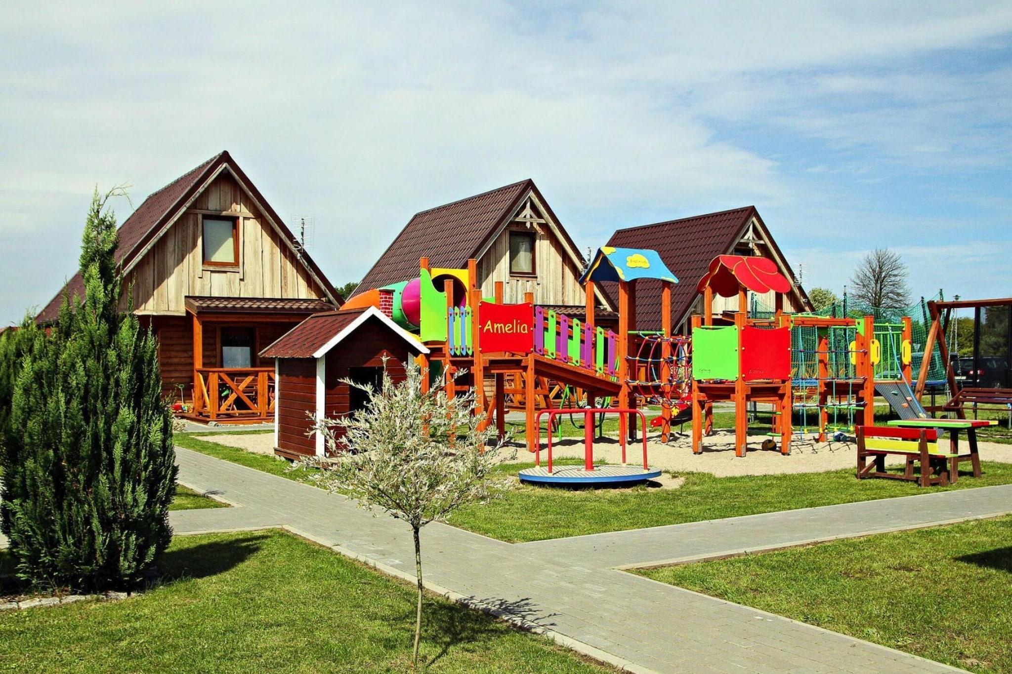 Family holiday resort in a quiet environment, 500 m from the beach. The resort centre with many restaurants, bars and various shops is within a few steps. On the fenced, well-kept property there are holiday cottages and attractive infrastructure conducive to a successful holiday. A comfortable, detached two-story house can accommodate 5 people. On the ground floor there is a living room with TV, a table and a double sofa bed, a kitchen and a bathroom with a shower. On the first floor there are 2 separate bedrooms. Each house has a comfortable terrace with a set of lounge furniture. There is barbecue equipment. The house does not have heating. Wireless Internet is available. On the fenced area of ??the resort there is a recreational shelter with a table tennis table and table football. There is a small sports field and a lot of grassy area that is an ideal setting for various children's games and activities. The youngest will enjoy the playground. There is a safe parking lot. The price of your stay includes: bed linen, towels, water consumption, final cleaning, internet, parking, cot and high chair (upon prior notification). Ustronie Morskie is located in Western Pomerania, 10 km east of Kolobrzeg. A sandy, clean beach, a walking pier, seaside climate, a picturesque cliff are the advantages of this resort. Ustronie Morskie is a well-known and popular holiday resort on the Polish coast - many cultural and sports events are organized here. Active people, in addition to sunbathing and sea bathing, can take advantage of hiking and cycling trips, horse riding and sightseeing flights. The water in this region is among the cleanest on the Polish Baltic coast. The local Aquapark Helios invites lovers of swimming in the pool (indoor swimming pool, outdoor swimming pool, hydromassage, whirlpool).