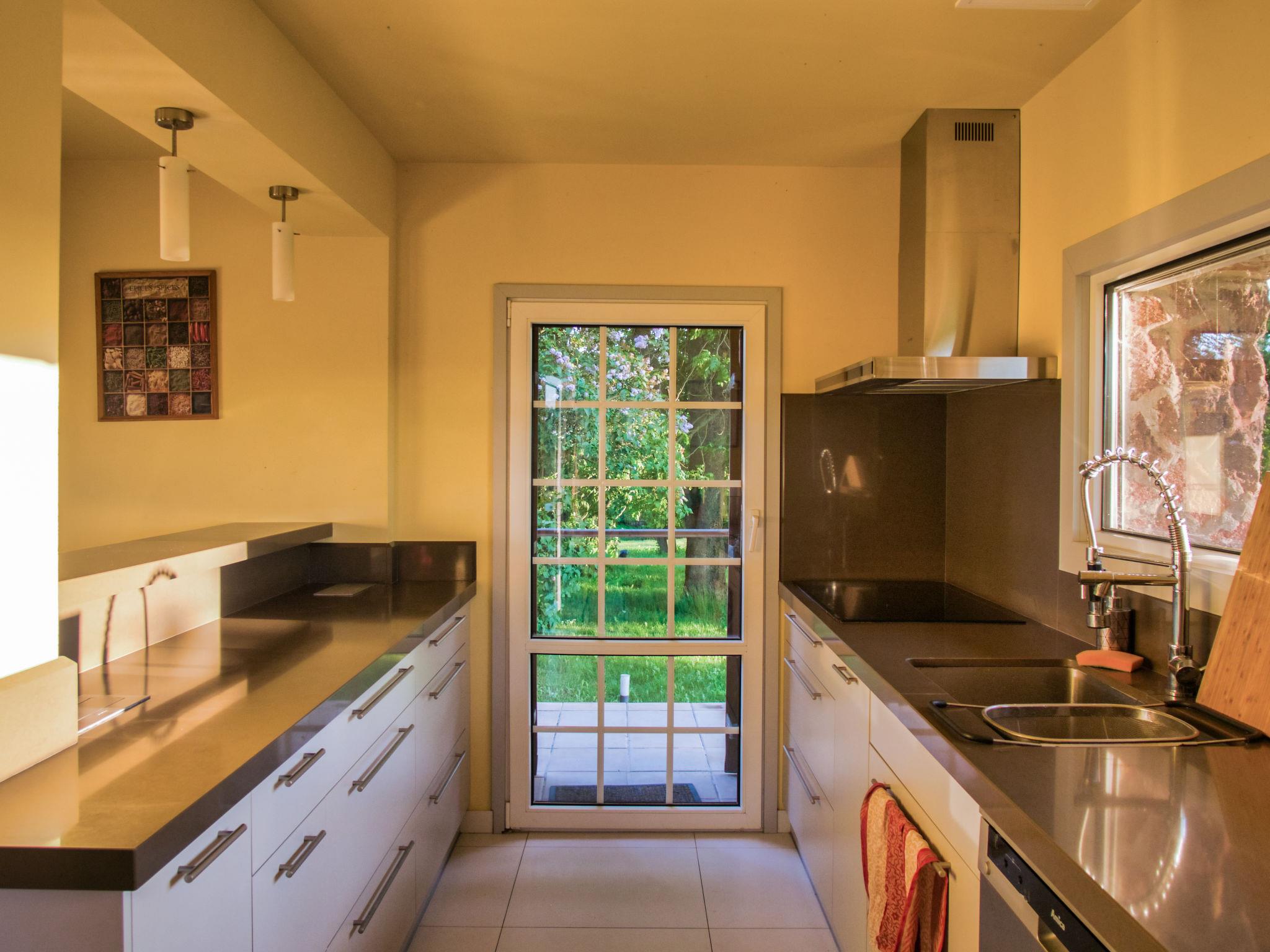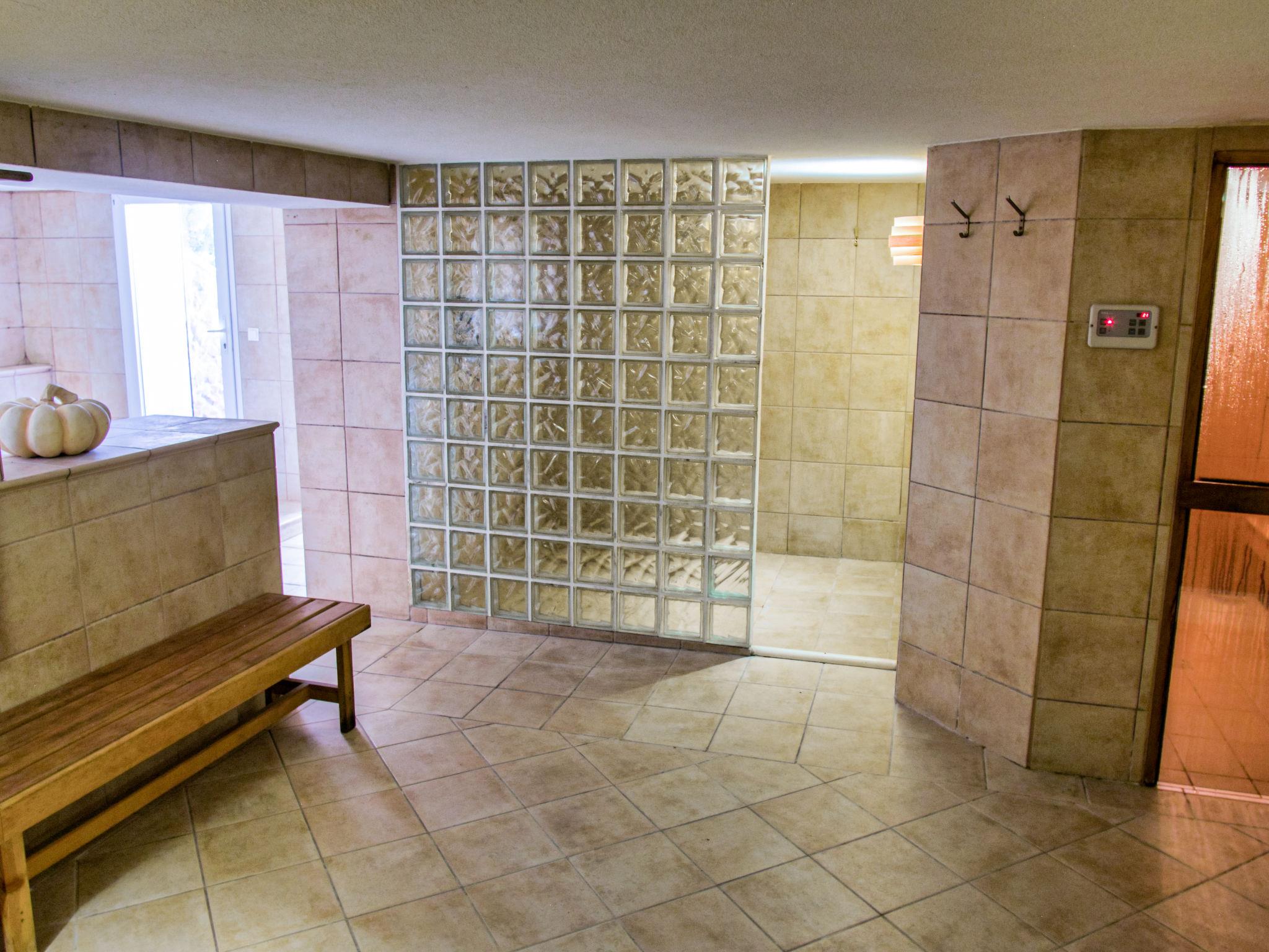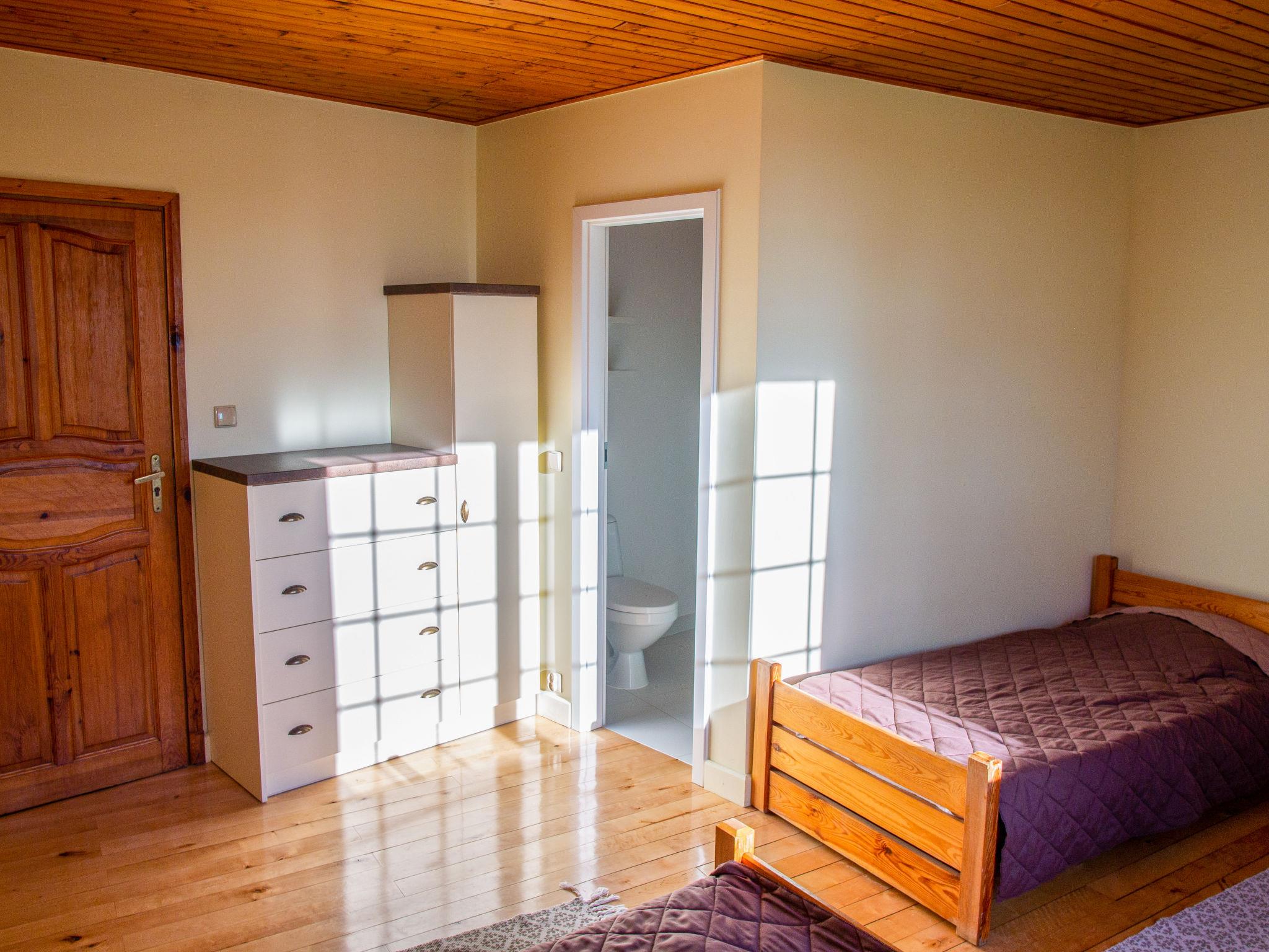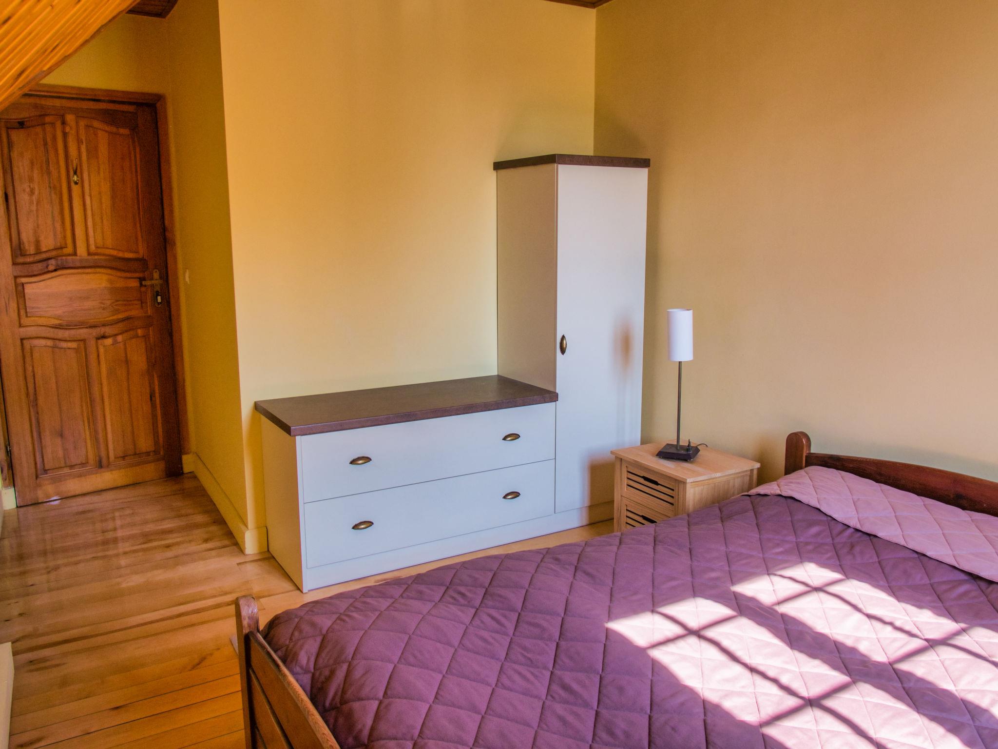 8-room house 650 m2 on 4 levels. Open large living/dining room 200 m2 with open-hearth fireplace and satellite TV (flat screen), video, radio, CD-player and DVD. Exit to the garden, to the terrace, to the swimming pool. 1 room 16 m2 with 2 beds (90 cm), 1 double bed (140 cm). Dining room. Open kitchen (5 hot plates, oven, dishwasher, microwave, freezer, grill, electric coffee machine). Shower/WC. On the lower ground floor: large playroom. Shower/WC. Upper floor: 1 room 30 m2 with 1 double bed (160 cm), bath/shower/bidet/WC. 1 room 10 m2 with 1 double bed (140 cm). 1 room 10 m2 with 1 double bed (140 cm). 1 room 25 m2 with 2 beds (90 cm), 1 double bed (140 cm), shower/WC. Shower/WC. 2nd upper floor: playroom. Oil heating. Terrace 60 m2. Terrace furniture. Very beautiful view of the lake and the valley. Facilities: washing machine. Internet (WiFi, free). Parking at the house. Maximum 2 pets/ dogs allowed. The ground floor bathroom has wheelchair access.