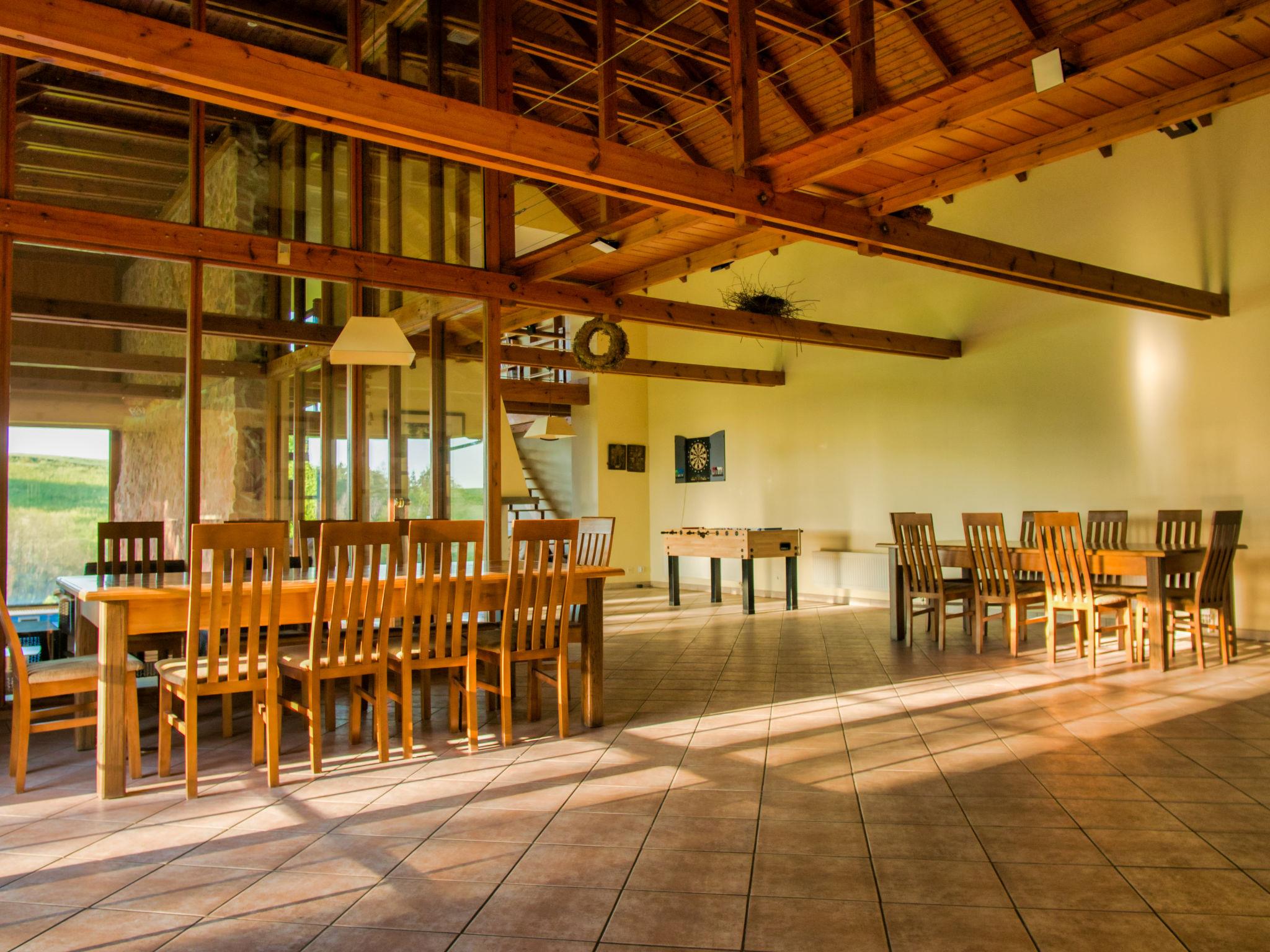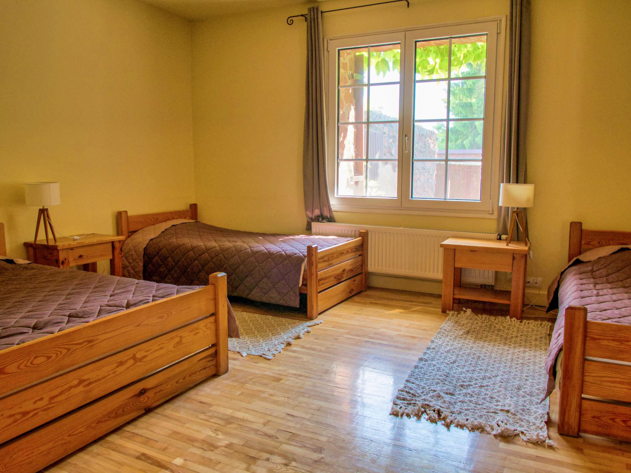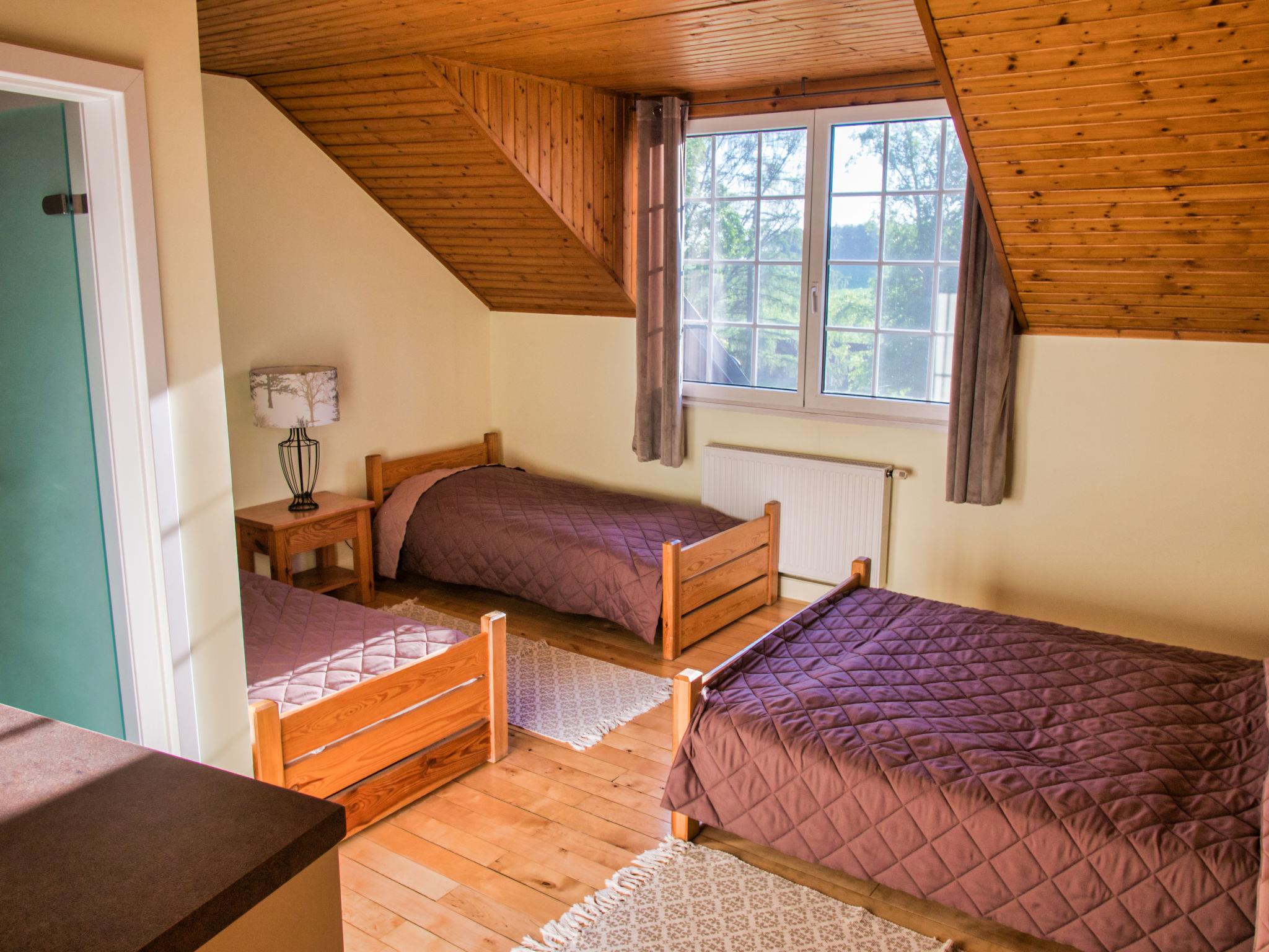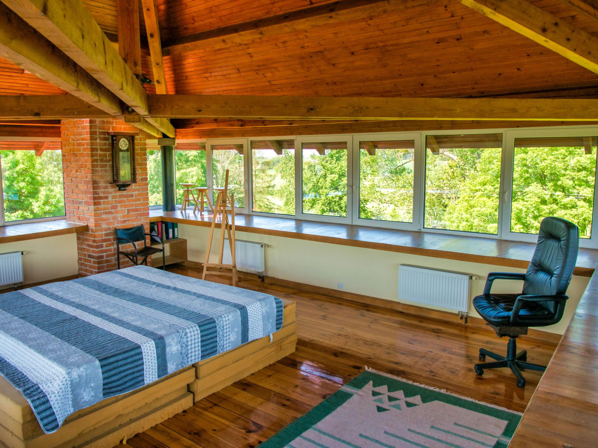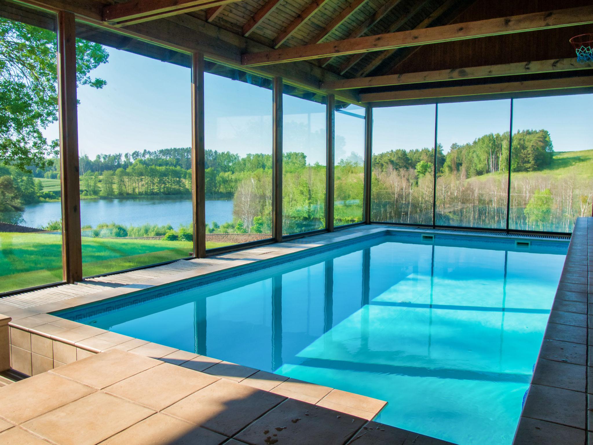 Single-family house "Wielkie Lezno", surrounded by trees, meadows and fields. Outside the resort, in a quiet, elevated position, 50 m from the lake, 400 m from the beach, direct access to the beach. For shared use: basketball, volleyball, badminton. Private: property 40 ha, garden 5'000 m2 (fenced), orchard, indoor pool heated (8 x 4 m, depth 135 cm). Terrace (60 m2), garden furniture, barbecue, fireplace. In the house: lounge, sauna, steam room, table tennis, billiard table, table football. Parking at the house. Grocery 1 km, supermarket 13 km, restaurant 13 km, bus stop 1 km, grass beach 400 m, swimming bay. Riding stable 4 km. Please note: car recommended. Located in the Brodnica Lake District , Private lake on the property (1 pier) with the possibility of fishing with your own equipment. The area is rich in wild animals. At guests' disposal (free of charge): darts, chess. On the property, by the lake, there is a wigwam with a smokehouse. NOTE: PLN 1000 deposit. On request: heating the water in the pool from 28 degrees C to 30 degrees C, extra paid on the spot - the service should be ordered when making the reservation. Price list for pool heating: 27/11-29/04 - 1500 PLN / week, 30/04-03/06 - 1250 PLN / week, 04/06-30/06 - 1000 PLN / week, 01/10-25/11 - PLN 1250 / week.