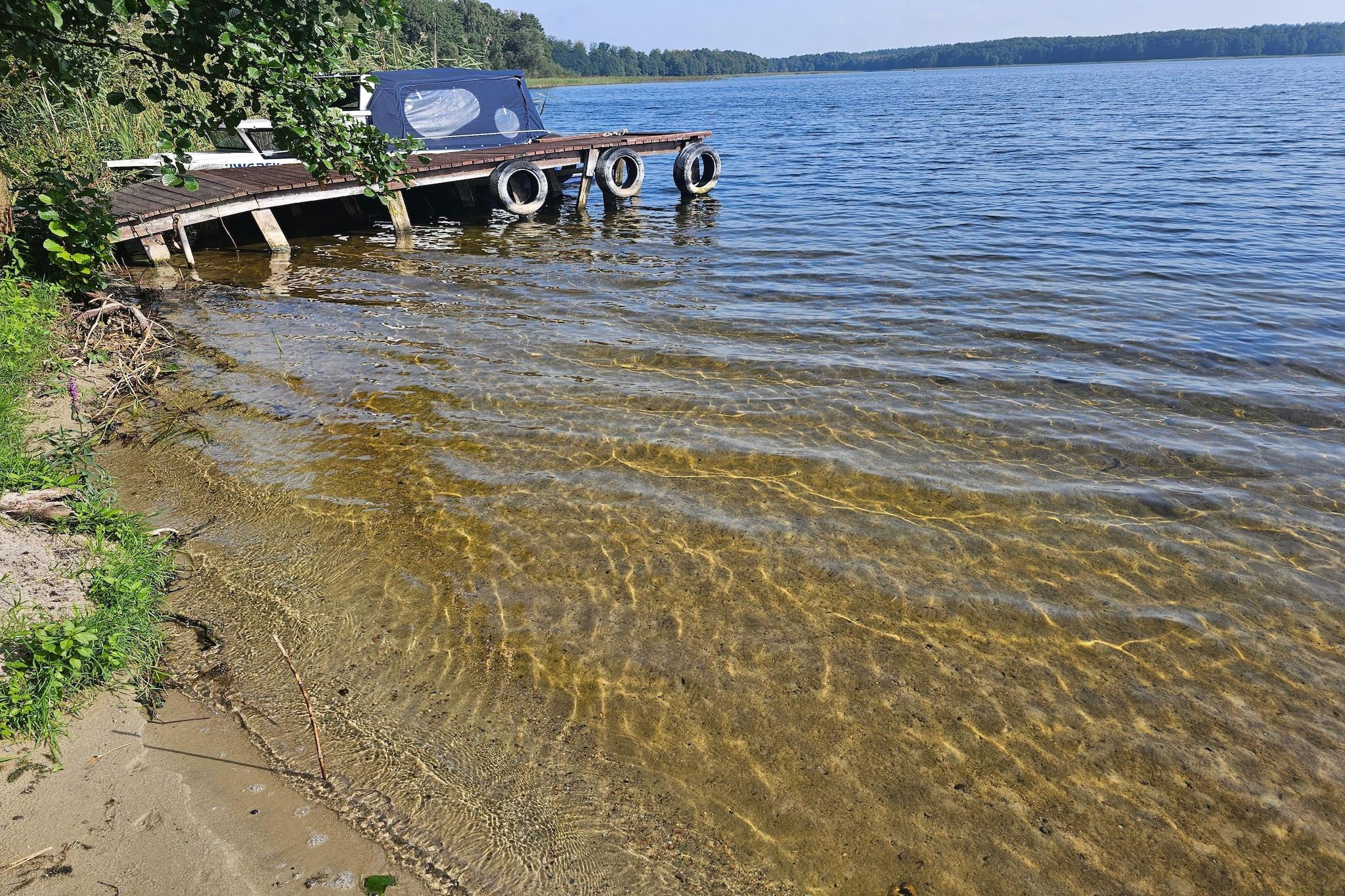 Single-storey holiday home directly on the shore of Lake Wierzchowo (protected landscape area). On the private property there are 2 identical houses, whose guests have at their disposal 1 hectare of fenced area (including 200 m of private beach on the lake). The comfortable holiday home offers a spacious living room (fireplace, satellite TV, sofa bed, large table) with a direct view of the lake. The living room is connected to a well-equipped kitchen. The house has 3 separate double bedrooms, and 2 bathrooms with showers (additionally, one of them has a washing machine). The holiday home has a covered terrace with a set of garden furniture. The view of the lake from the terrace is just as picturesque as from the living room. The house is heated by a fireplace in the living room (this is an efficient source of heating). Wireless internet is available. There is a barbecue and a fishing pier by the private beach, and several rowing boats are moored there. The boats can be used free of charge, but a reservation with the owner is required. For an additional fee, you can rent a boat engine. You can also rent bikes from the owner of the facility. The price of your stay includes: bed linen, towels, electricity and water consumption, firewood, final cleaning, internet, parking. The price also includes the use of a rowing boat, but this requires prior reservation. A high chair is available free of charge upon prior notification. Lake Wierzchowo is a paradise for fishing enthusiasts. The reservoir has an area of ??750 hectares. The water in it is crystal clear, so the lake is also extremely inviting for lovers of bathing. The owner of the facility lives in the center of the village of Grabczyn, approx. 3 km from the lake. On its premises, for an additional fee, you can use the tennis court and table tennis table.