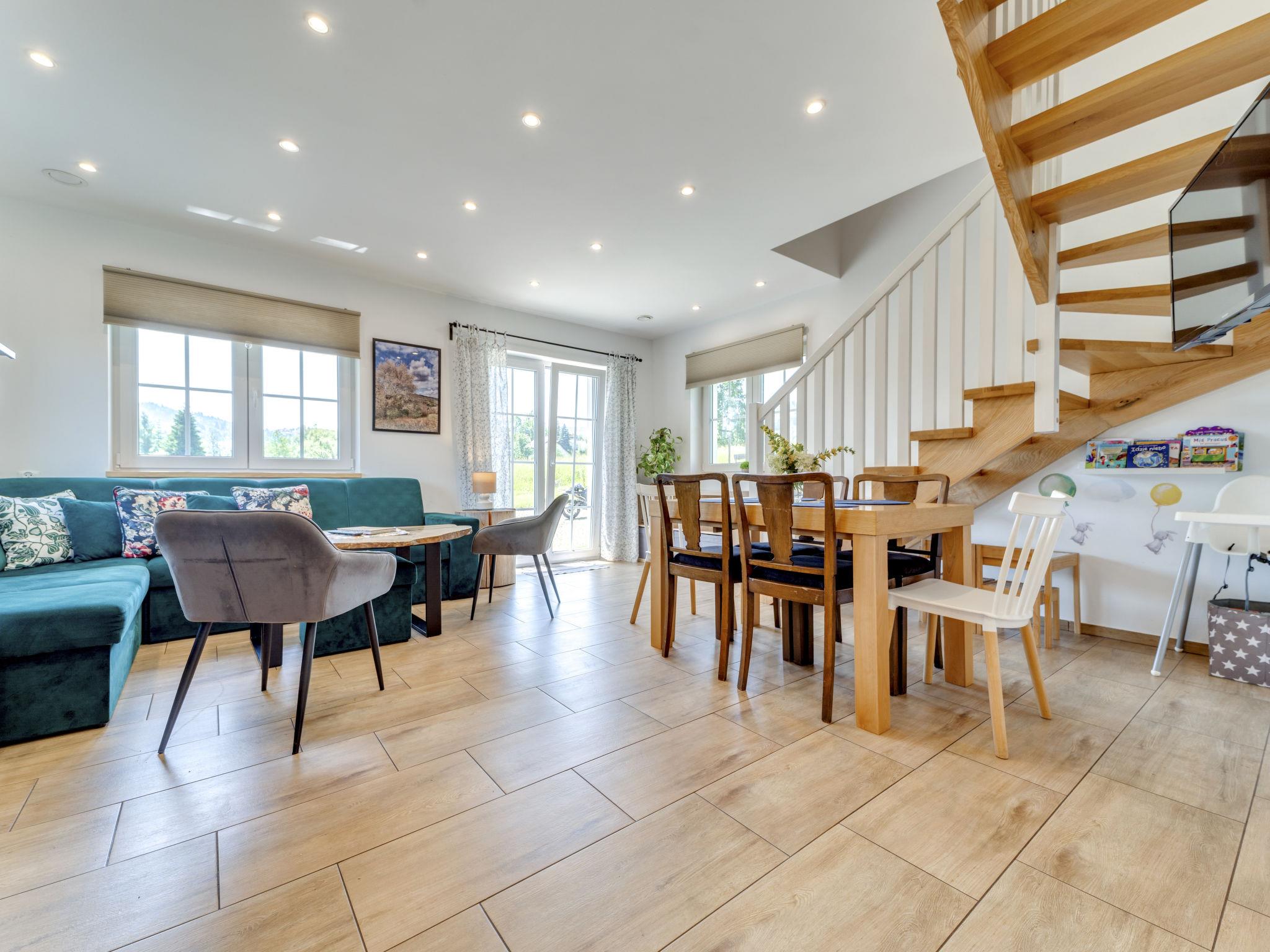 Beautiful, comfortable single-family house "Siglanów", built in 2018. In a quiet, sunny, elevated position, 300 m from the skiing area, in the countryside. Private: garden (fenced). In the house: ski boot dryer. Parking (for 4 cars) at the house on the premises. Grocery 300 m, supermarket 700 m, restaurant 200 m, bus stop 400 m, railway station 2.5 km, indoor swimming pool 2 km. Tennis 1 km, cable car 2 km, ski lift, ski school 300 m, children's playground 2 km. Please note: main road 200 m from the property. There is a play corner for children. Note: PL4346.5.1 and PL4346.5.2 are on the same plot.