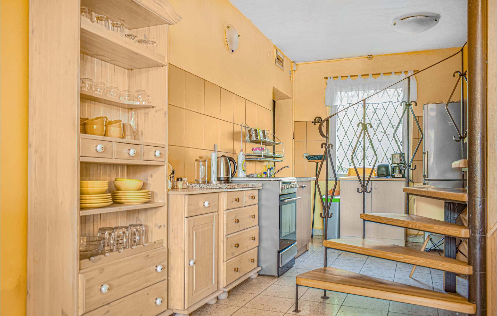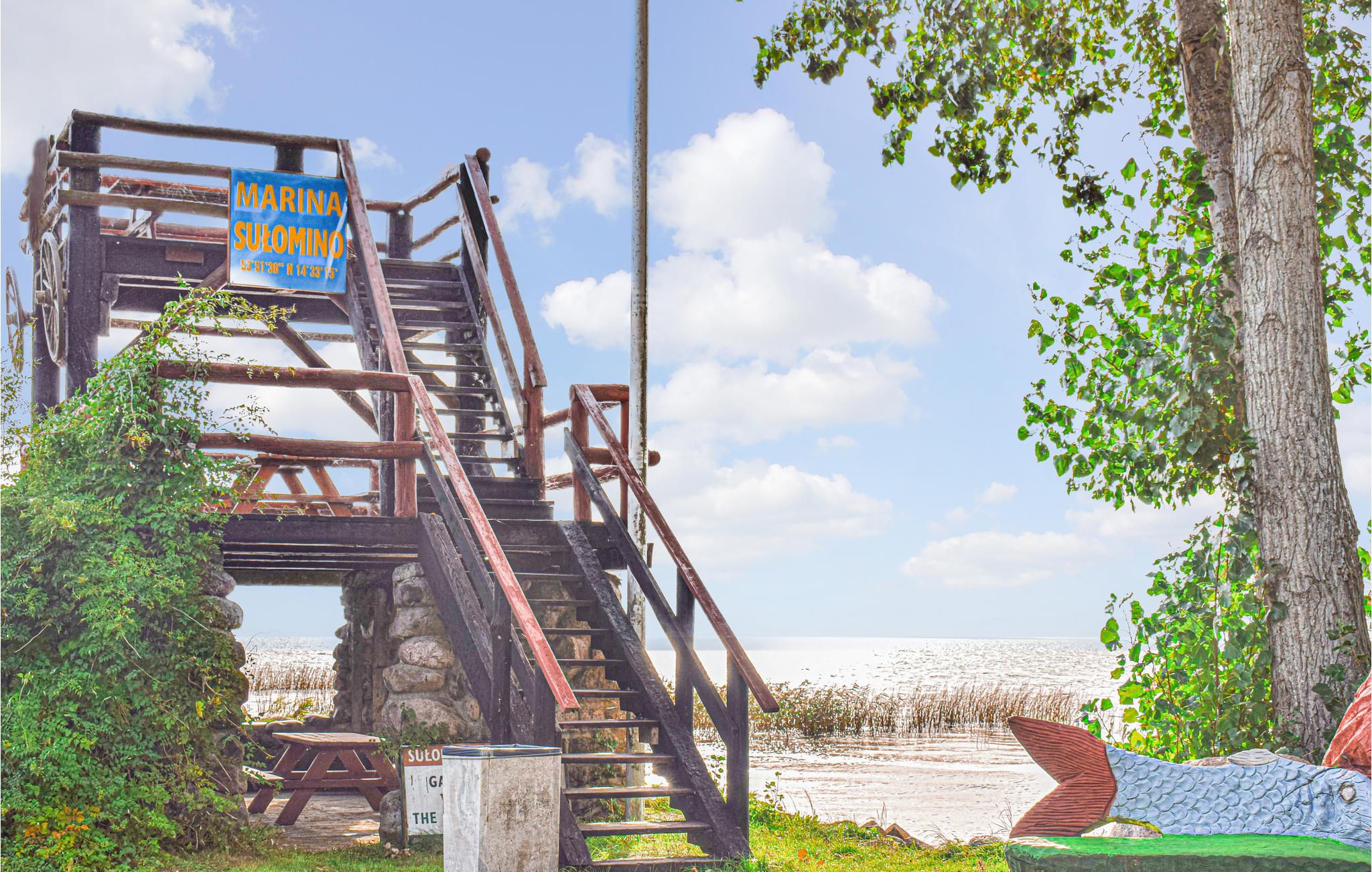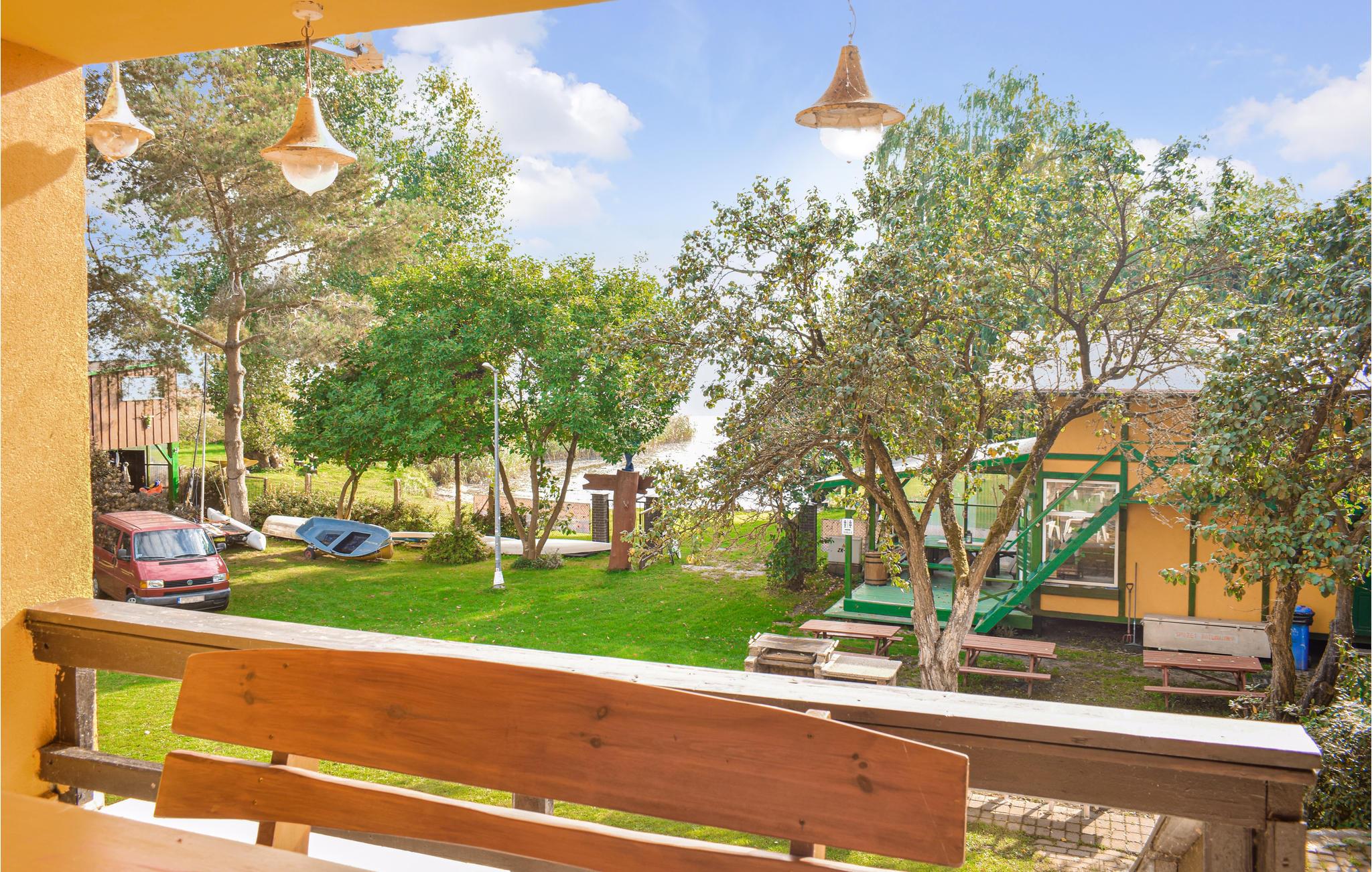 Diese Wohnug ist gemütlich und geschmackvoll eingerichtet, mit einem Schlafzimmer als Durchgangszimmer, sowie im charmanten und rustikalem Design. Die ganze Atmosphäre wirkt sehr naturbelassen mit Holzmöbeln und Sichtbalkendecke. Ihnen steht neben den mit Fliesen ausgelgeten Räumen und geschwungenen Eisenverzierungung am Handlauf, eine offene überdachte Terrassse mit atemberaubendem Blick auf das Wasser. Das Grundstück und die unmittelbare Umgebung sind wunderschön angelegt, mit vielen Plätzen bereitstehend für Sie um sich zu entspannen. Das Areal liegt direkt am Strand des Stettiner Haffs, dort befindet sich ein Aussichtsturm, von dem aus Sie die umliegende Natur bewundern können. Im nahe gelegenen Wolin können Sie das Wikinger- und Slawen-Freilichtmuseum besuchen. Der schöne Sandstrand in Miedzyzdroje ist nur 10 km entfernt. Des weiteren gibt es auch viele weitere Attraktionen, darunter das Museum der Wachsfiguren, der baltische Park der Miniaturen, das Ozeanarium, der Pier, das Planetarium und die berühmte Avenue of Stars. Ein Boot, Kanus und Fahrräder können beim Gastgeber gegen Gebühr gemietet werden.