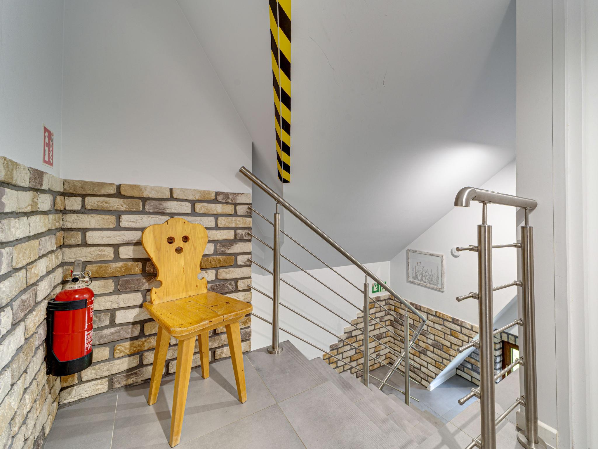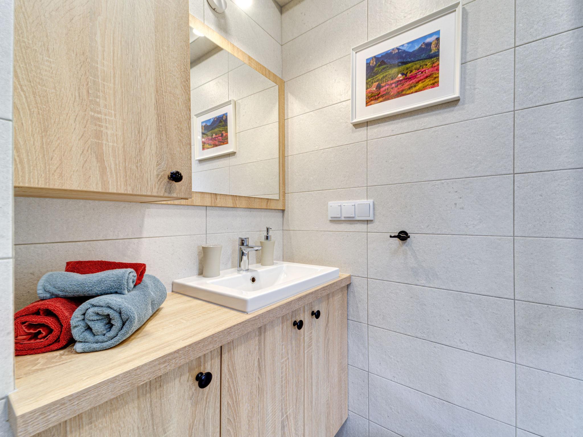 "Gosciniec Skorusa", 8-room chalet 250 m2. Modern and cosy furnishings: 1 room with 1 sofabed, open-hearth fireplace and satellite TV. Exit to the balcony. Kitchen (oven, dishwasher, 1 induction hot plates, toaster, microwave) with dining nook. Bath/WC. Heating, electric heating. Upper floor: living/sleeping room with 1 sofabed and 1 x 2 bunk beds, open-hearth fireplace and satellite TV. Exit to the garden. Shower/WC. 2nd upper floor: 2 rooms, each room with 2 beds and shower/WC. 1 room with 1 double bed, 1 folding bed and shower/WC. Exit to the balcony. Top floor: 1 room with sloping ceilings with 1 bed, 1 double bed, 1 sleeping facility and shower/WC. 1 room with sloping ceilings with 1 double bed, 1 sleeping facility and shower/WC. 2 balconies 15 m2, patio 30 m2. Terrace furniture, deck chairs (6), box-room. View of the mountains and the countryside. Facilities: Internet (WiFi). Parking, garage. Please note: smoke alarm. In the utility shed you can store bicycles and service skis.