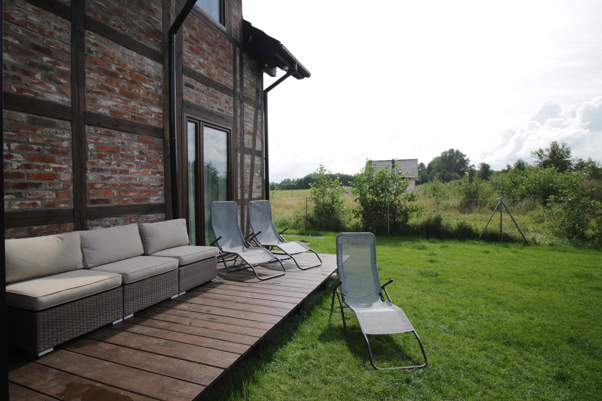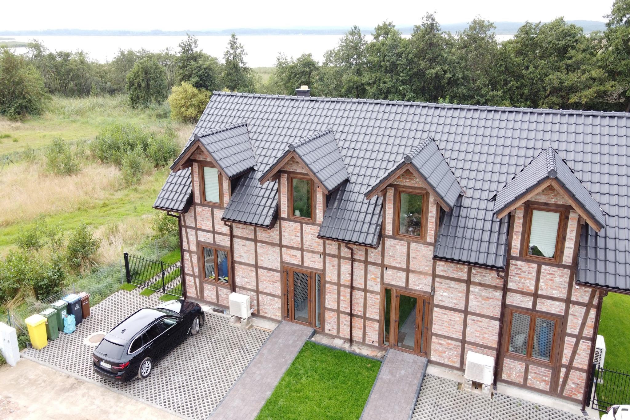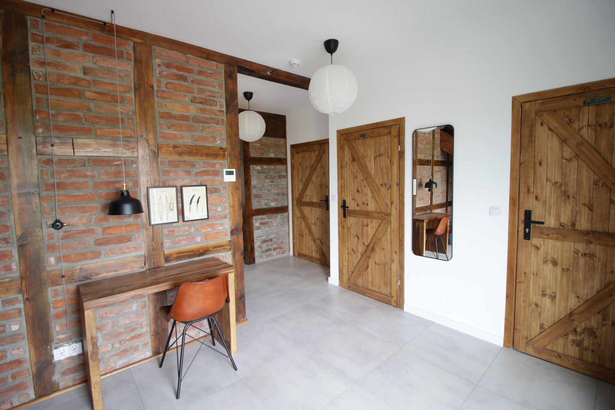 New residence in Zastan. The residence is located right by Lake Koprowo. The beach by the lake is only 150 meters away. From Zastan, it is about 3 km to the famous seaside resorts of Miedzyzdroje and Miedzywodzie. The residence offers 5 parking spaces for guests' cars, making it a nice place for family or business gatherings. The house is finished with traditional materials. The furniture inside is partially made by well-known Polish designers. A large number of bedrooms and bathrooms ensure comfortable accommodation for up to 16 people at the same time. Guests can enjoy on-site two double kayaks and one rowing boat for 3 people.