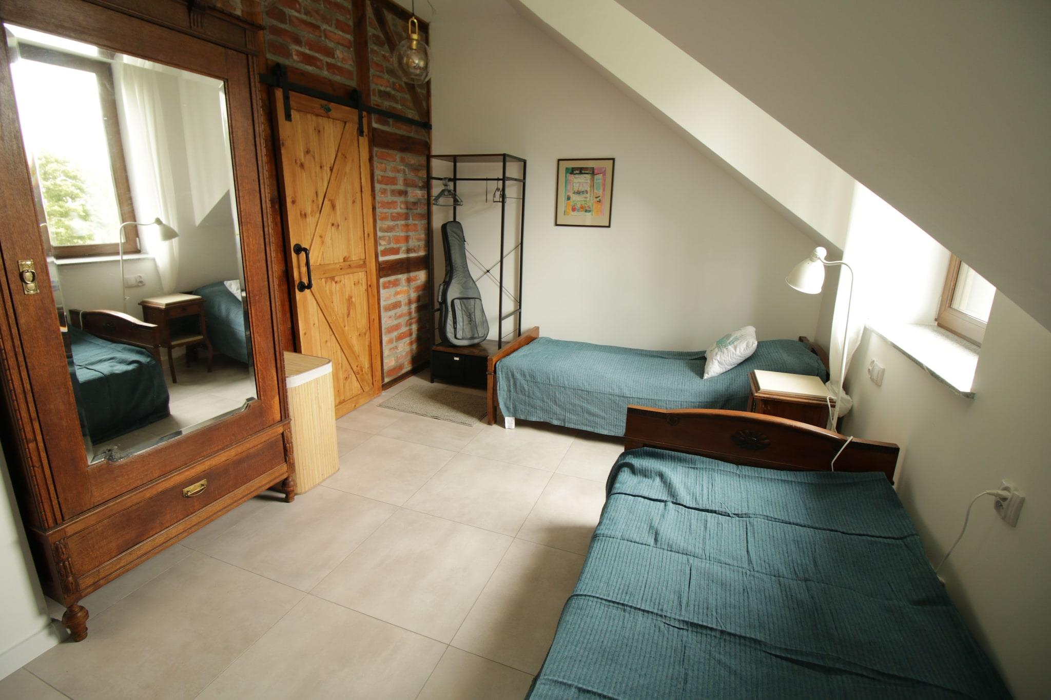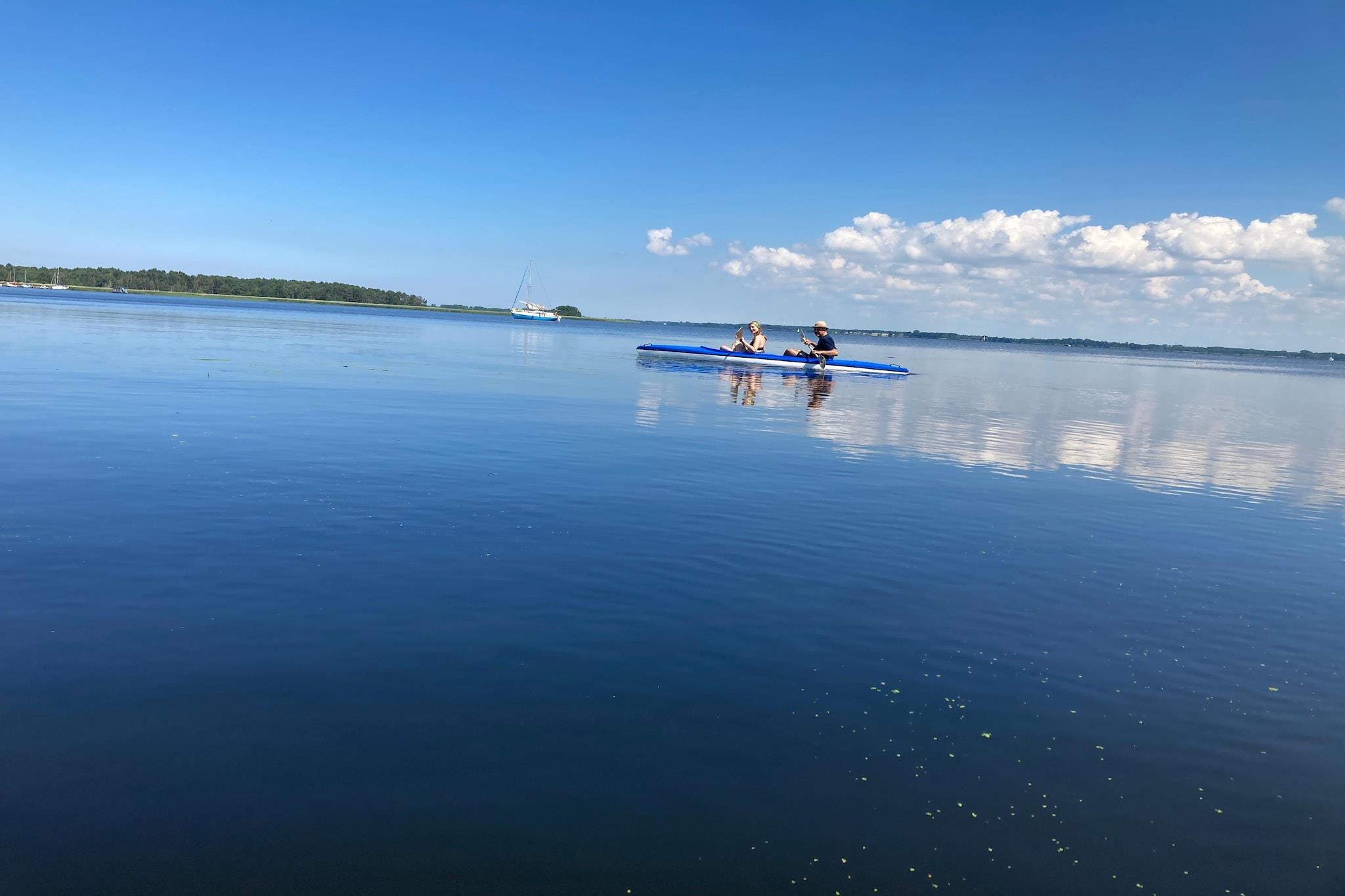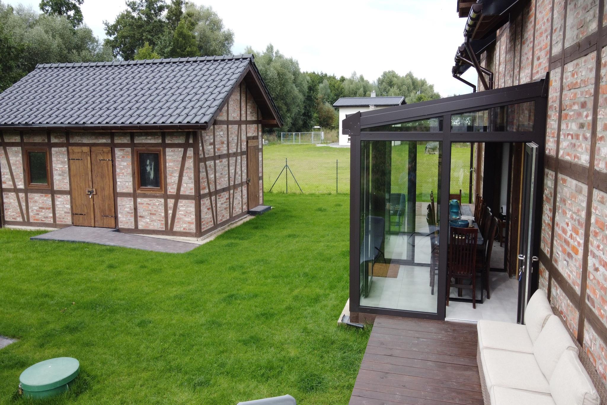 New residence in Zastan. The residence is located right by Lake Koprowo. The beach by the lake is only 150 meters away. From Zastan, it is about 3 km to the famous seaside resorts of Miedzyzdroje and Miedzywodzie. The residence offers 5 parking spaces for guests' cars, making it a nice place for family or business gatherings. The house is finished with traditional materials. The furniture inside is partially made by well-known Polish designers. A large number of bedrooms and bathrooms ensure comfortable accommodation for up to 16 people at the same time. Guests can enjoy on-site two double kayaks and one rowing boat for 3 people.