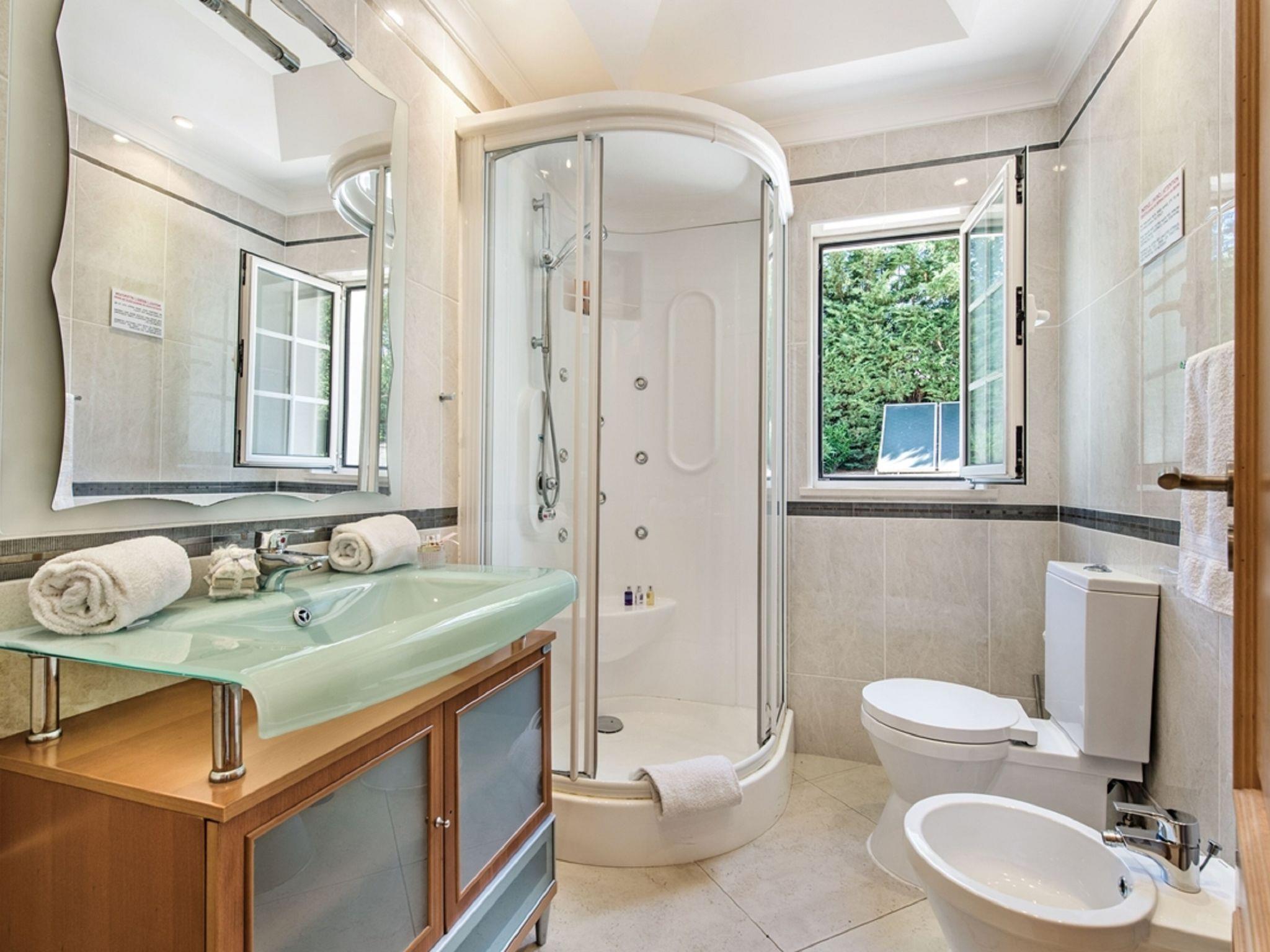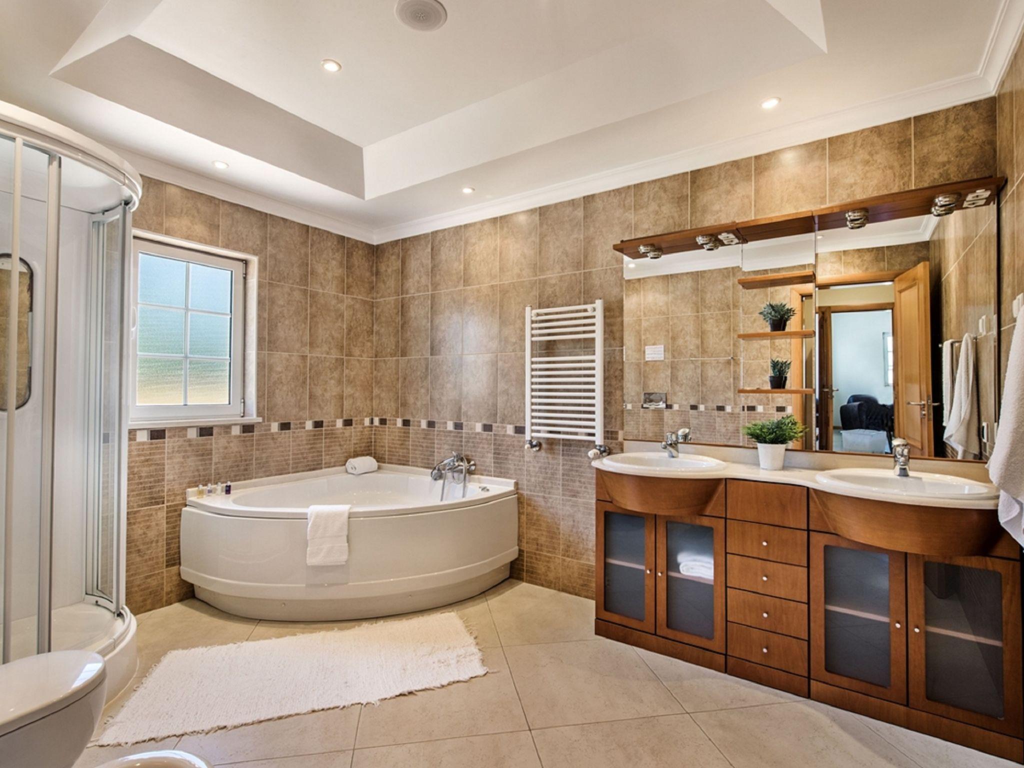 "Monte Sol - VIP Properties", 7-room villa 362 m2. Very beautiful and cosy furnishings: living/dining room with cable TV, international TV channels, flat screen, air conditioning and forced-air heating. Exit to the terrace. Kitchen (oven, dishwasher, 4 ceramic glass hob hotplates, toaster, kettle, microwave, freezer, electric coffee machine, Capsules for coffee machine (Dolce Gusto Not Incl)). 2 sep. WC's, bath/shower/WC, double hand-basin. Upper floor: 1 room with 2 beds (90 cm, length 200 cm), bath/WC, air conditioning and forced-air heating. 1 room with 1 french bed (160 cm, length 200 cm), air conditioning and forced-air heating. 1 room with 2 beds (90 cm, length 200 cm), air conditioning and forced-air heating. Exit to the balcony. 1 room with 1 french bed (160 cm, length 200 cm), air conditioning and forced-air heating. Exit to the balcony. 1 room with 2 beds (90 cm, length 200 cm), shower/WC, air conditioning and forced-air heating. 1 room with 1 french bed (160 cm, length 200 cm), air conditioning and forced-air heating. Exit to the balcony. Bath/WC, 2 showers/WC. Terrace furniture, barbecue, deck chairs (12). Beautiful view of the countryside. Facilities: washing machine, iron, children's high chair, baby cot for up to 2 year olds (extra), hair dryer. Internet (WiFi, free). Parking at the house. Suitable for families. 120918/AL