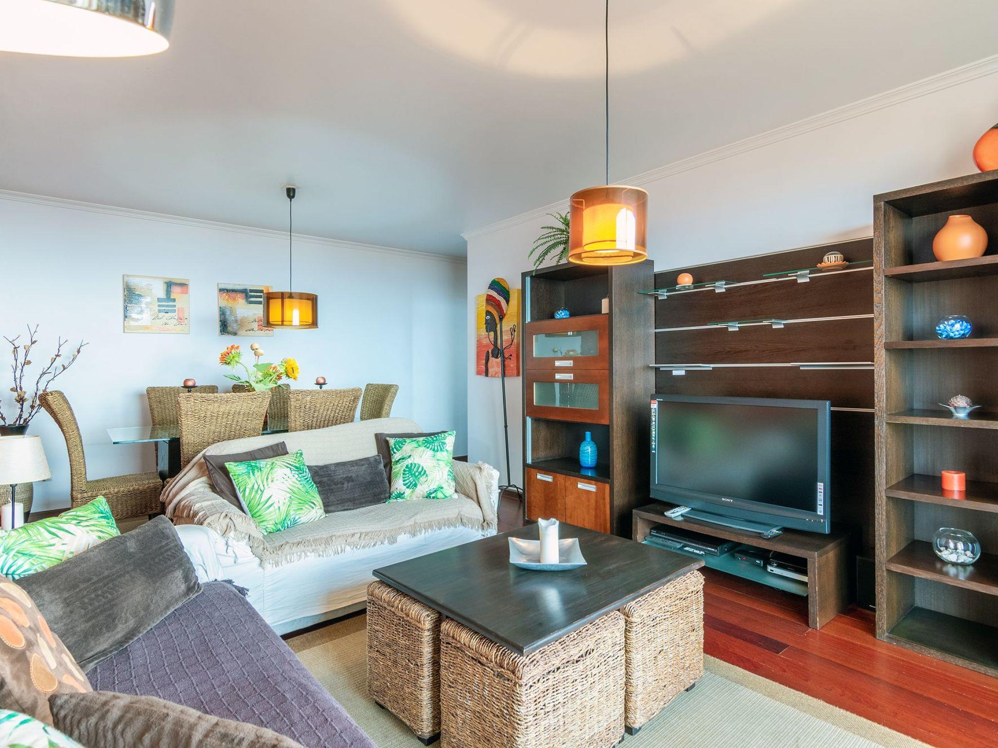The living room is large and has excellent natural light coming from the balcony, which offers a beautiful sea view and invites you for a quiet meal.