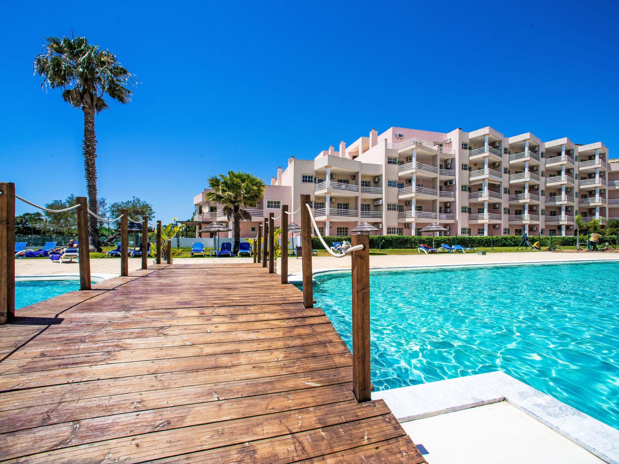 Praia Do Vau 2 km from Praia da Rocha: Modern aparthotel "Estrela do Vau - Private.", built in 1996. 174 apartments in the property. Below Alto Golf Course, on top of a hill, 500 m from the sea. For shared use: beautiful garden to relax, 2 swimming pools (seasonal availability: 01.Jan. - 31.Dec.). Children's pool, tennis, garden furniture, children's playground. In the complex: reception, bar, lounge, billiard table, kiosk, lift, air conditioning, laundry. Central parking spaces. Shop 1 km, supermarket 2 km, shopping centre 3 km, restaurant 100 m, bar 500 m, bus stop 650 m, sandy beach 500 m, thermal baths 20 km. Golf course (18 hole), minigolf 50 m. Nearby attractions: Praia Da Rocha 2 km, Alvor 2 km, Portimão 2 km, Albufeira 40 km, Monchique 20 km, Faro 60 km. Please note: entertainment. Groups of teenagers on request only. Additional accommodations can be booked.