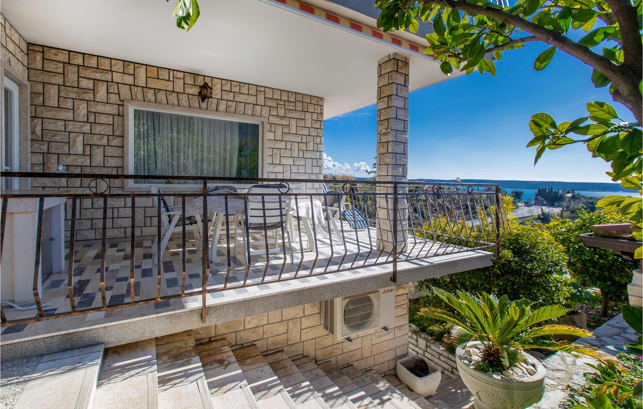 In dieser Villa mit einem wundervollen Blick auf die Piraner Bucht befinden sich insgesamt 4 komfortable Apartments. Diese Ferienwohnung liegt im 1. Stock. Sie hat 1 Schlafzimmer und 2 weitere Schlafgelegenheiten auf einer Schlafcouch in der Wohnküche. Sie haben Zugang zu einer großen, nach Süden gerichteten Terrasse. Die Außenanlage wird gemeinschaftlich genutzt und der Hausbesitzer wohnt im gleichen Haus.