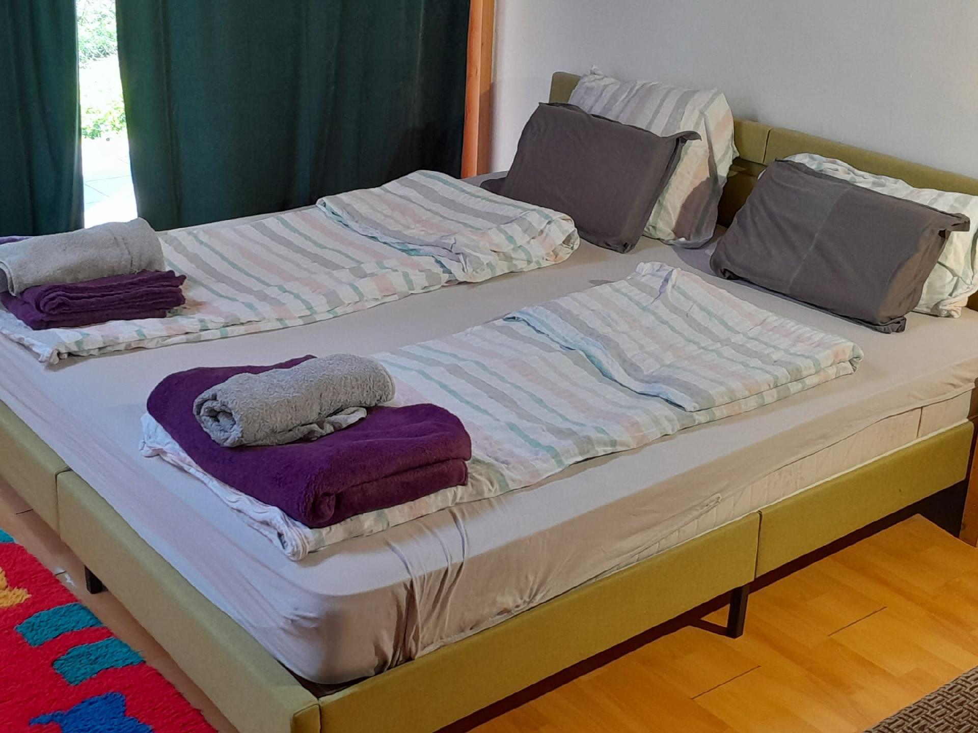 The price includes -Bed covers -towels -a welcome food –for breakfast -very fast wireless internet -washing machine (for clothes) -massage bath (Jacuzzi) -3 bedrooms, kitchen, big garden -sport activities We organize additional activities if you want to. -kayak (with professional member of the Slovenian Olympic team-Kayak) -tours (daily tours to Ljubljana-Old town , Ljubljanski castle, Obolno farm with amazing home made food) -cycling -skiing -caves -various sports -lakes and castles (Ljubljanski castle, Turjaski Castle, Grad Tabor, Bled, Bohinj) -sea side With a lot of space outside a lot of green big garden. Breakfast in bed, the kitchen, or the garden. On the 1st floor, there is a kitchen, a dinning place, 2 bedrooms (2 big size double beds), a sofa and a bathroom with a shower - also a Jacuzzi. On the 2nd floor, there is another bedroom with a TV . FREE wireless all around the house even on garden is working perfect.