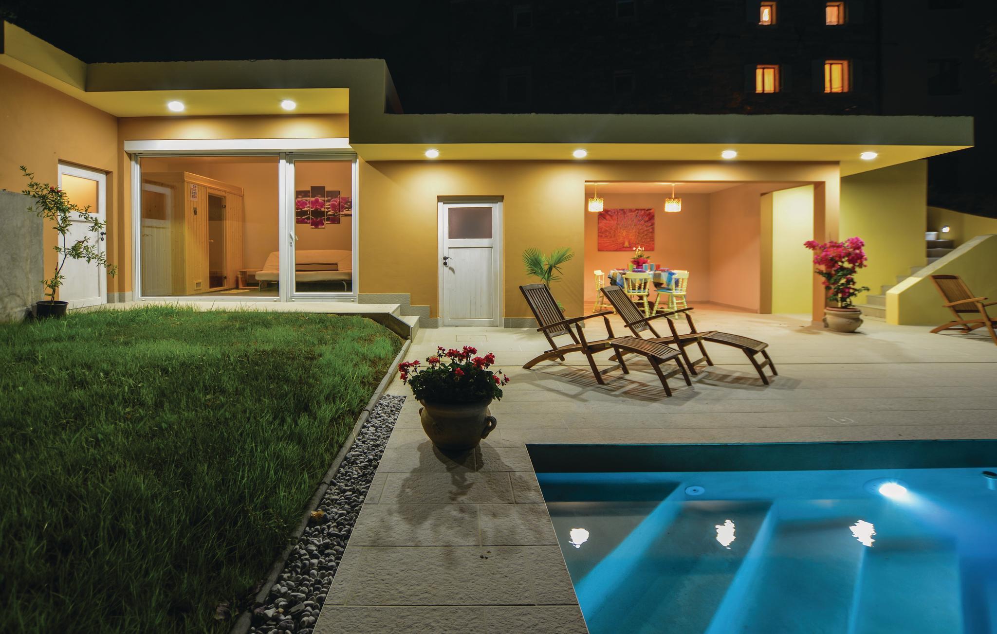 Dieses Reihenhaus aus dem 19. Jahrhundert wurde liebevoll mit modernen wie traditionellen Inhalten renoviert. Es liegt im alten Dorf Mackujek hoch oben im Tal des Flusses Dragonja. Das Dorf wird von Olivenhainen, Weingärten und einer schönen Vegetation umgegeben. Im Erdgeschoss liegen der Wohnraum mit Küche sowie der Ausgang zum Hof und der Terrasse mit Außenpool, Sauna und Sommerküche. Von der Terrasse kann man die Panoramaaussicht aufs Tal genießen. Im ersten Stock und im Dachgeschoss liegt je ein Schlafzimmer mit eigenem Bad. Nur 15 Autominuten trennen Sie von der Küste. Die Umgebung ist für Naturliebhaber perfekt. Hier kann man Wandern oder Radfahren und bei den Nachbarn hausgemachte Produkte kaufen: Gemüse, Olivenöl, Wein und Würste.