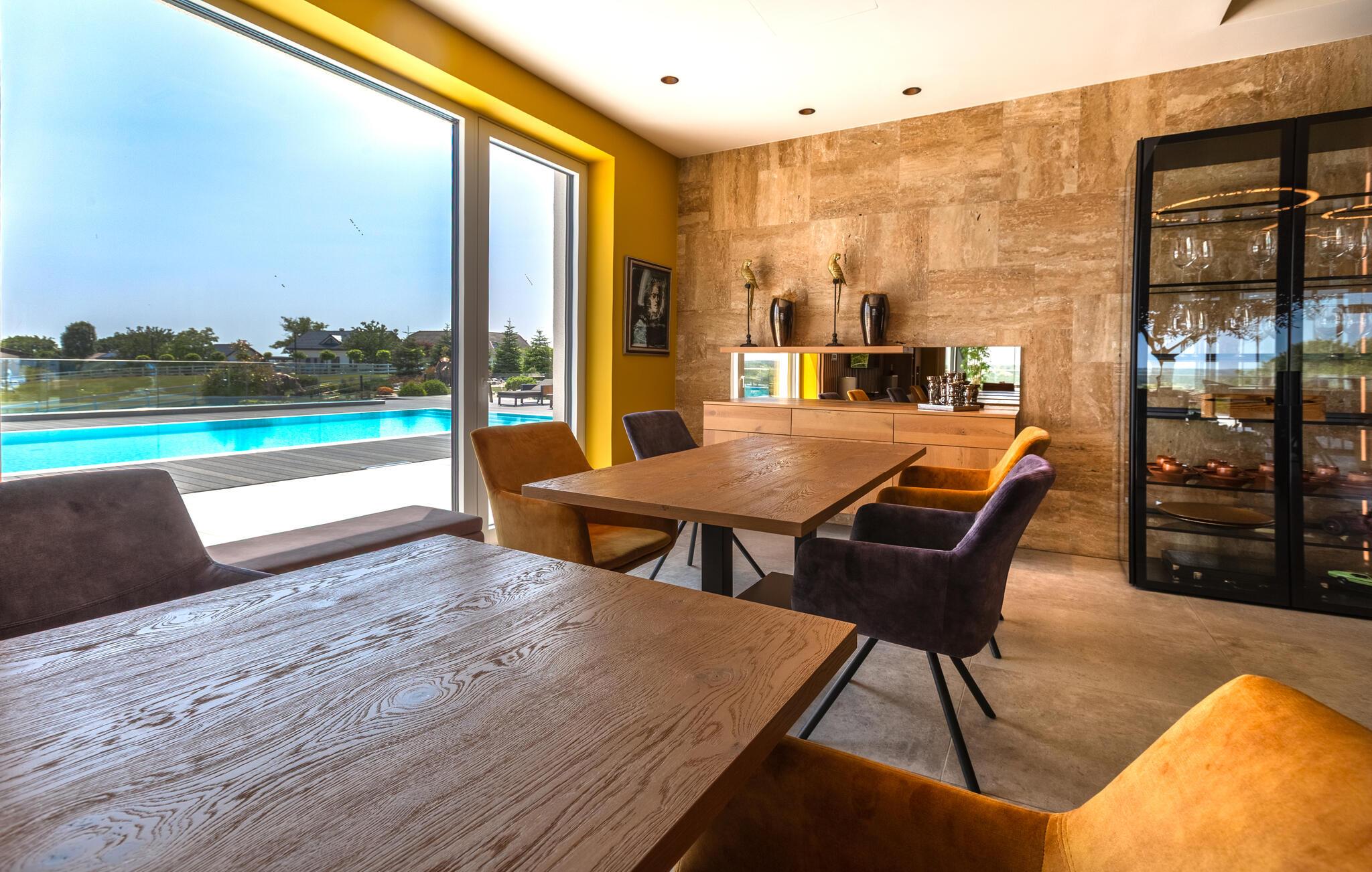 Nehmen Sie sich auch Zeit für einen ausgedehnten Tag am Außenpool oder entspannen Sie im Lounge-Bereich mit stilvollen Sitzmöbeln. Schwimmen Sie ein paar Bahnen oder genießen Sie die Ruhe im gepflegten Garten.