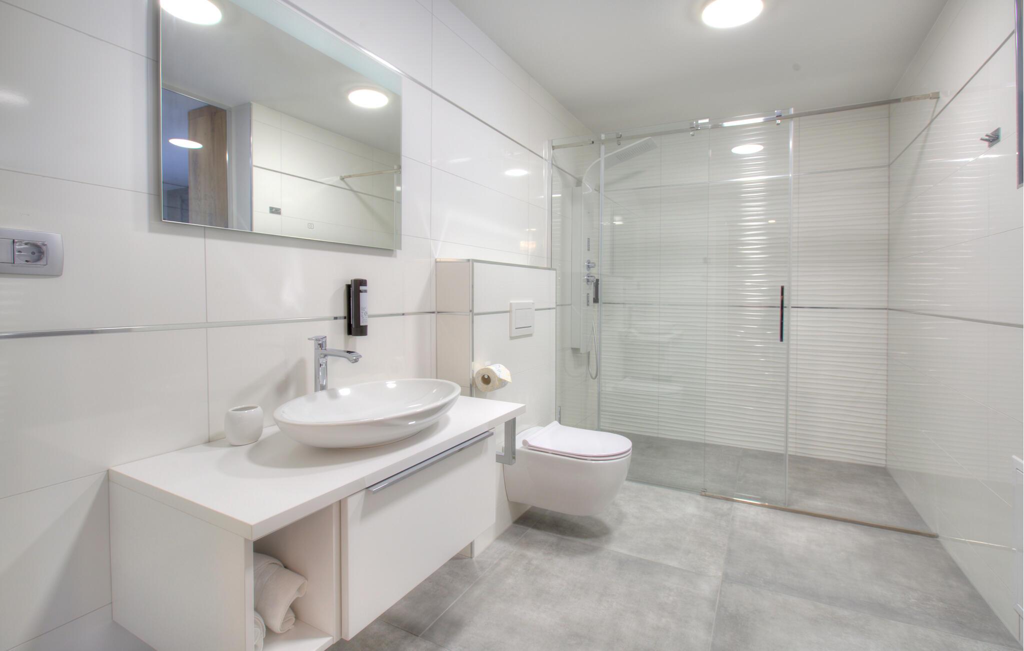 - WC mit warmem und kaltem Wasser, Dusche