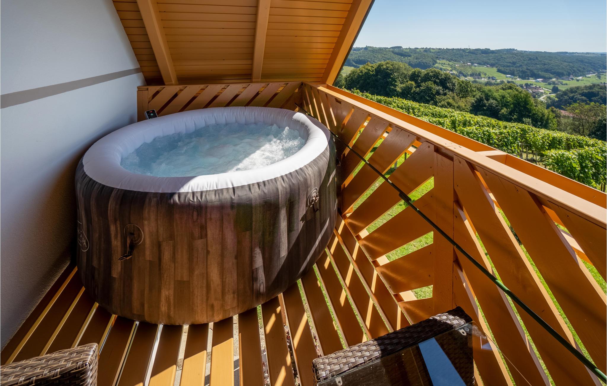 Balkon und Terrassen laden dazu ein, herrliche Stunden im Freien zu verbringen. Entspannen Sie im Whirlpool unter freiem Himmel und lassen Sie den Blick weit über die pittoreske Landschaft schweifen.